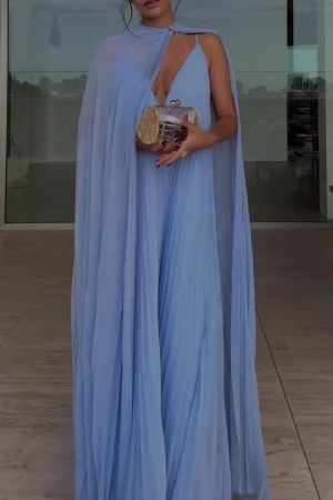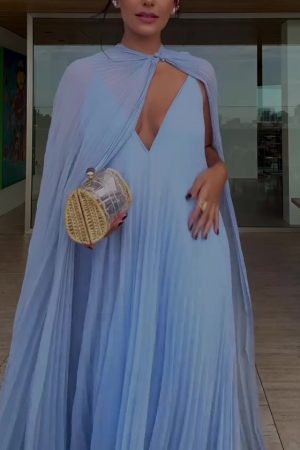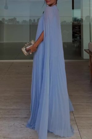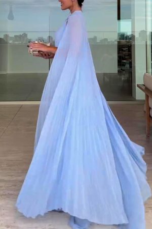 Be the first to review “Light Blue Pleated Maxi Dress & Cape Two-piece Set” Cancel reply