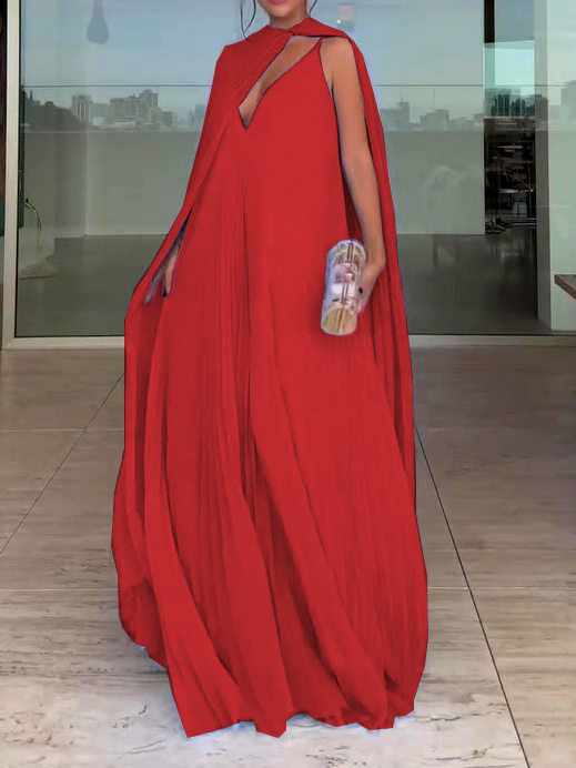 Light Blue Pleated Maxi Dress & Cape Two-piece Set