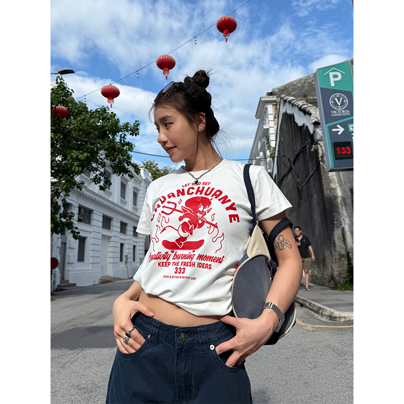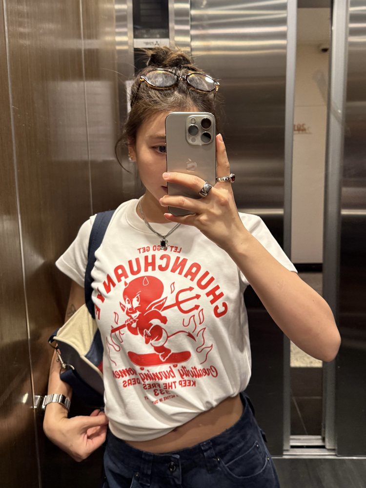 Little Devil Printed Slim Fit Short Sleeve Women Summer Top, Casual Daily Wear, Y2K High-quality product featuring y2k outfits, cute everyday outfits, easy halloween costume and more. Modern design that fits the latest trends. Premium materials ensure durability and comfort. Order now for special offers! Product designed with attention to every detail. Suitable for all occasions and personal styles.