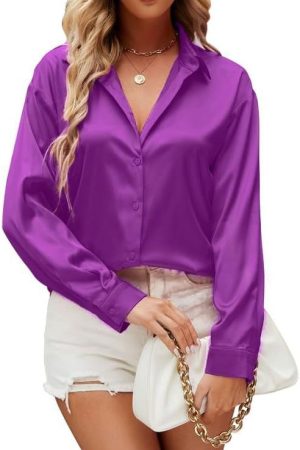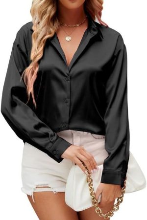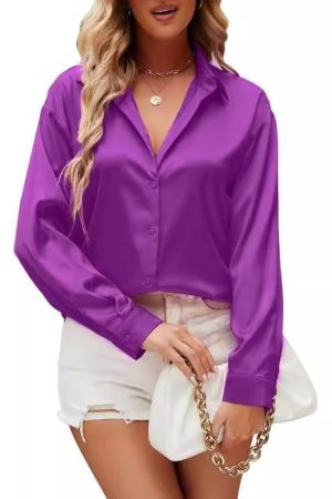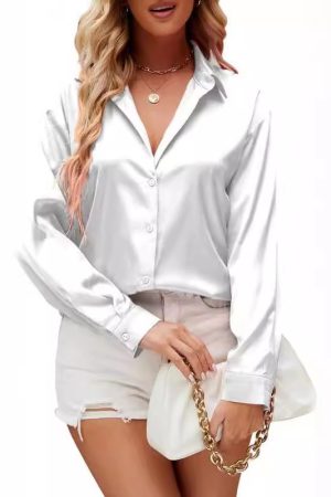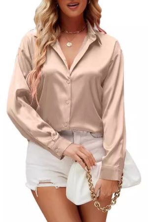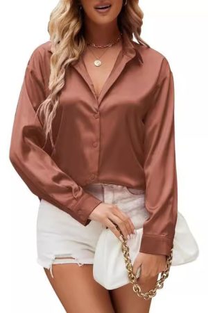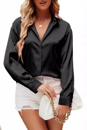 Loose-fit Faux-silk Long-sleeve Satin Top