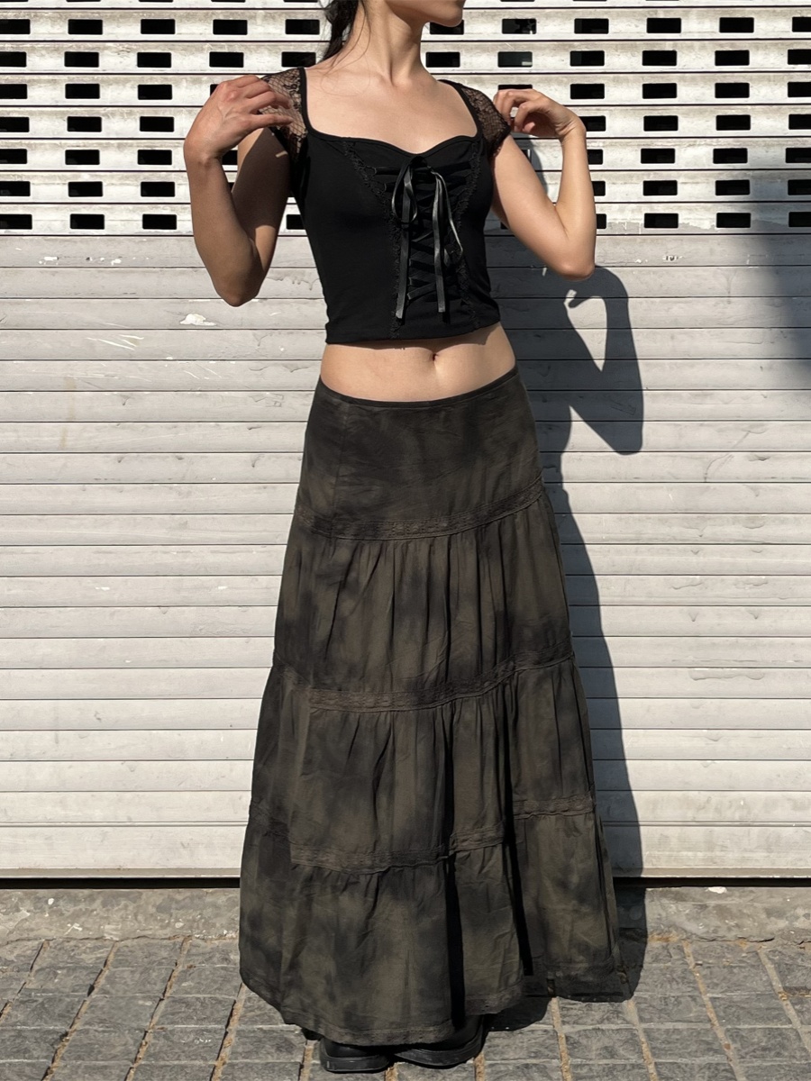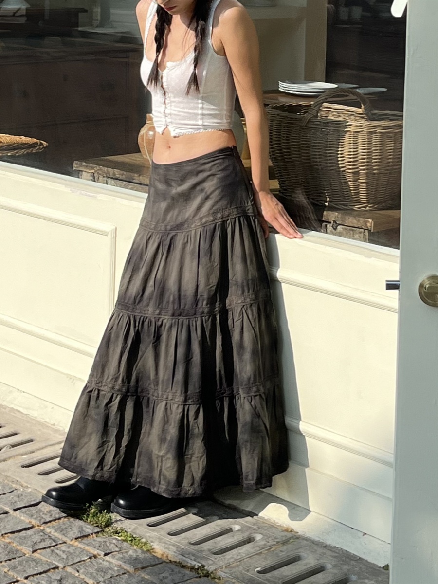 Low Waitie Dye Lace Cake Skirt Loose Long Skirt Women Vintage Y2k – Y2k Outfits