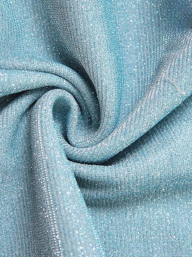 Channel your inner siren with this mermaidcore glitter mini dress. Designed with shimmering fabric, a halter-style neckline, and bold cutouts, it hugs every curve with dreamy energy. The rhinestone brooch detail adds a luxe finish—perfect for parties, club nights, or main character moments.