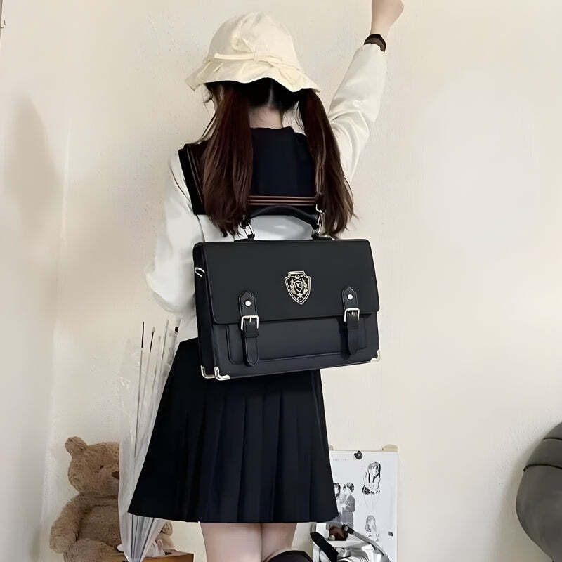 The Dark Academia Messenger Bag is crafted with a vintage-inspired design that adds a touch of sophistication to your look. This structured bag is practical for carrying books, laptops, and other essentials, making it a versatile choice for both casual outings and formal settings.