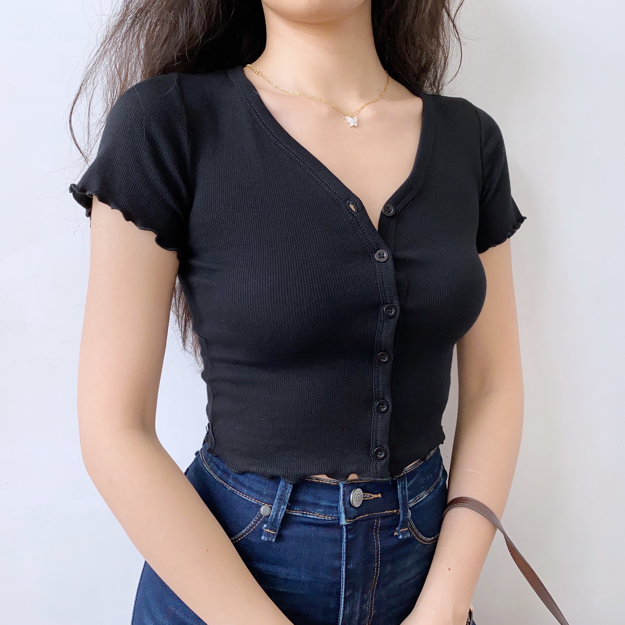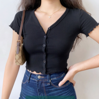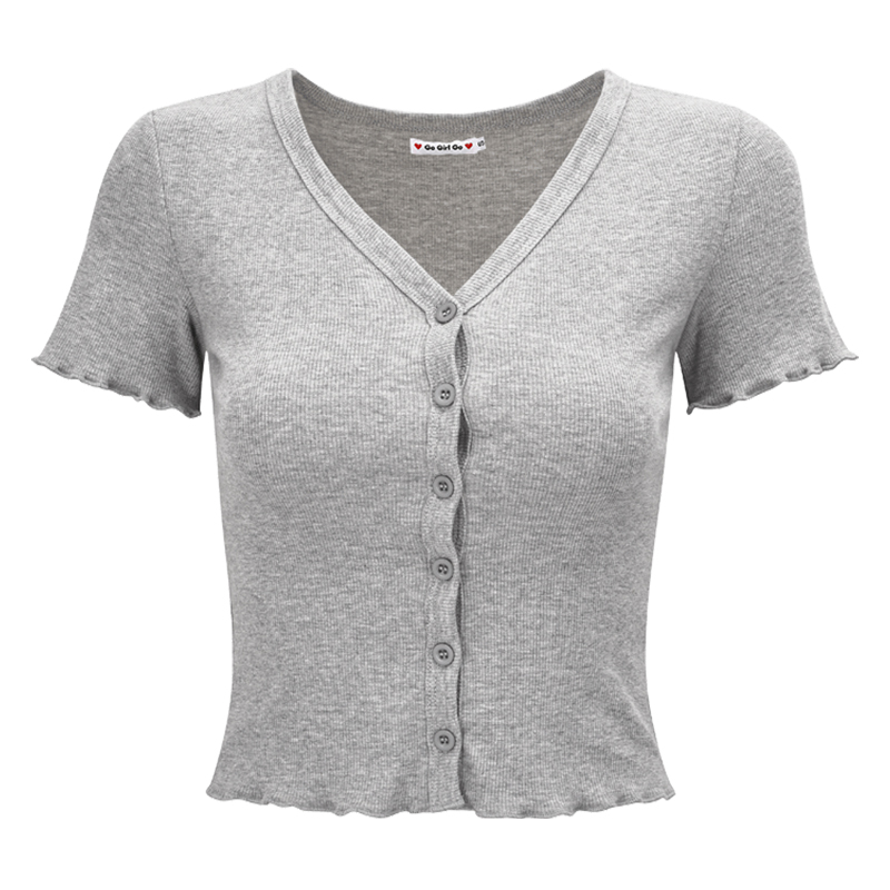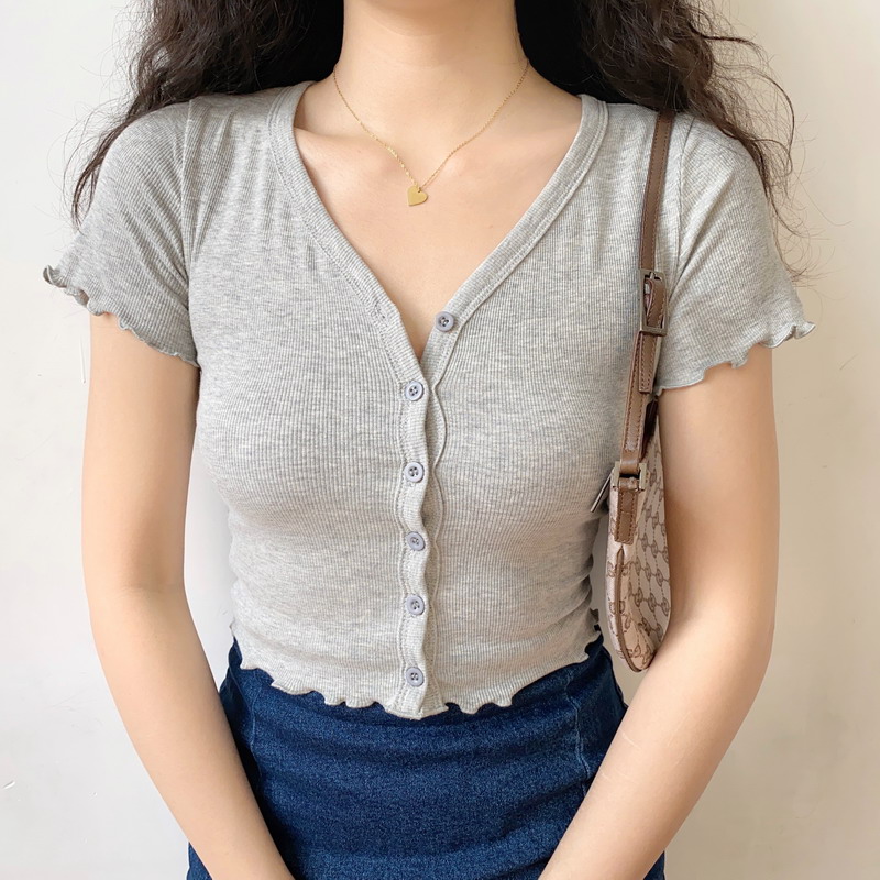 Slim Fit V- Neck Ruffled Short Sleeve Women Cardigan, Casual, Y2k – Y2k Outfits