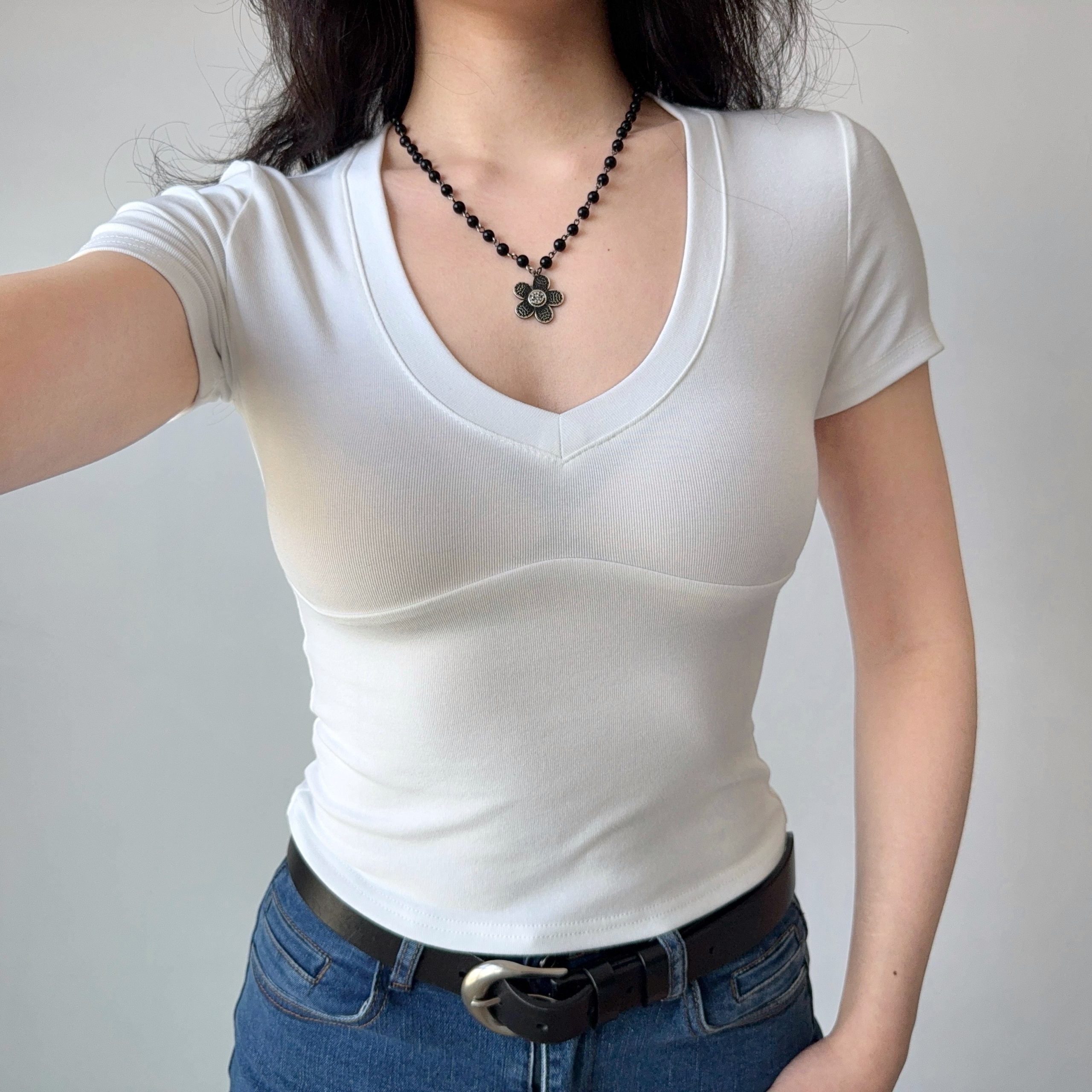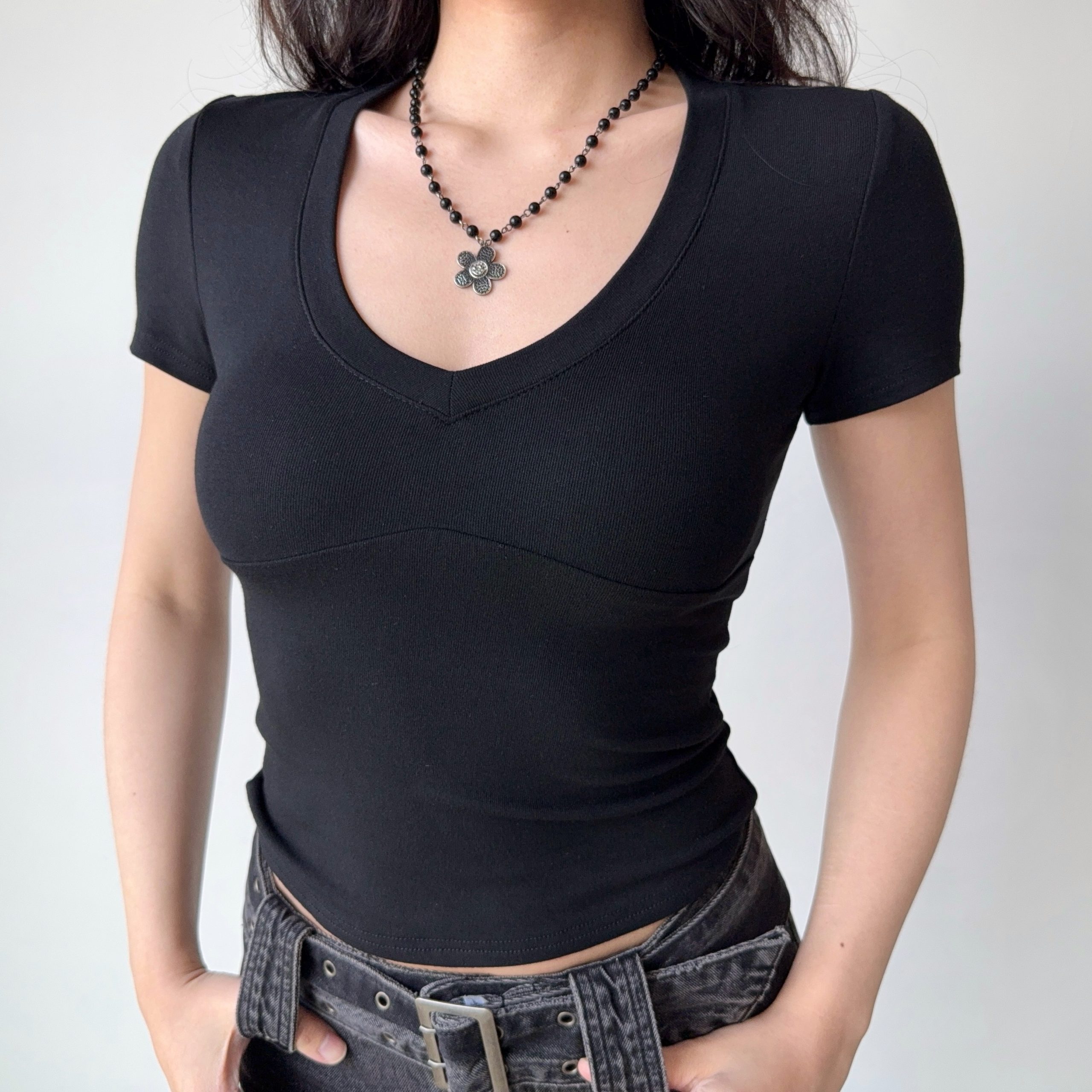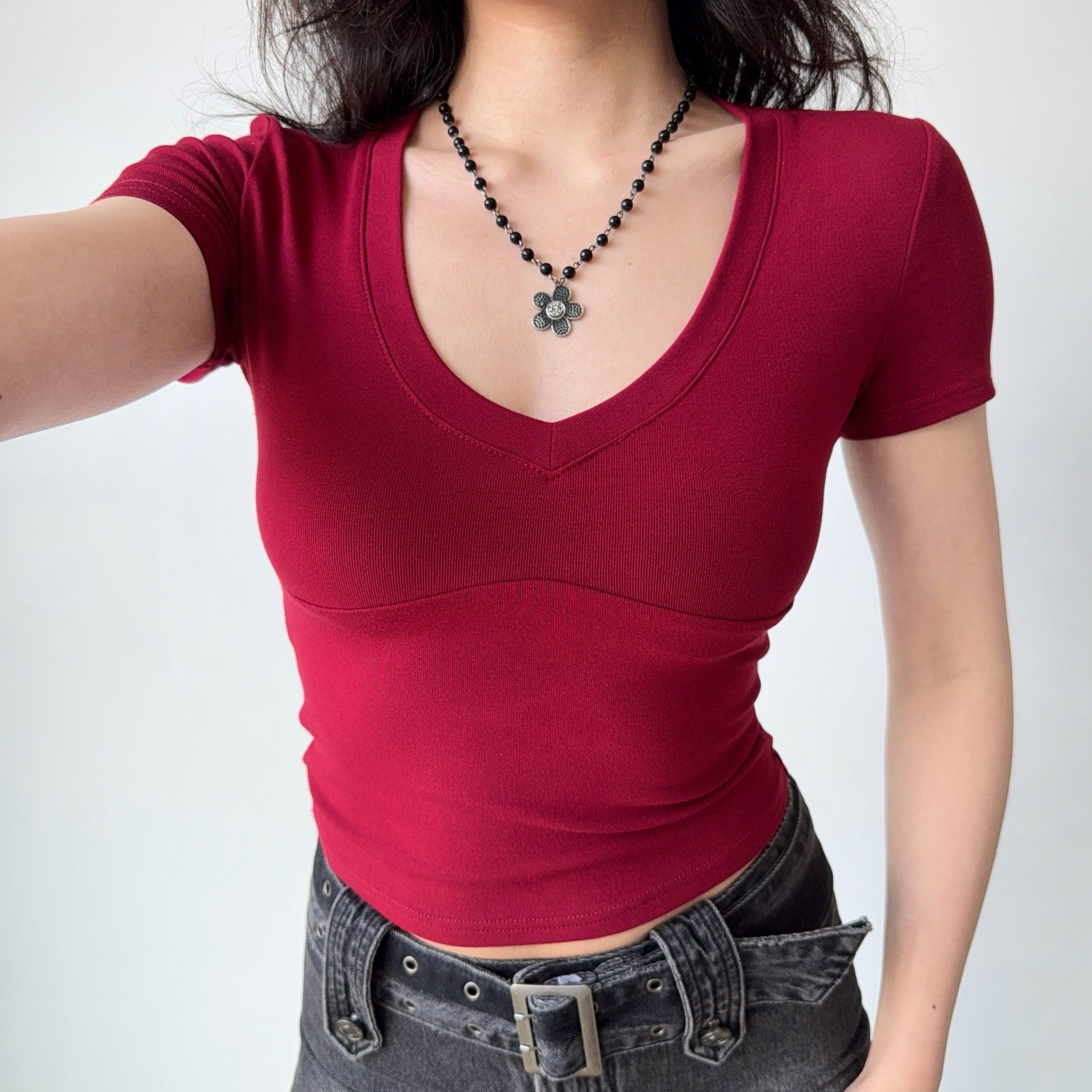 Solid V- Neck Short Sleeve Women Summer Slim Fit Top, Casual High-quality product featuring summer fits, casual outfits, casual fall outfits and more. Modern design that fits the latest trends. Premium materials ensure durability and comfort. Order now for special offers! Product designed with attention to every detail. Suitable for all occasions and personal styles.
