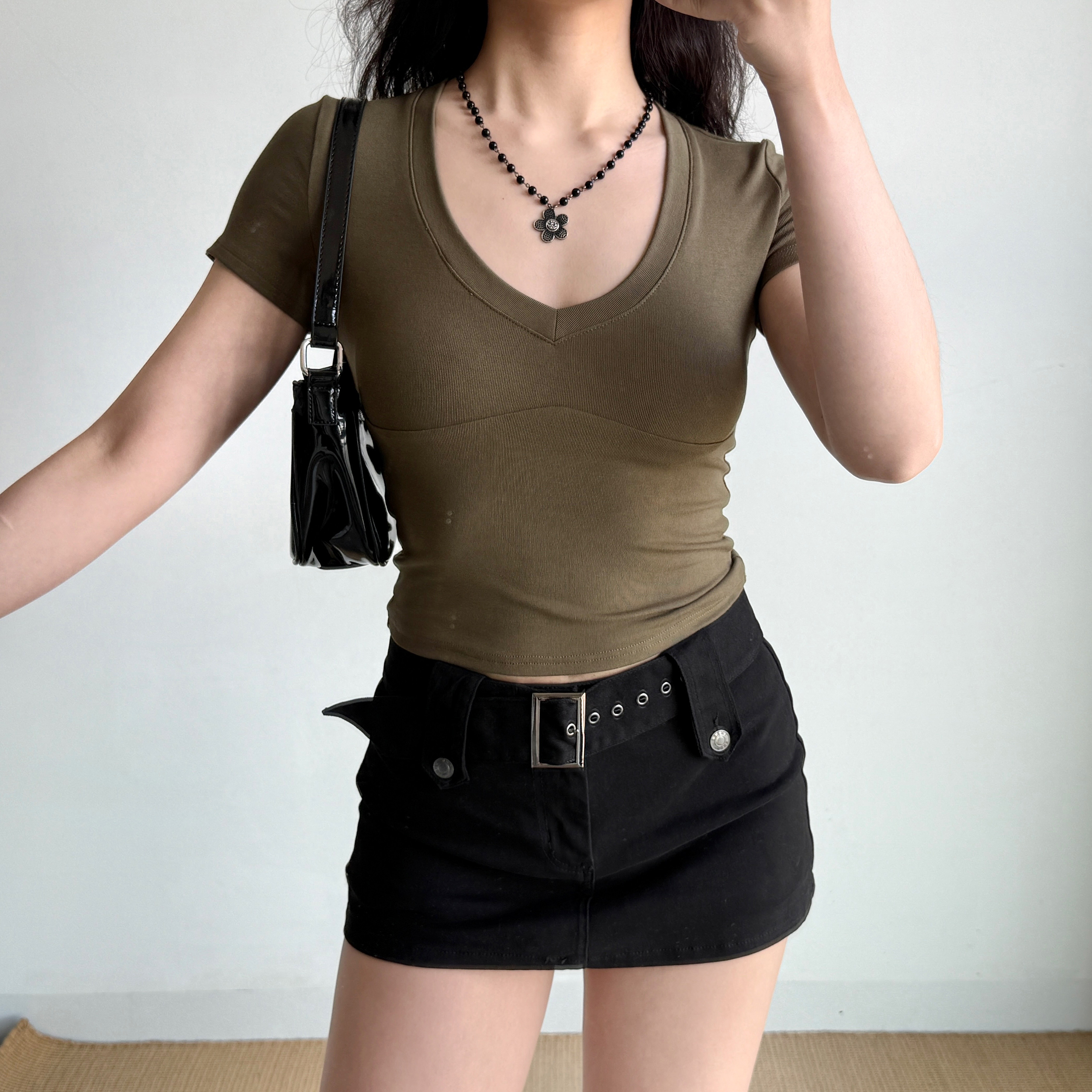 Elevate your summer wardrobe with our Minimalist Solid Color V-Neck Short Sleeve T-Shirt for Women. This casual chic top features a flattering slim fit that accentuates your silhouette, while the soft fabric ensures all-day comfort. Perfect for layering or wearing alone, this versatile piece embodies European and American style effortlessly. Don’t miss out on this essential addition to your fashion collection add it to your cart today!
