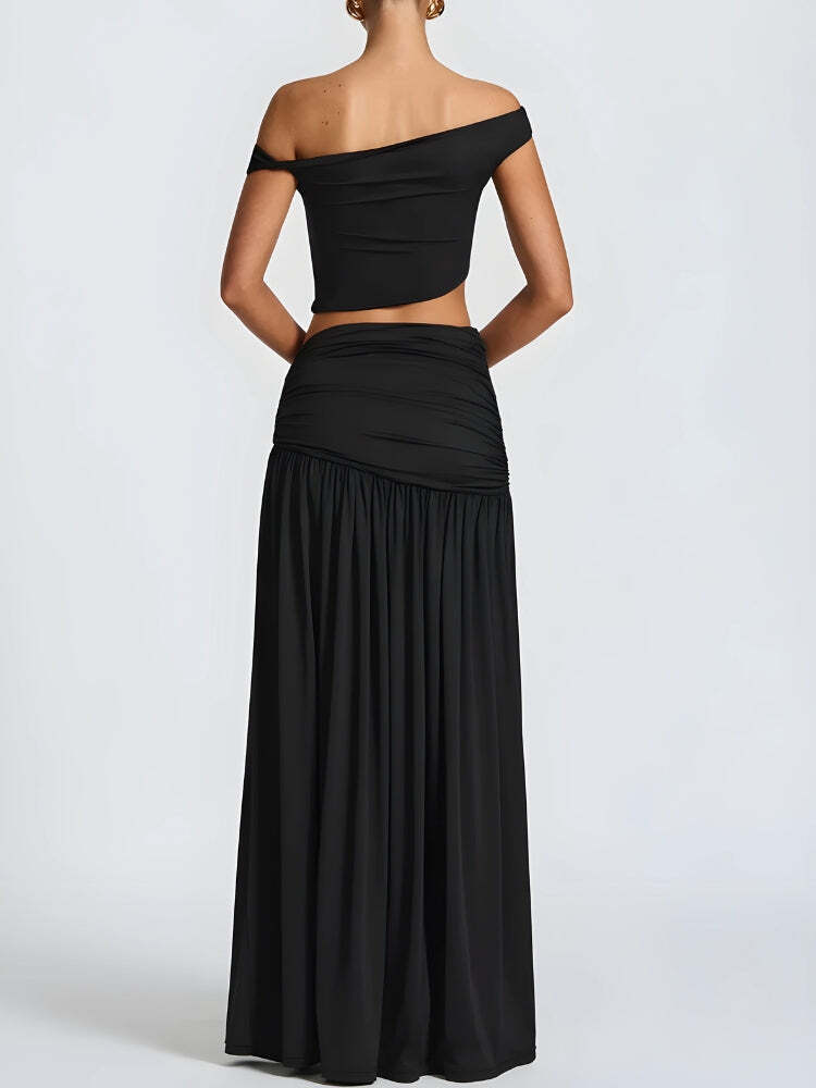 Off Shoulder Crop Top & Slit Maxi Dress Two Piece Set High-quality product featuring fashion outfits, pretty outfits, outfit ideas and more. Modern design that fits the latest trends. Premium materials ensure durability and comfort. Order now for special offers! Product designed with attention to every detail. Suitable for all occasions and personal styles.