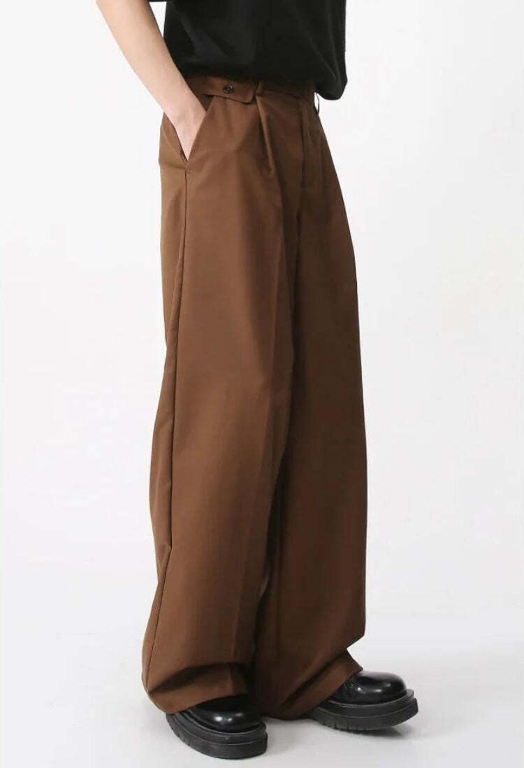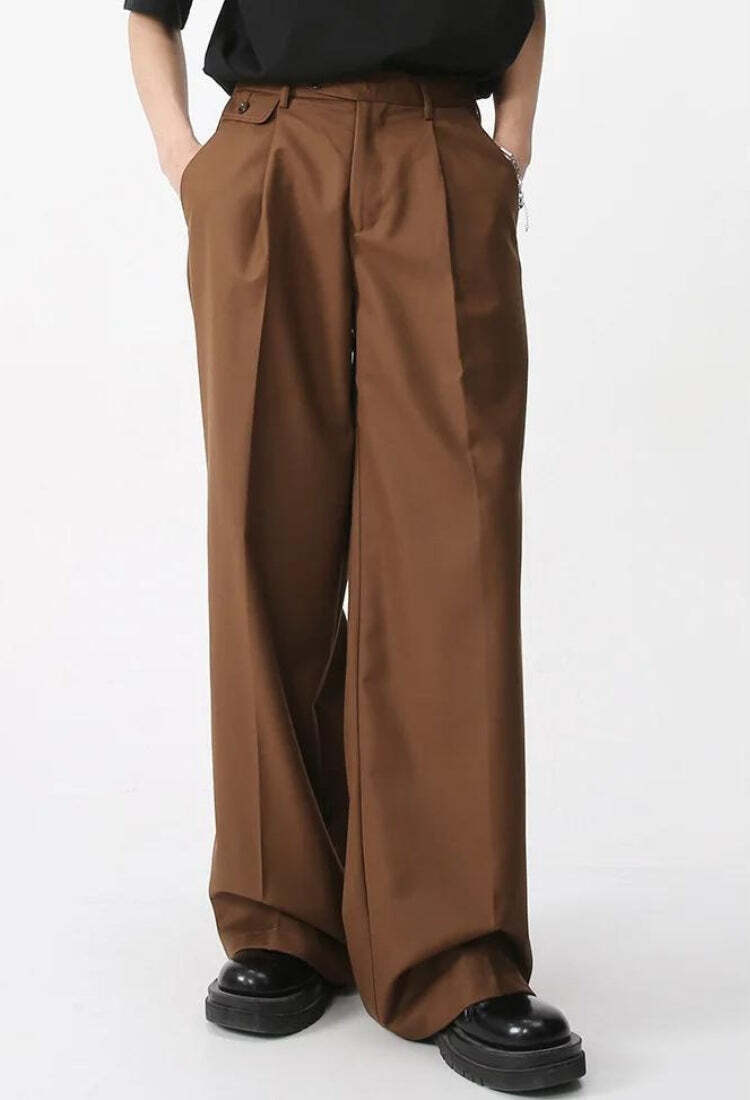 These wide-leg brown pants offer a relaxed fit and a stylish silhouette. Perfect for a contemporary look, they provide both comfort and fashion, ideal for versatile, everyday wear.