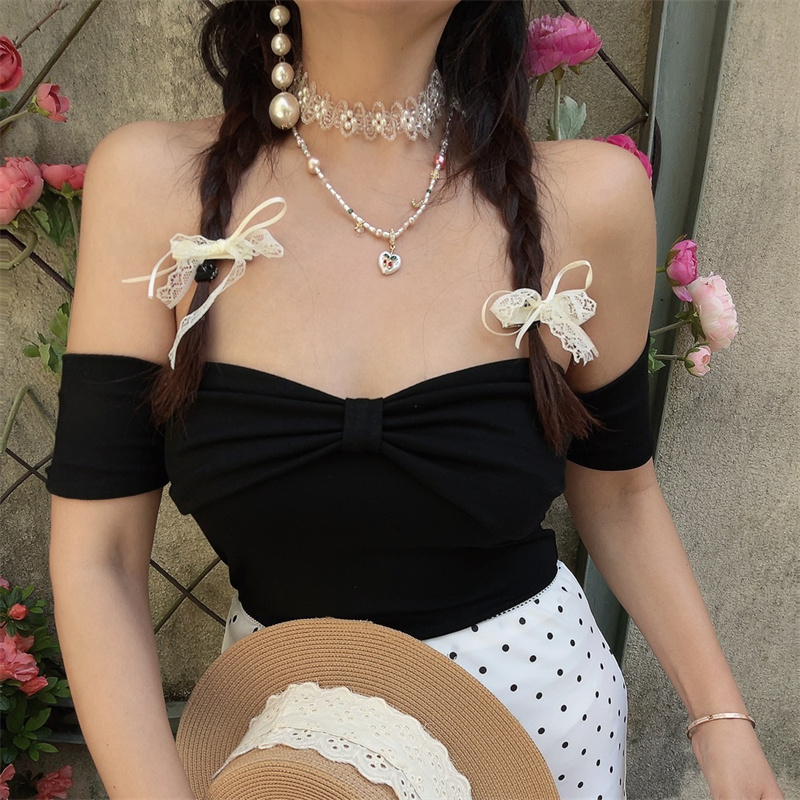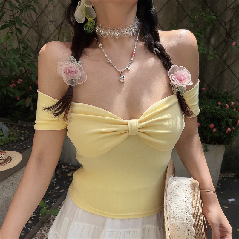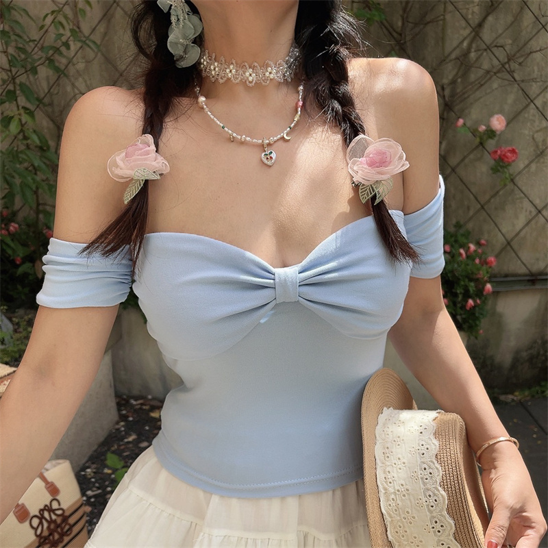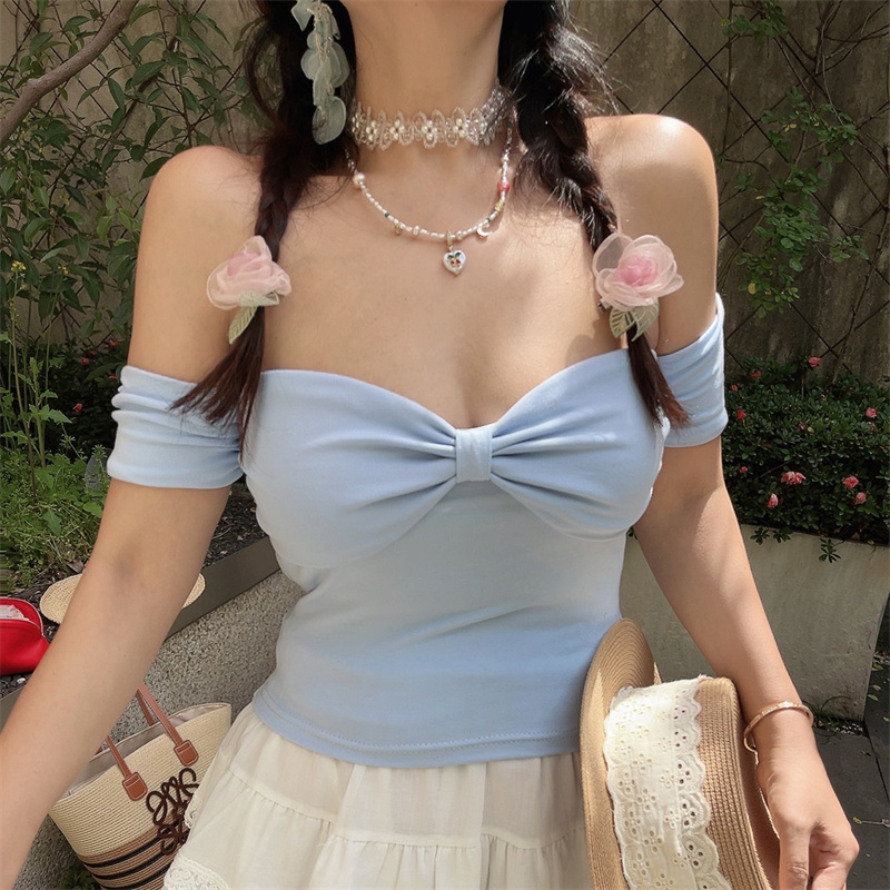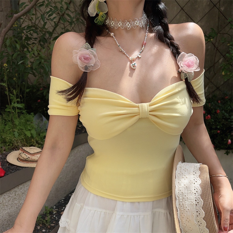 One Shoulder Elastic Solid Short Sleeve Top Bow Sweet Spring Summer High-quality product featuring spring outfits, summer fits, easy halloween costume and more. Modern design that fits the latest trends. Premium materials ensure durability and comfort. Order now for special offers! Product designed with attention to every detail. Suitable for all occasions and personal styles.