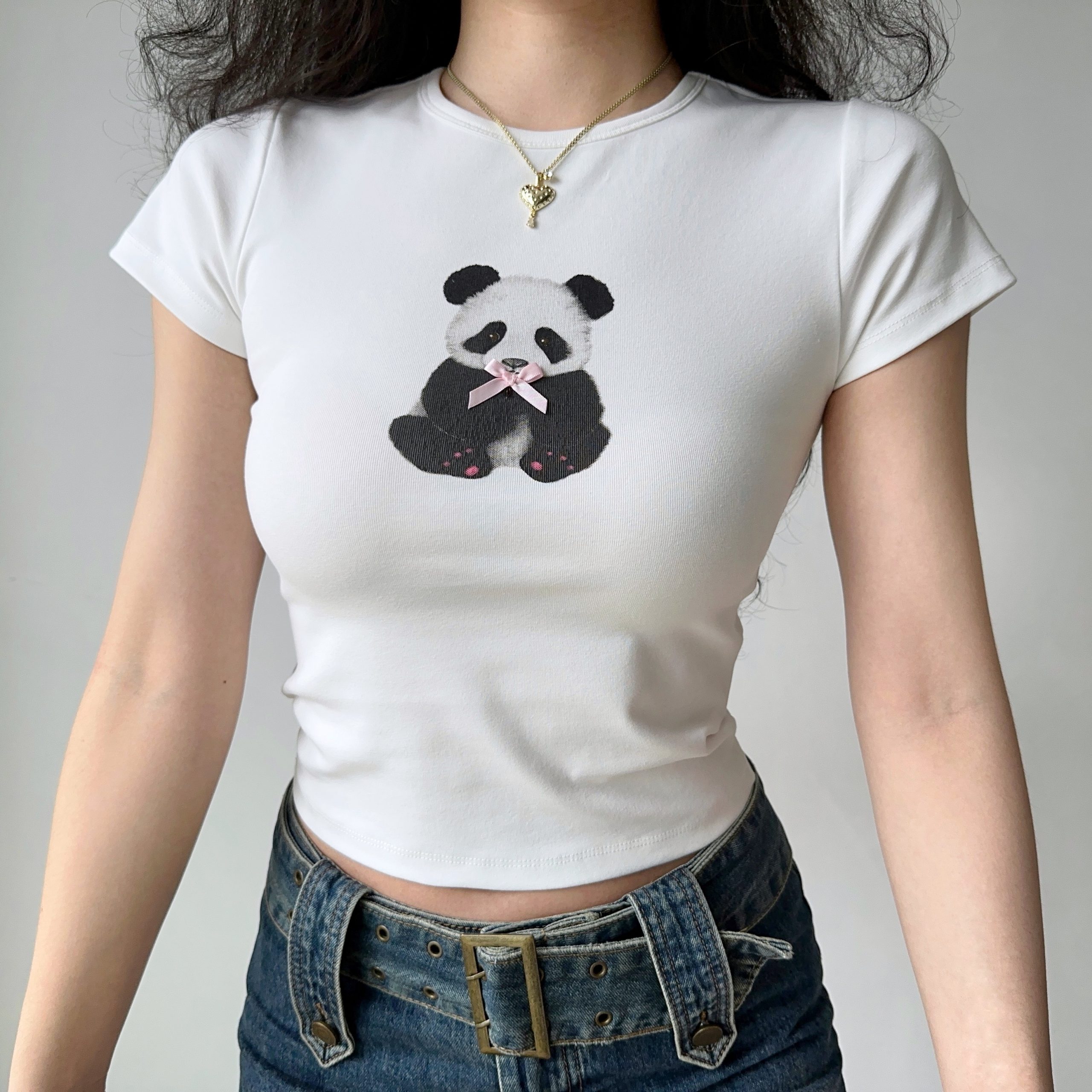 Embrace playful elegance with our Panda Print Summer T-Shirt for Women, designed in a chic European American style. This slim fit, round neck top features a delightful panda graphic that adds a touch of whimsy to your summer wardrobe, while the short sleeves keep you cool and comfortable. Perfect for casual outings or lounging at home, it’s a versatile addition that you won’t want to miss. Add to your cart today and elevate your style with this adorable tee!