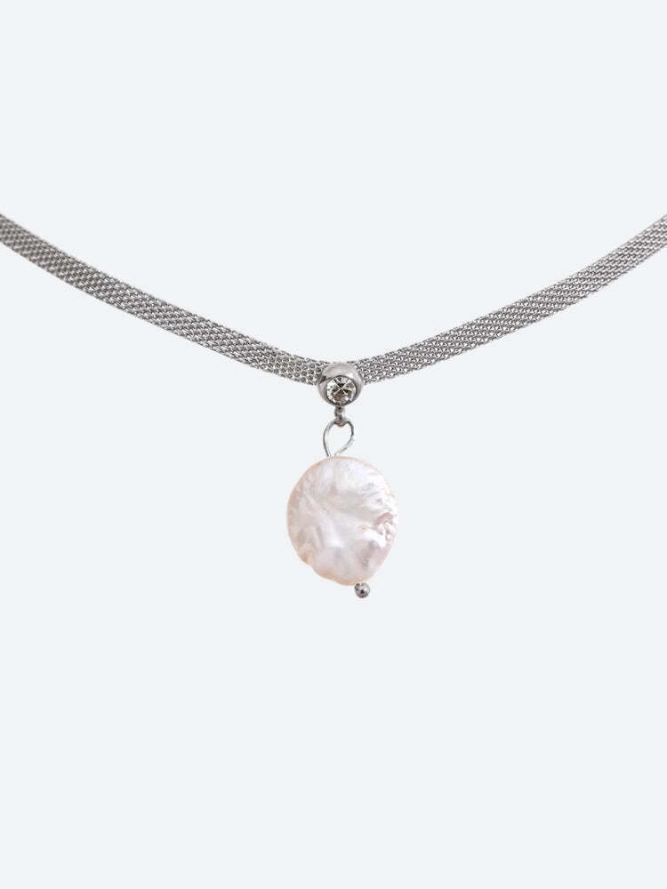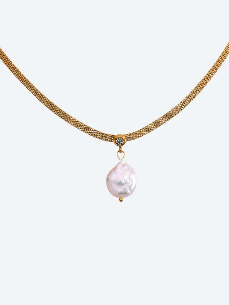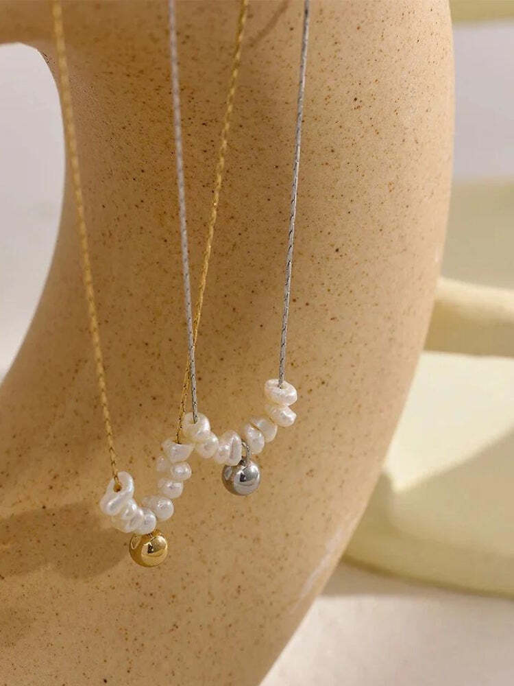 A delicate pearl necklace that combines elegance and simplicity. This piece features irregularly shaped pearls on a fine chain, ideal for layering or wearing alone. Its timeless design makes it a versatile accessory for any occasion.