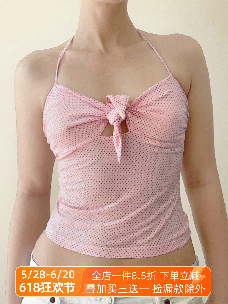 Pink Beauty Hollow Out Twisted Polka Dot Cami Women Slim Fit Halter Top, White Enhancing, Summer High-quality product featuring pretty outfits, coquette outfit, easy costumes women and more. Modern design that fits the latest trends. Premium materials ensure durability and comfort. Order now for special offers! Product designed with attention to every detail. Suitable for all occasions and personal styles.