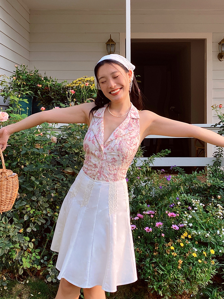 Pink Embroidered Hollow Out Halter Neck V Top Backless V- Neck Waistcoa – Y2k Outfits