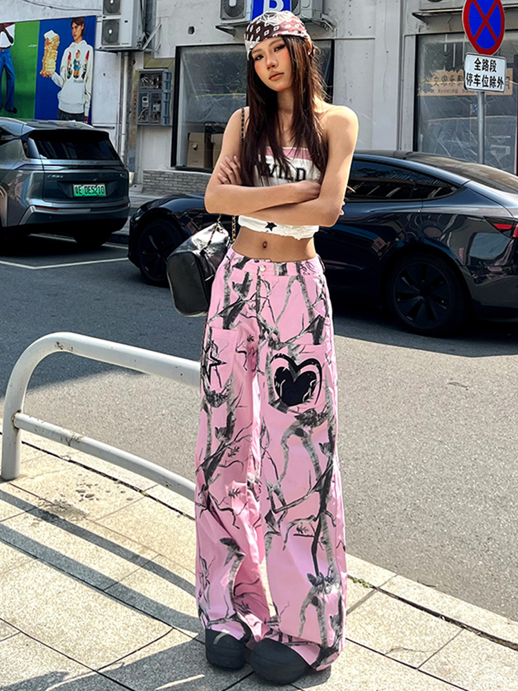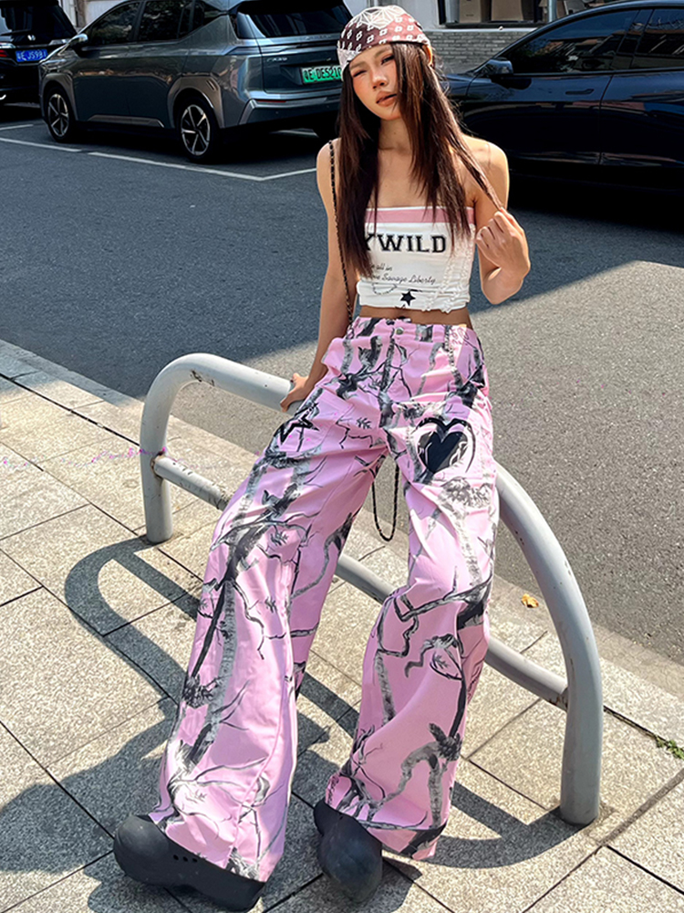 Pink Graffiti Wide Leg Cargo Pants Women Loose Casual Draped Streetwear, Dance High-quality product featuring streetwear fashion women, casual outfits, fashion outfits and more. Modern design that fits the latest trends. Premium materials ensure durability and comfort. Order now for special offers! Product designed with attention to every detail. Suitable for all occasions and personal styles.