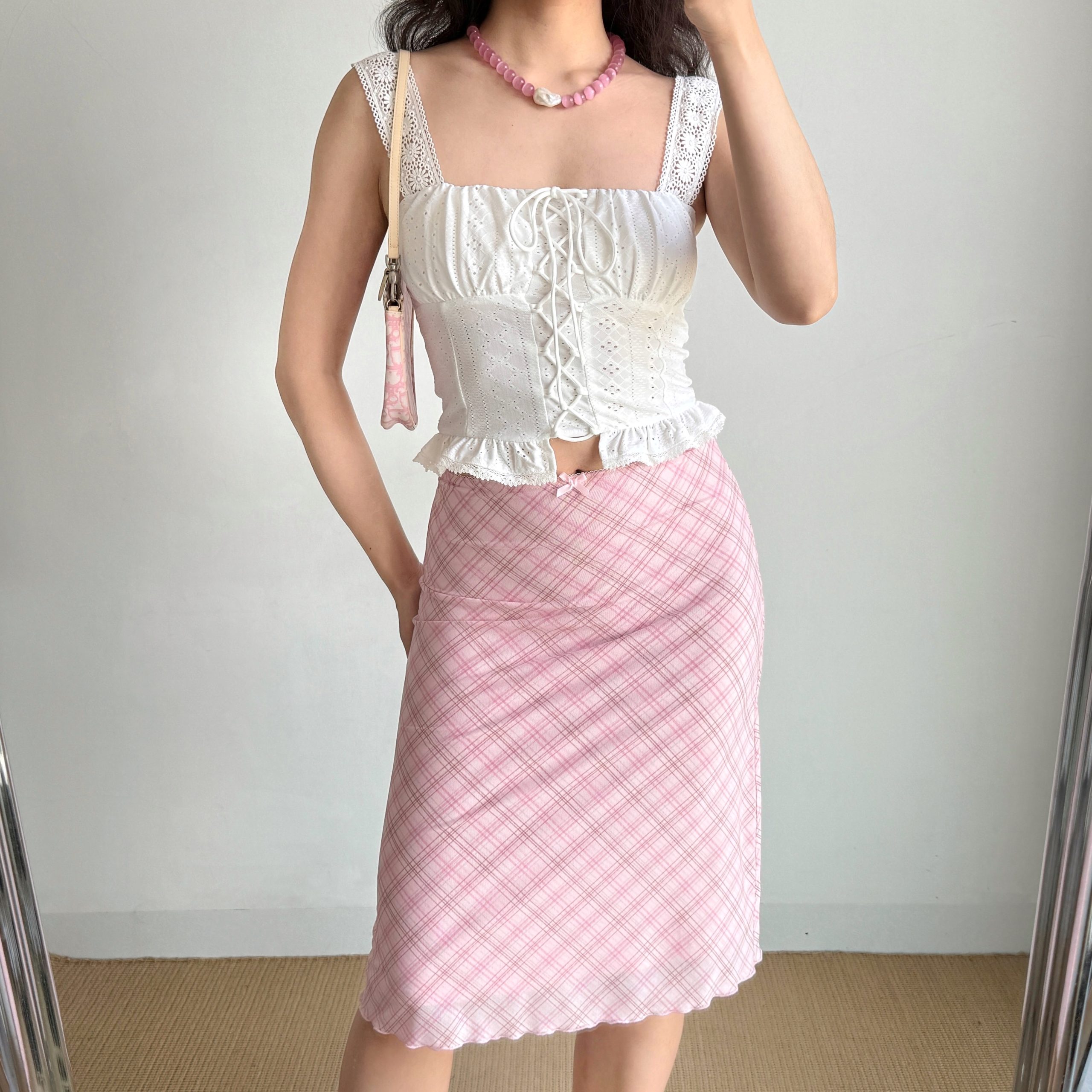 Pink Plaid Diy Skirt Women Elastic Waimesh Half Skirt, Summe – Diy Costumes for Women