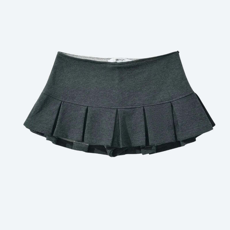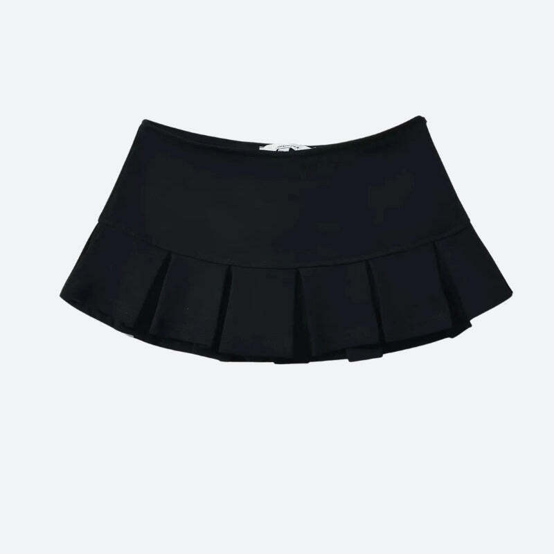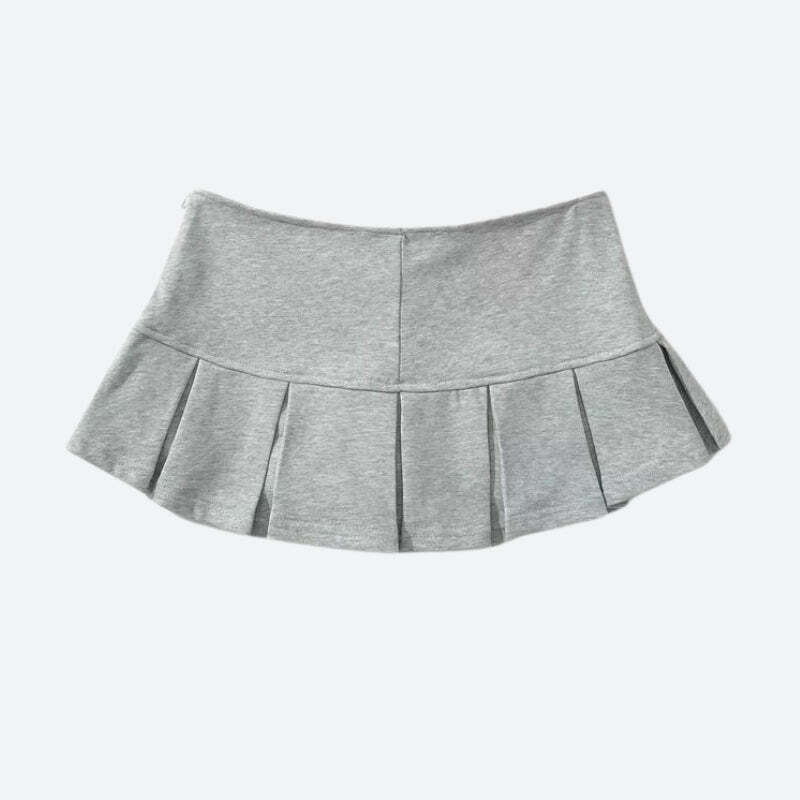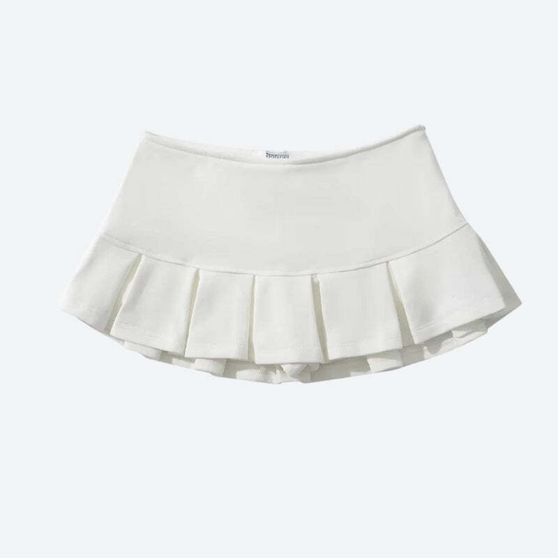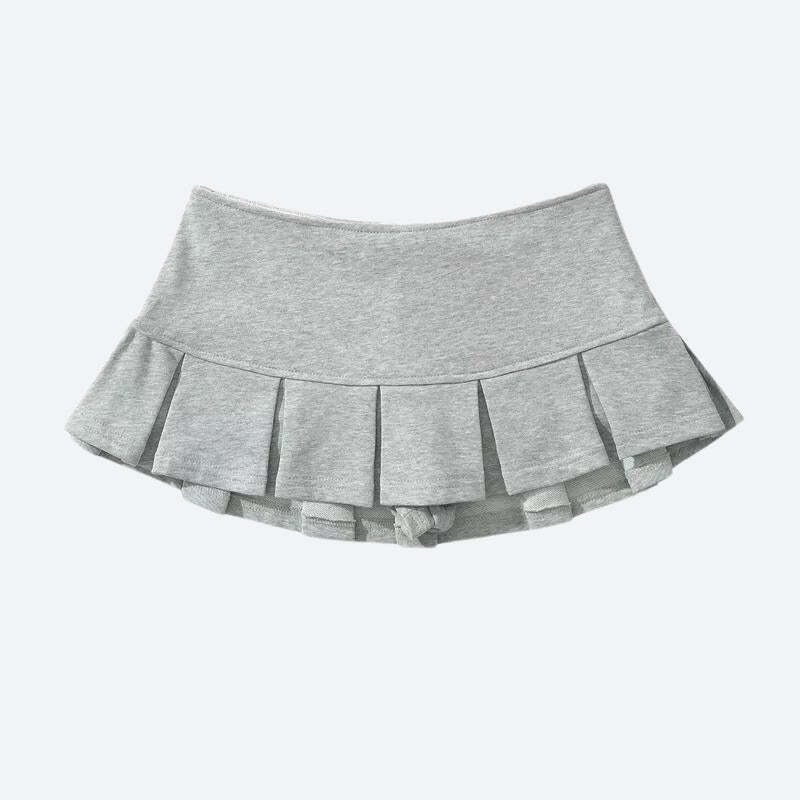 Sporty-chic pleated skort in soft, stretchy fabric. Micro mini length with low-rise fit for a trendy silhouette. Perfect for casual outings or active days. Pairs well with crop tops and sneakers.