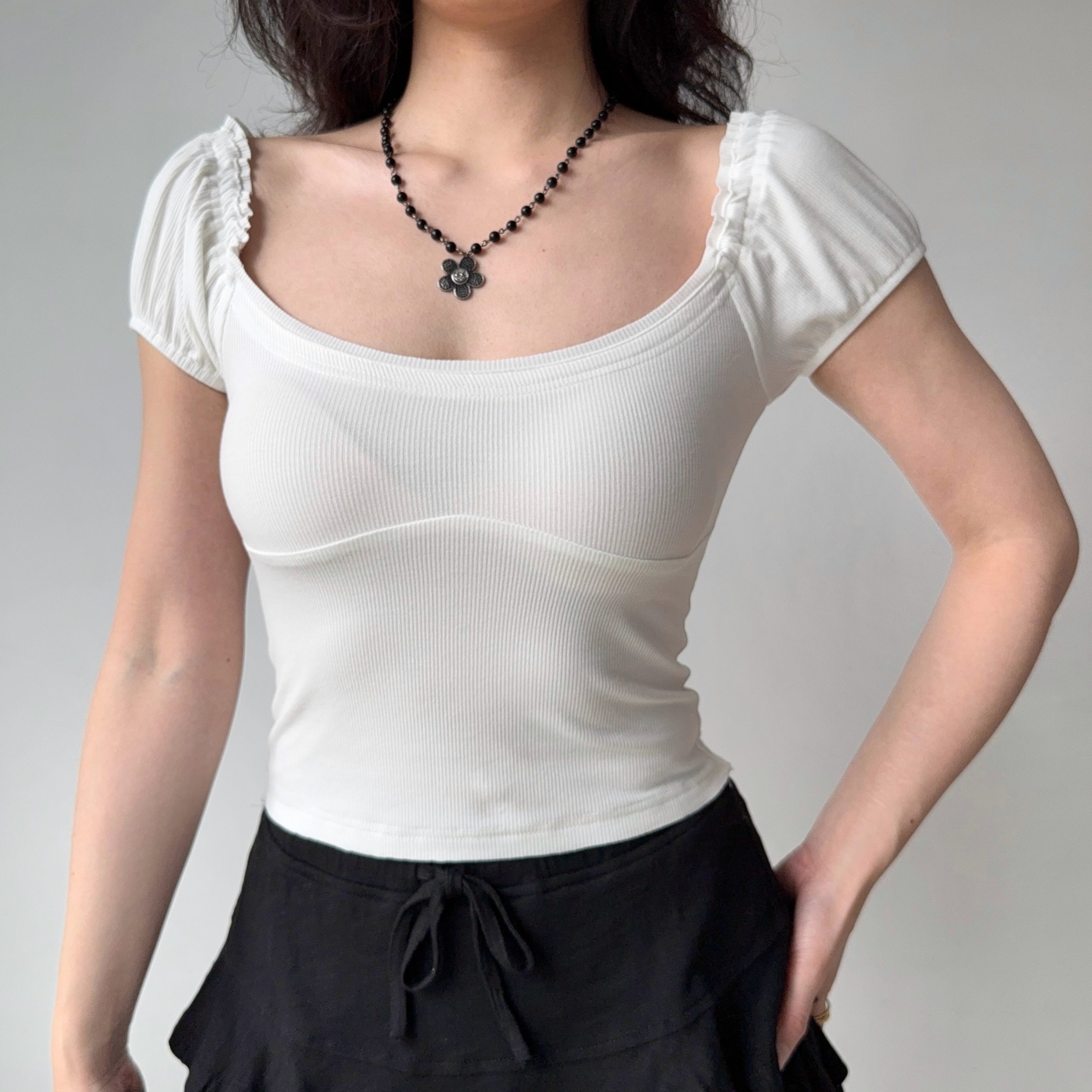 Puff Sleeve U Neck Short Sleeve Women Simple Slim Fit Summer TopEuropean High-quality product featuring easy halloween costume, easy costumes women, simple halloween costume and more. Modern design that fits the latest trends. Premium materials ensure durability and comfort. Order now for special offers! Product designed with attention to every detail. Suitable for all occasions and personal styles.
