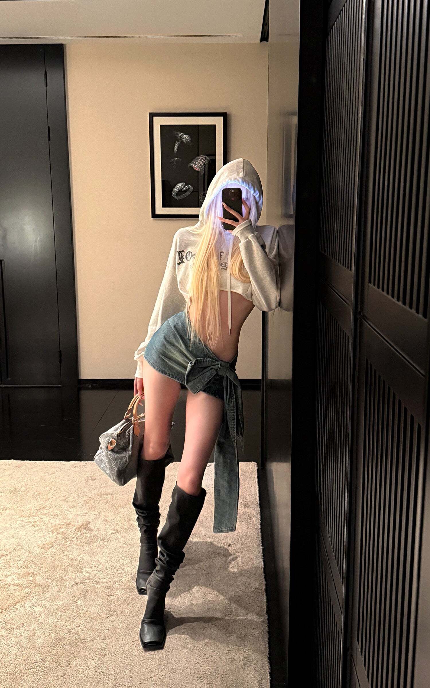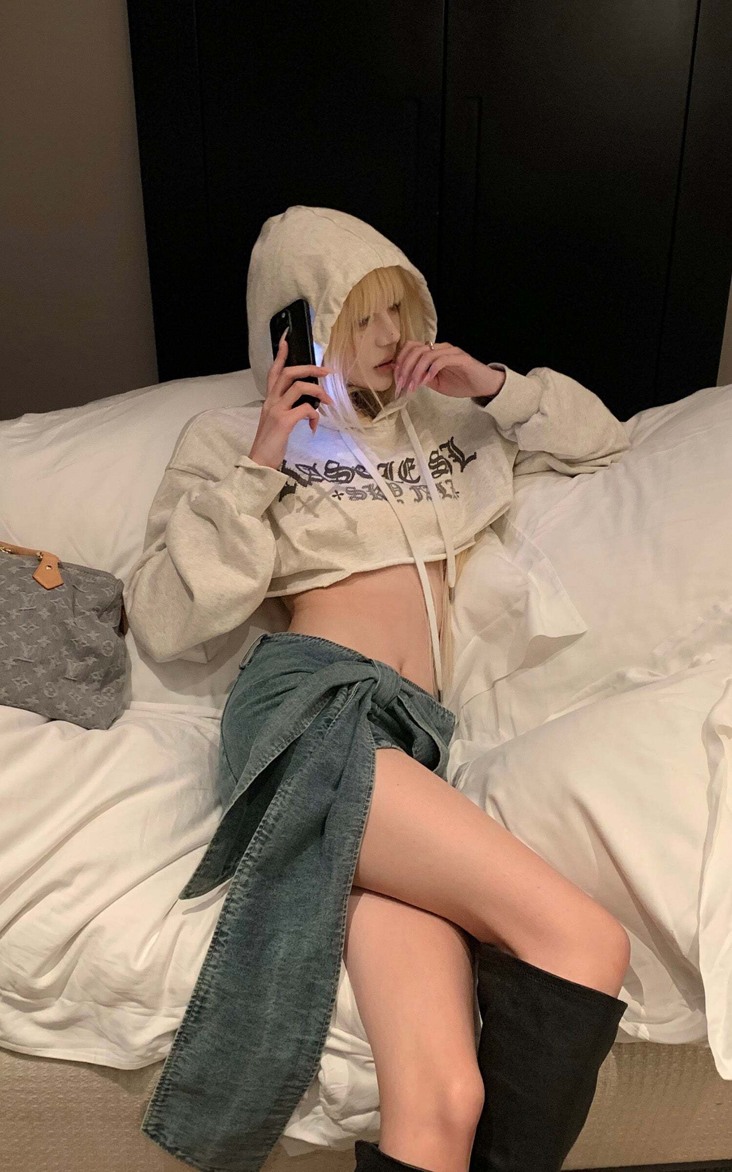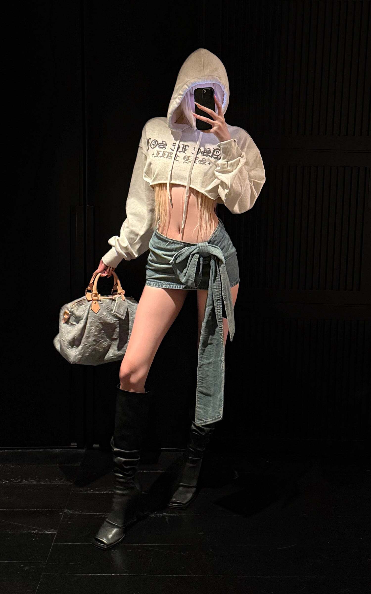 This denim mini skirt redefines the classic silhouette with a deconstructed edge. The asymmetric tie-front drapes down the leg, merging nonchalant ease with a sense of strength. Crafted from soft yet structured washed denim, it features natural fading and fine texture that contour the body without restriction. A concealed side zipper ensures a clean finish, while the built-in lining offers both comfort and security. Perfect paired with cropped tops or tall boots, it moves effortlessly between streetwear and avant-garde styling.