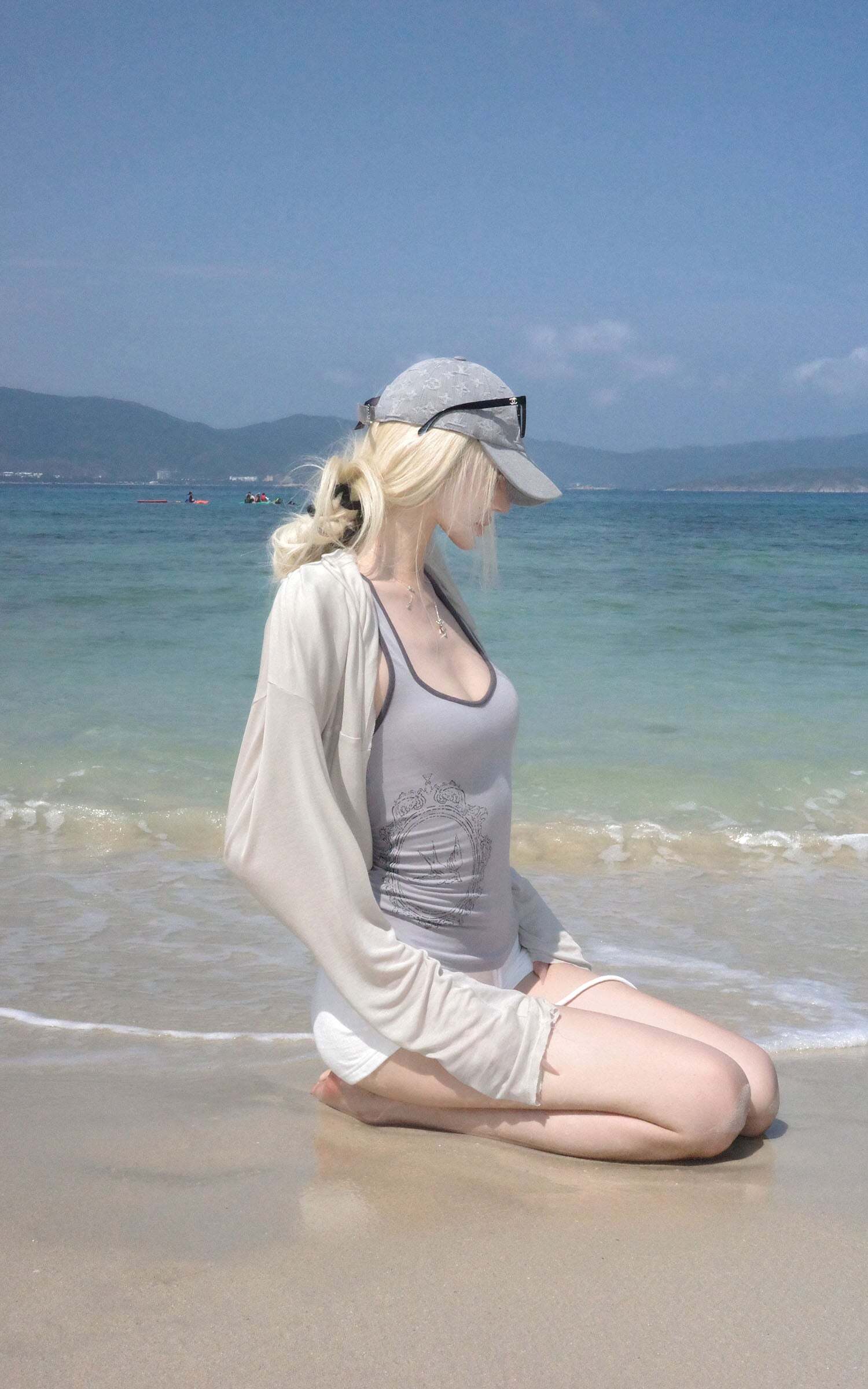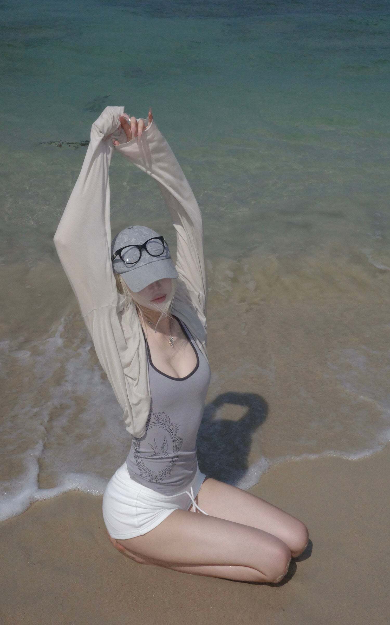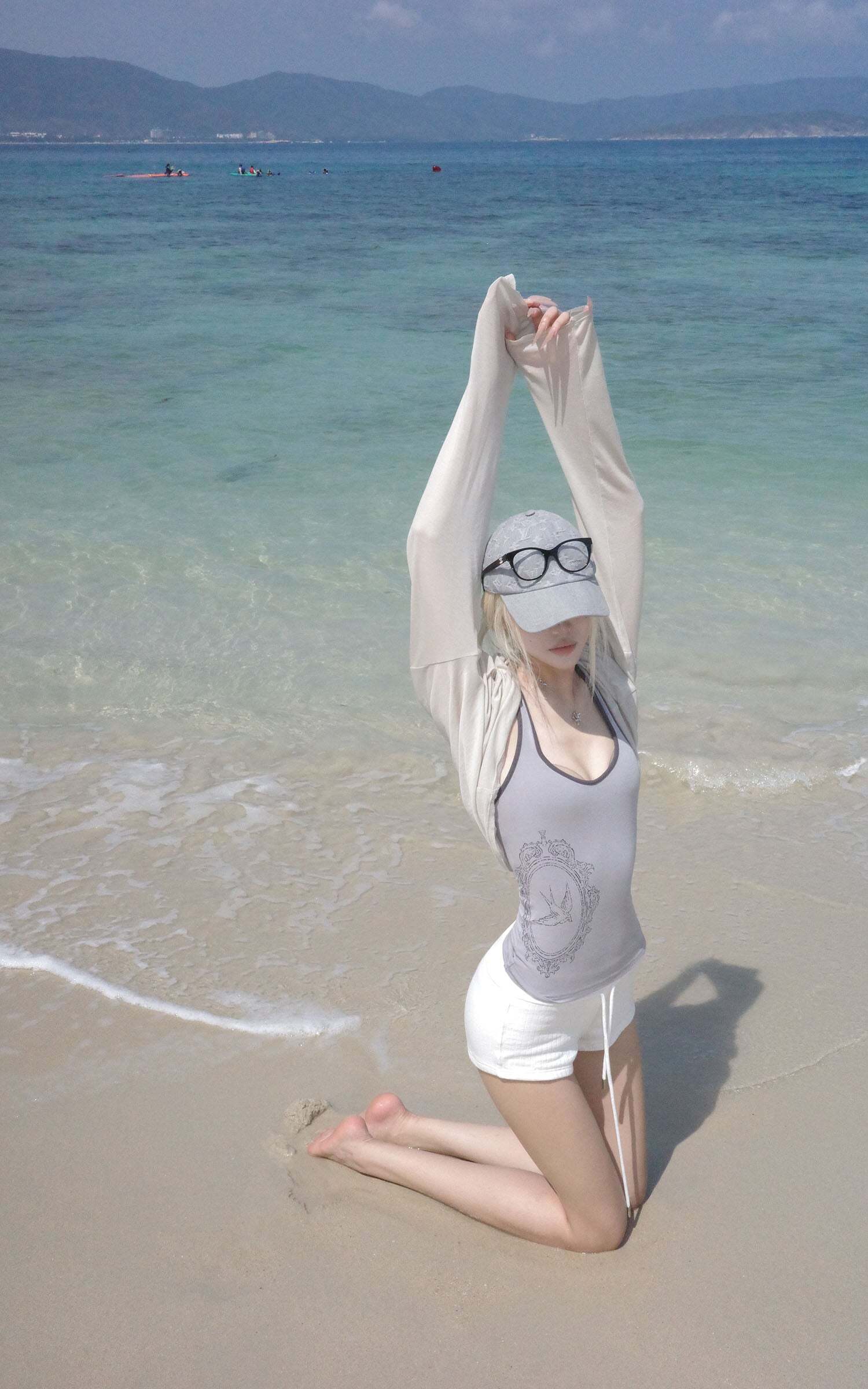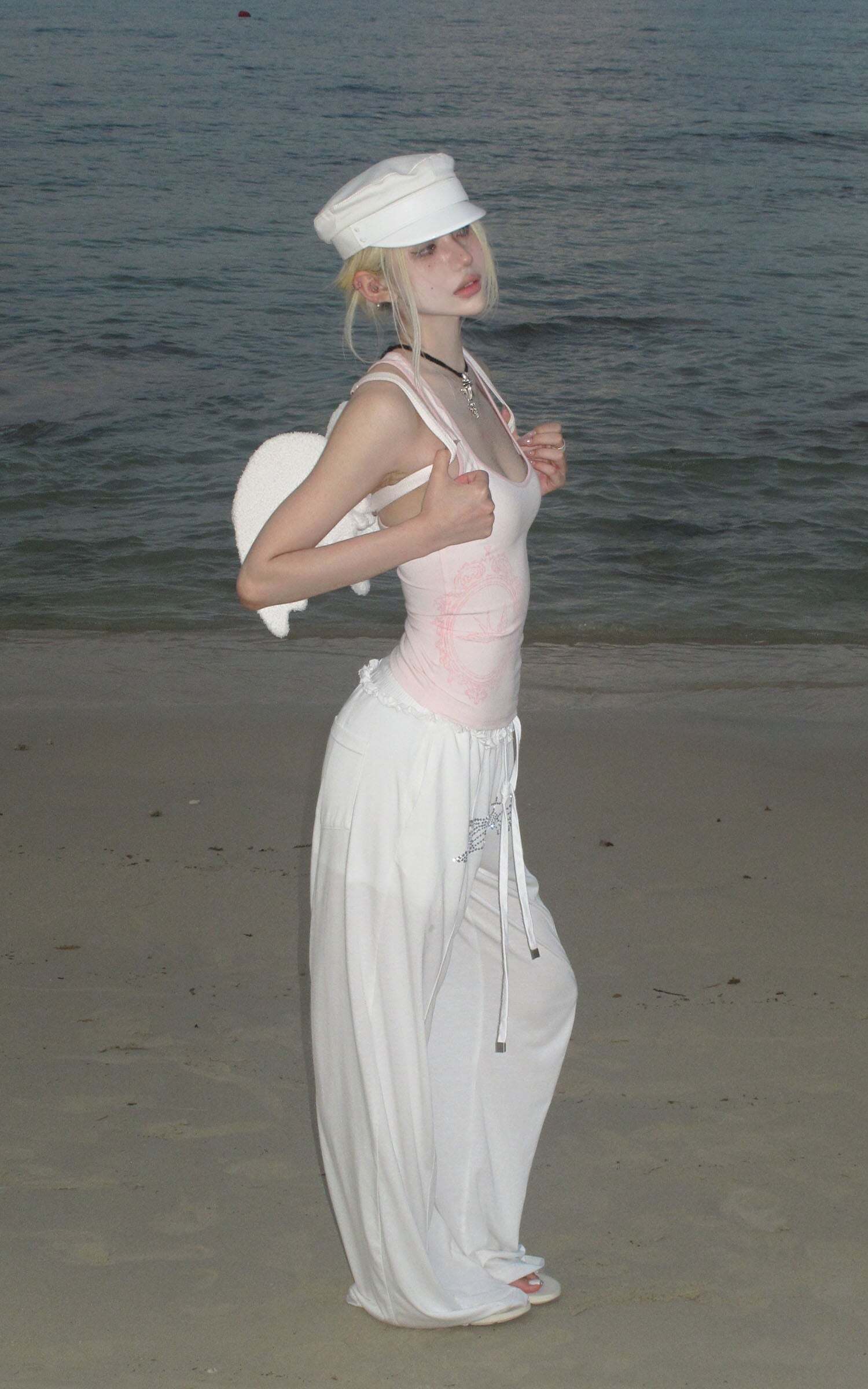 Made from soft ribbed cotton, this fitted top embraces the skin with a barely-there comfort. Inspired by classical frames and adorned with a soaring bird, the contrast print across the chest speaks softly yet powerfully. Slender shoulder straps and a cinched waist carve a sharp, delicate silhouette. Whether worn alone or layered, it sketches a solitary, free-spirited figure, imbued with a stark, quiet intensity.