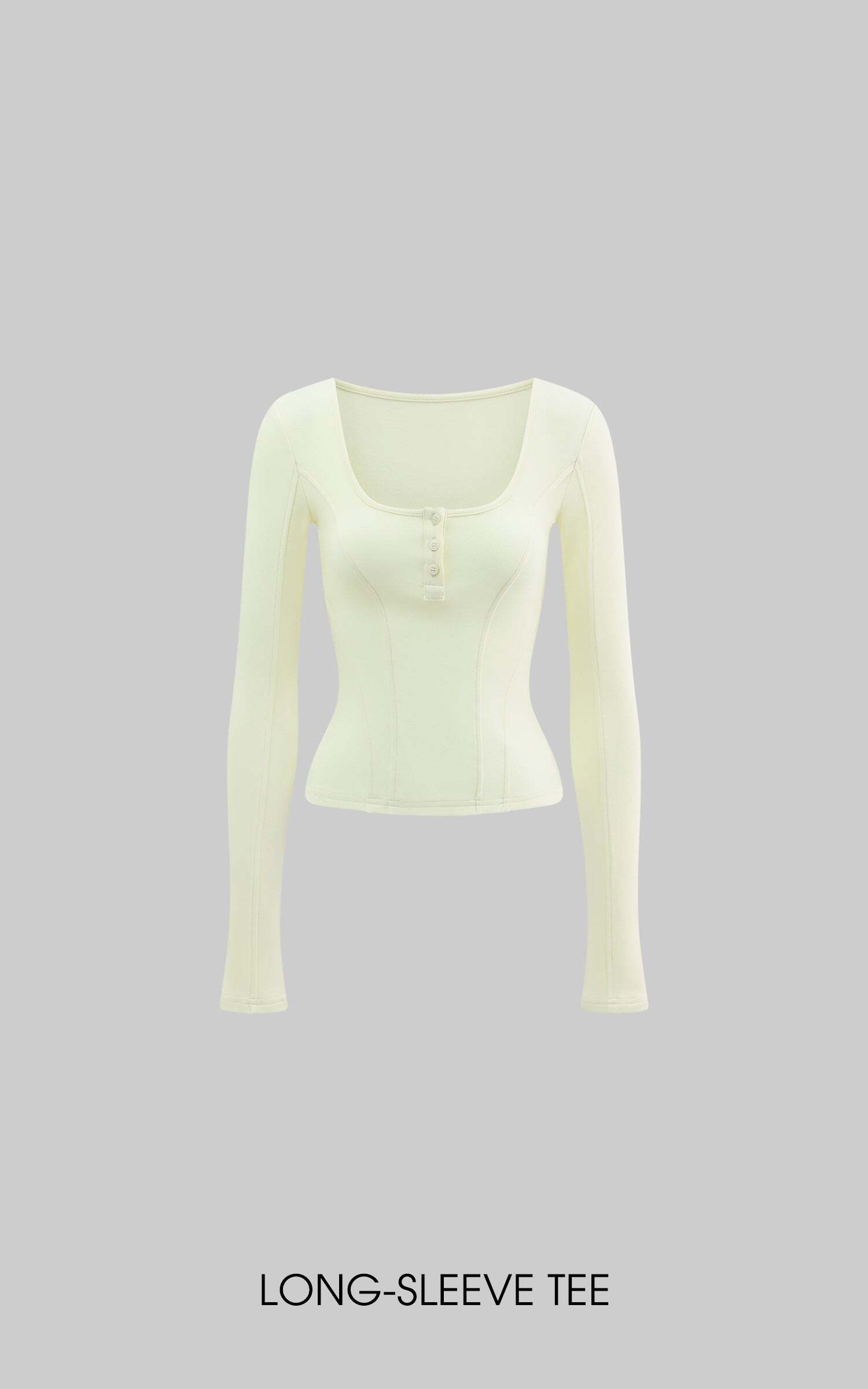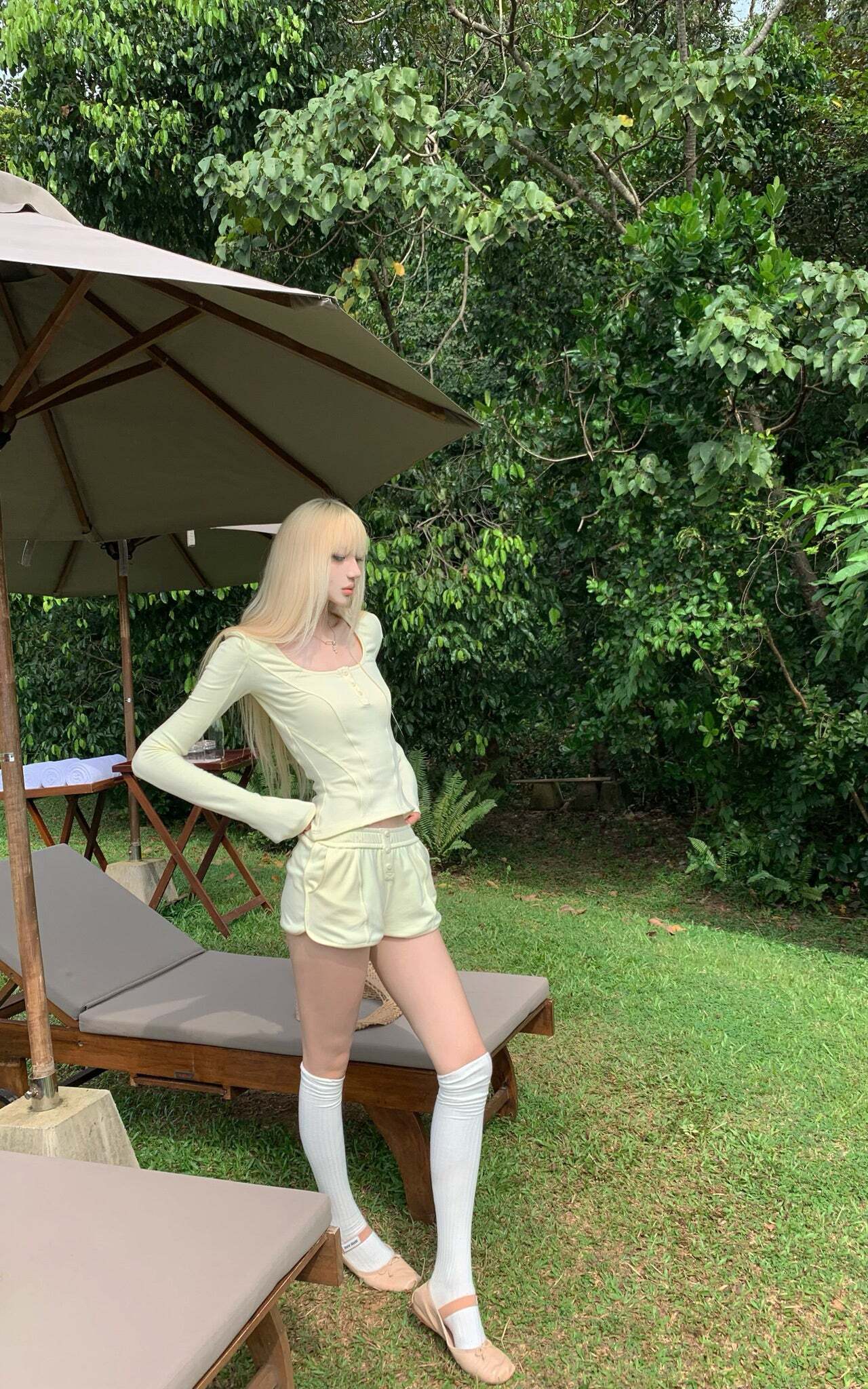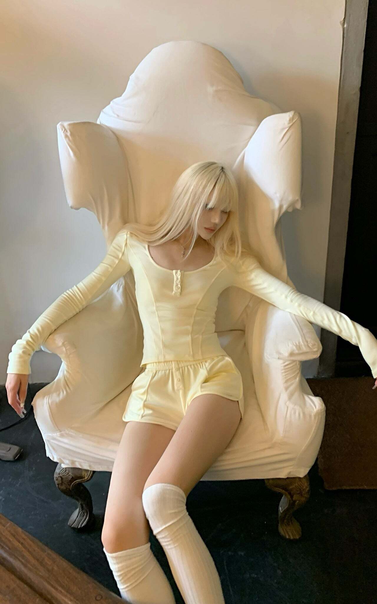 Cream Yellow Fitted Long-sleeve Tee & Relaxed Shorts Set – Summer Fits