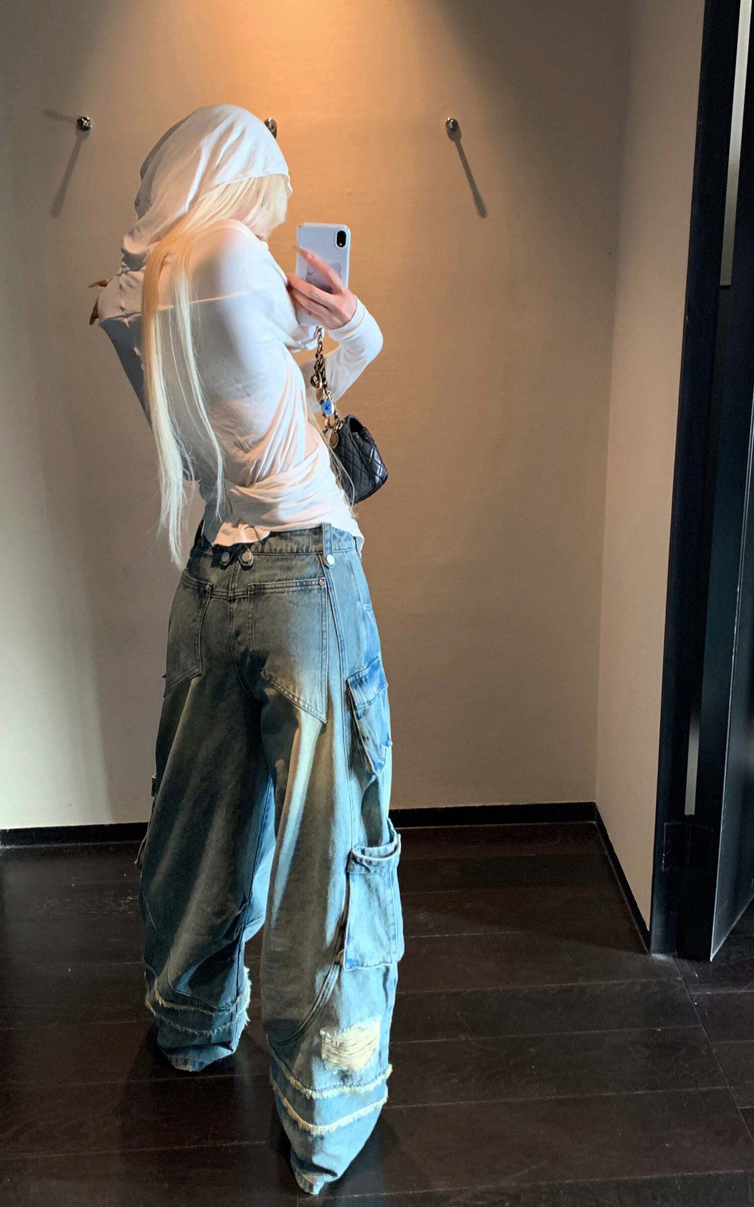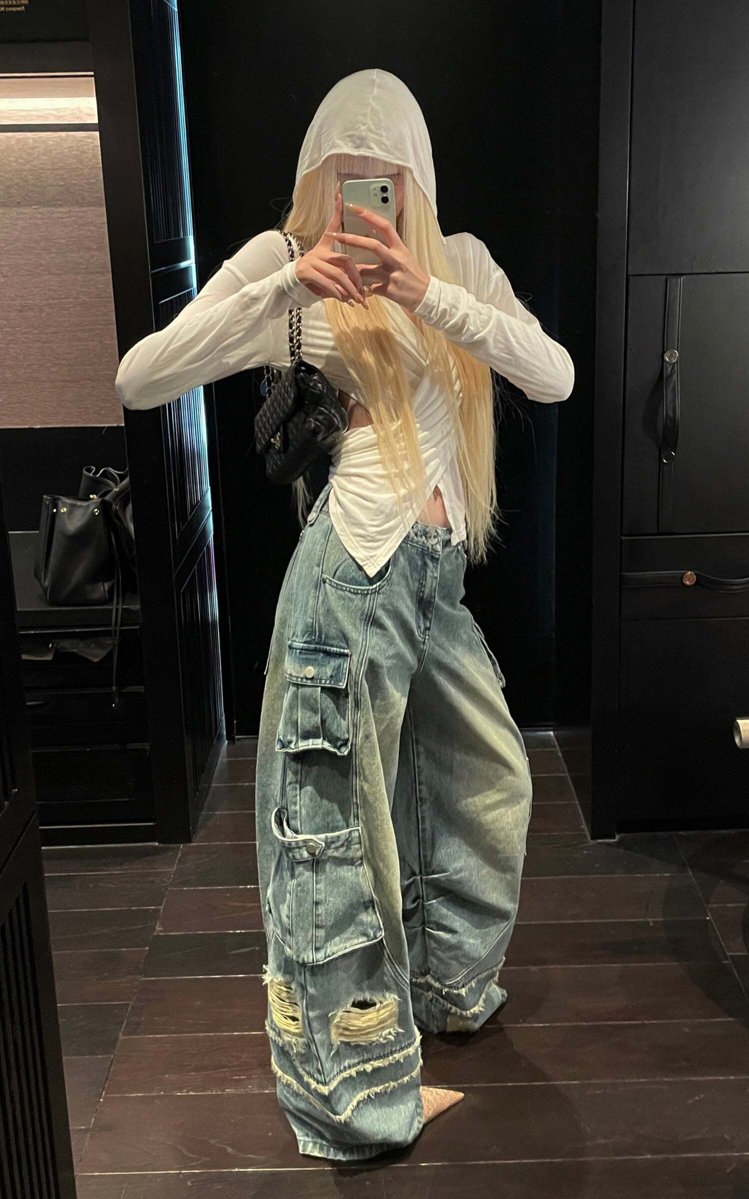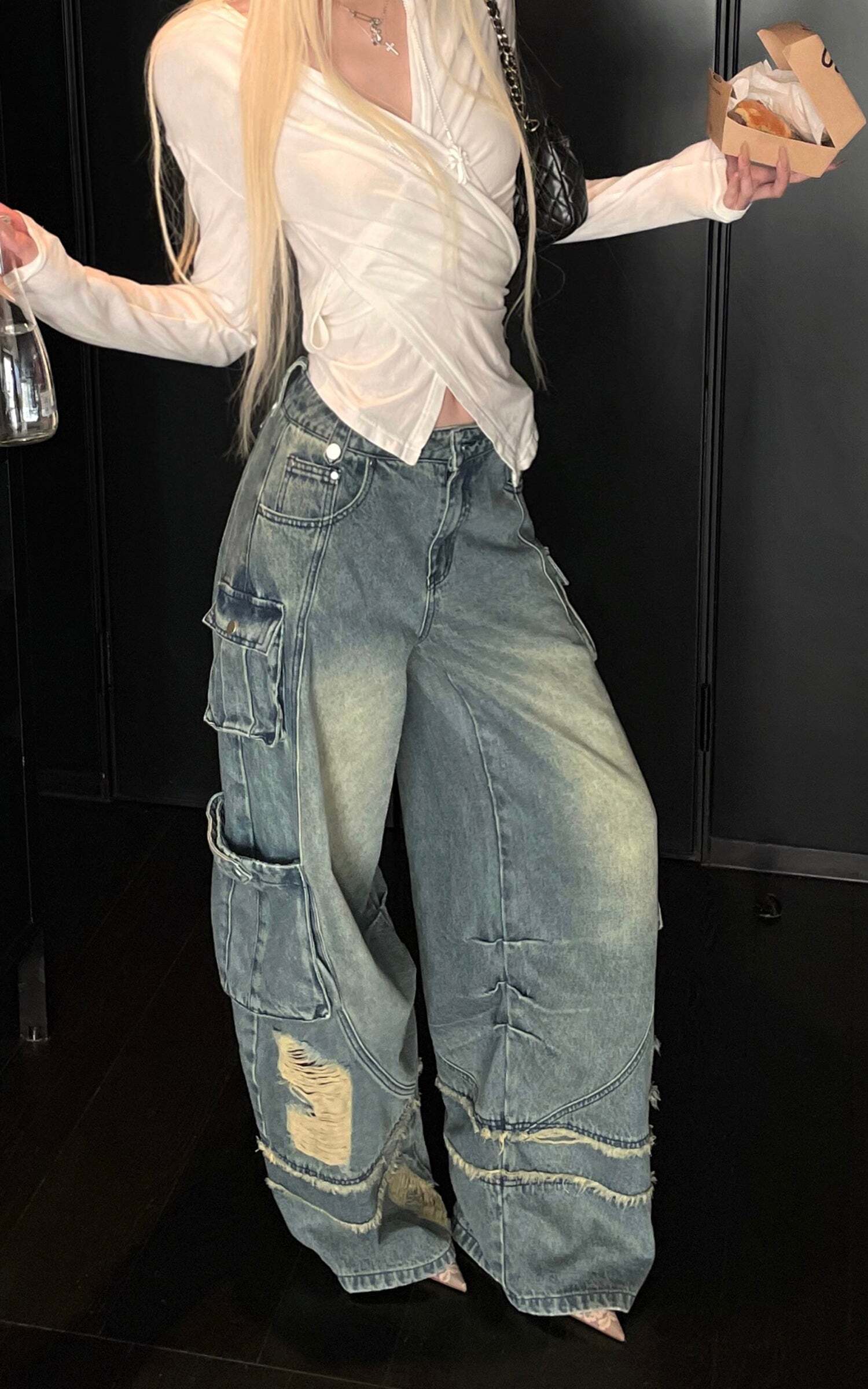 Deconstructed Distressed Wide-leg Denim Pants – Outfit Inspo