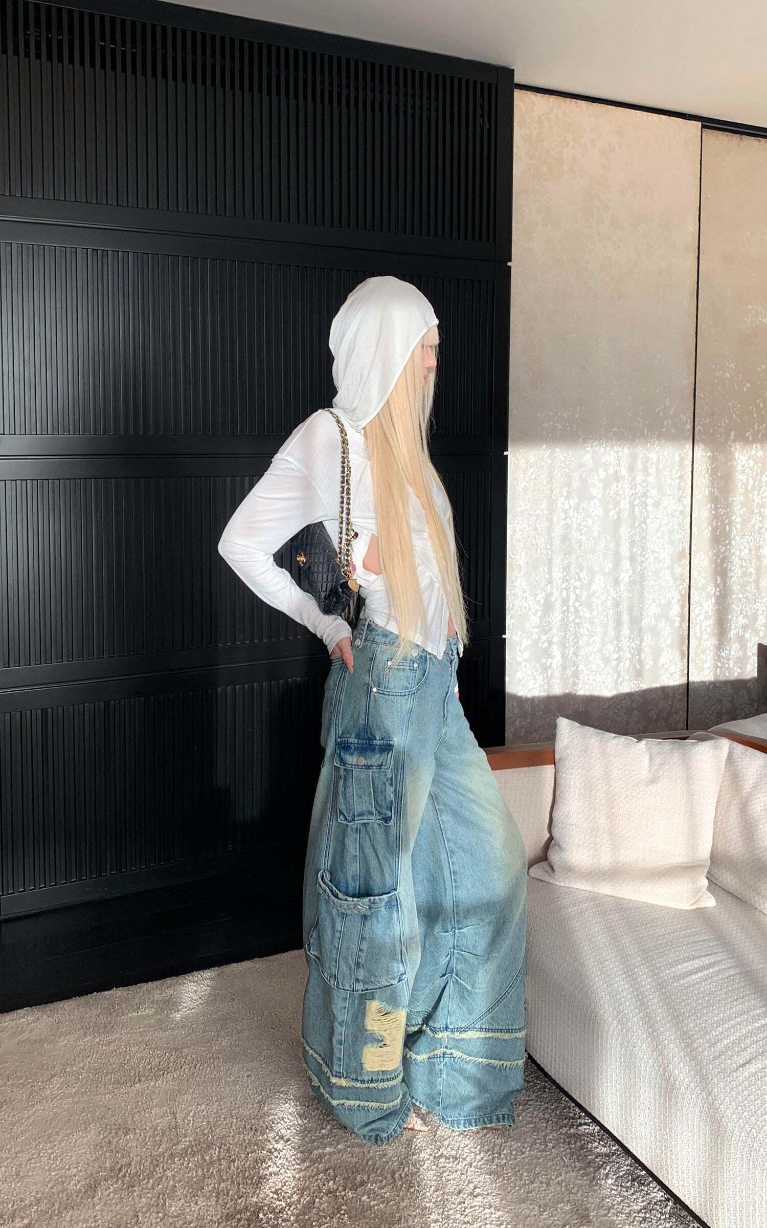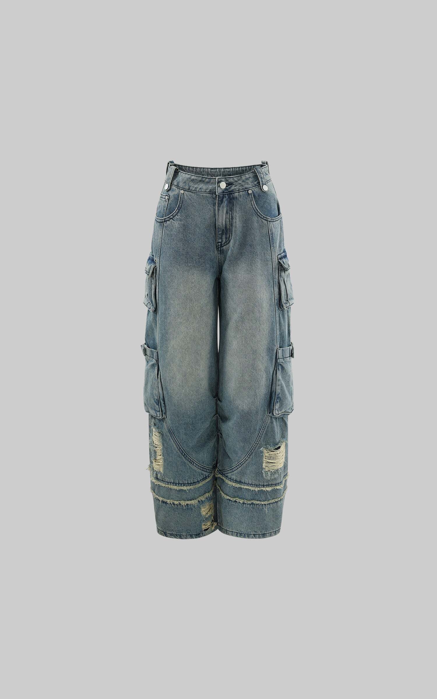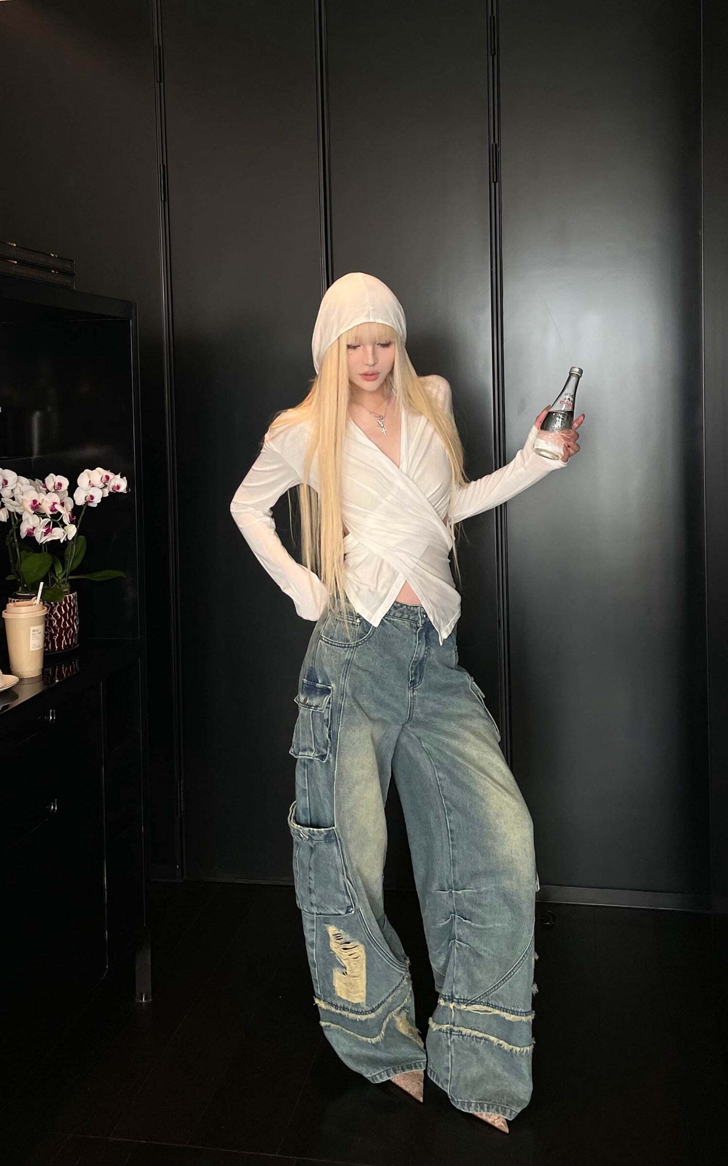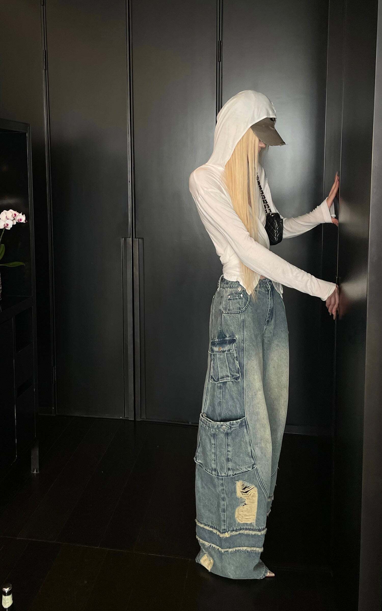 Deconstructed Distressed Wide-leg Denim Pants – Outfit Inspo
