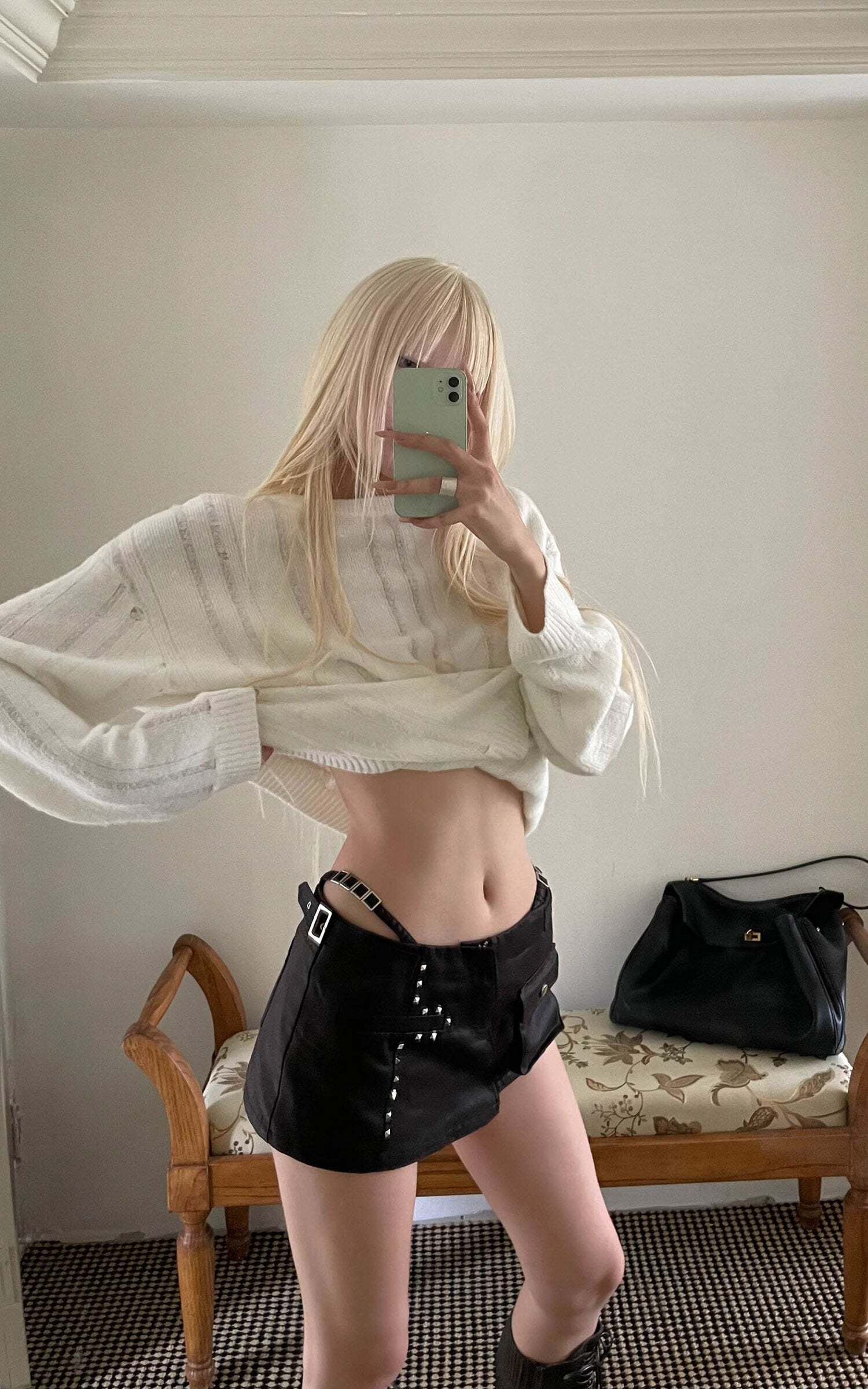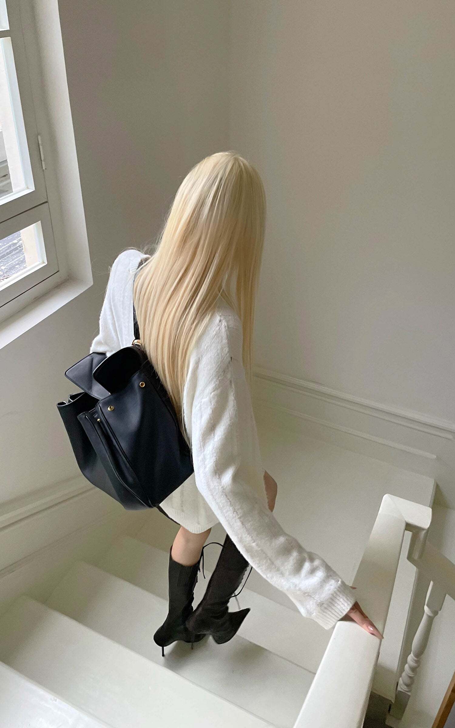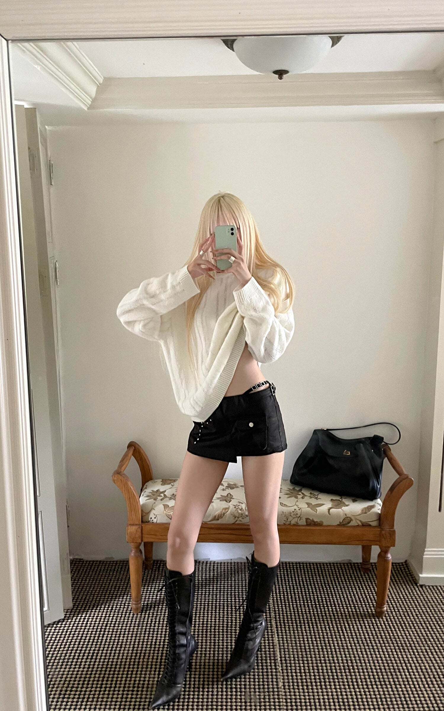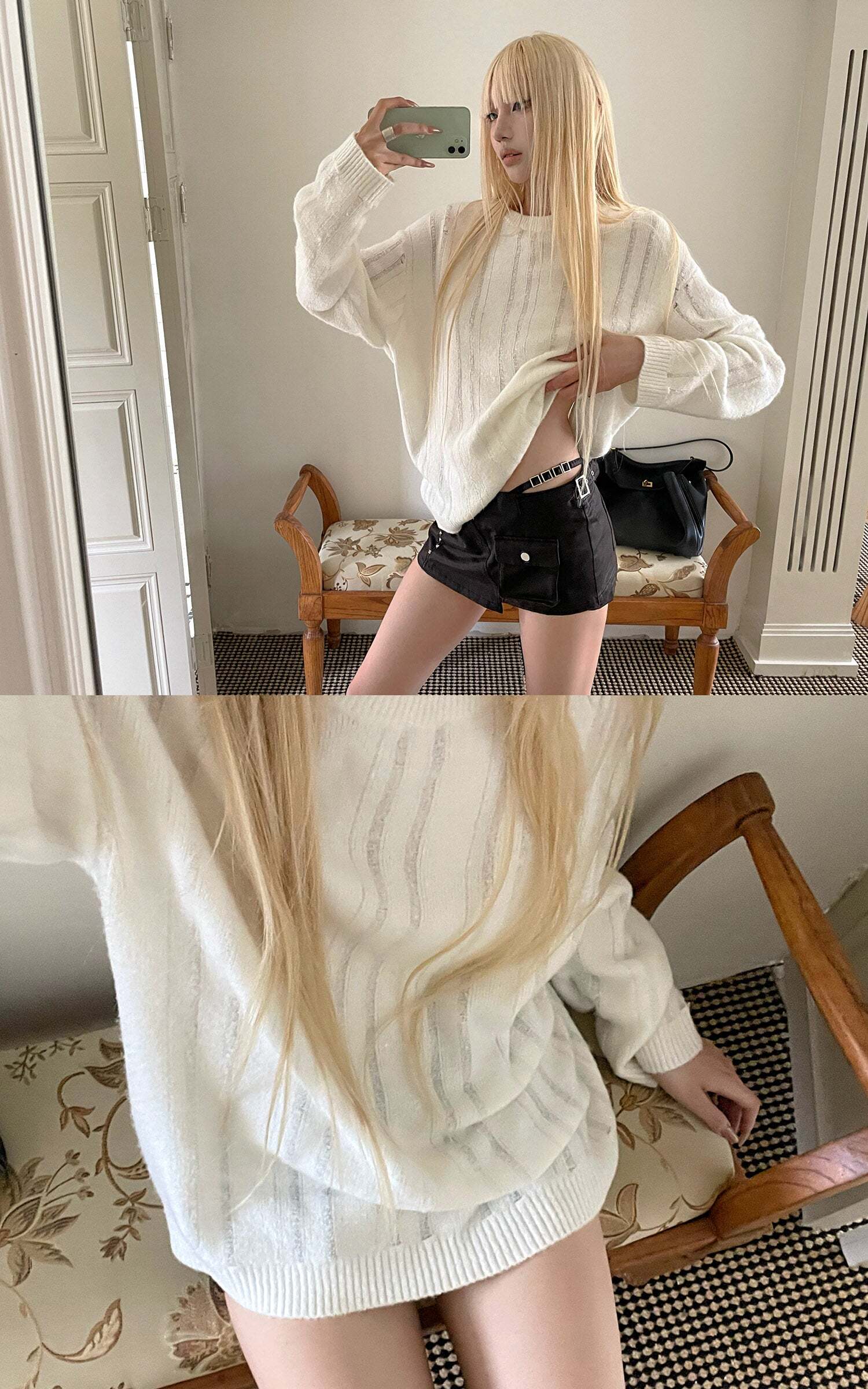 Crafted from soft knit yarn with subtle vertical textures, this sweater drapes effortlessly in a relaxed silhouette. The understated crew neckline and elongated sleeves evoke restraint and quiet strength. Its loose form creates a sense of ease and detachment, standing alone as a statement piece or layered with depth and intention.