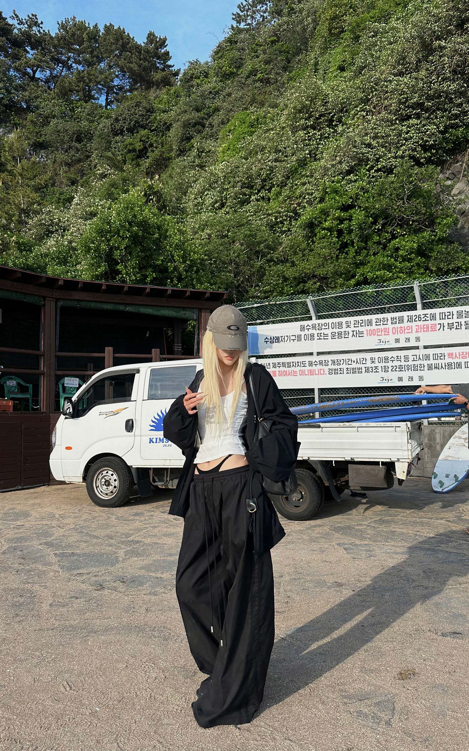 Double-Layered Overlap Drawstring Pants High-quality product featuring leather pants outfit winter, cargo pants outfit, summer fits and more. Modern design that fits the latest trends. Premium materials ensure durability and comfort. Order now for special offers! Product designed with attention to every detail. Suitable for all occasions and personal styles.