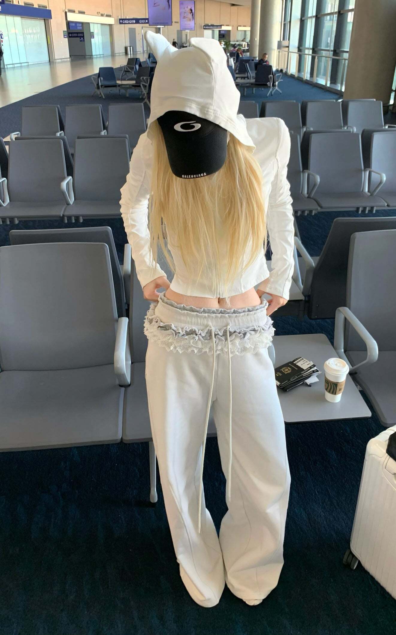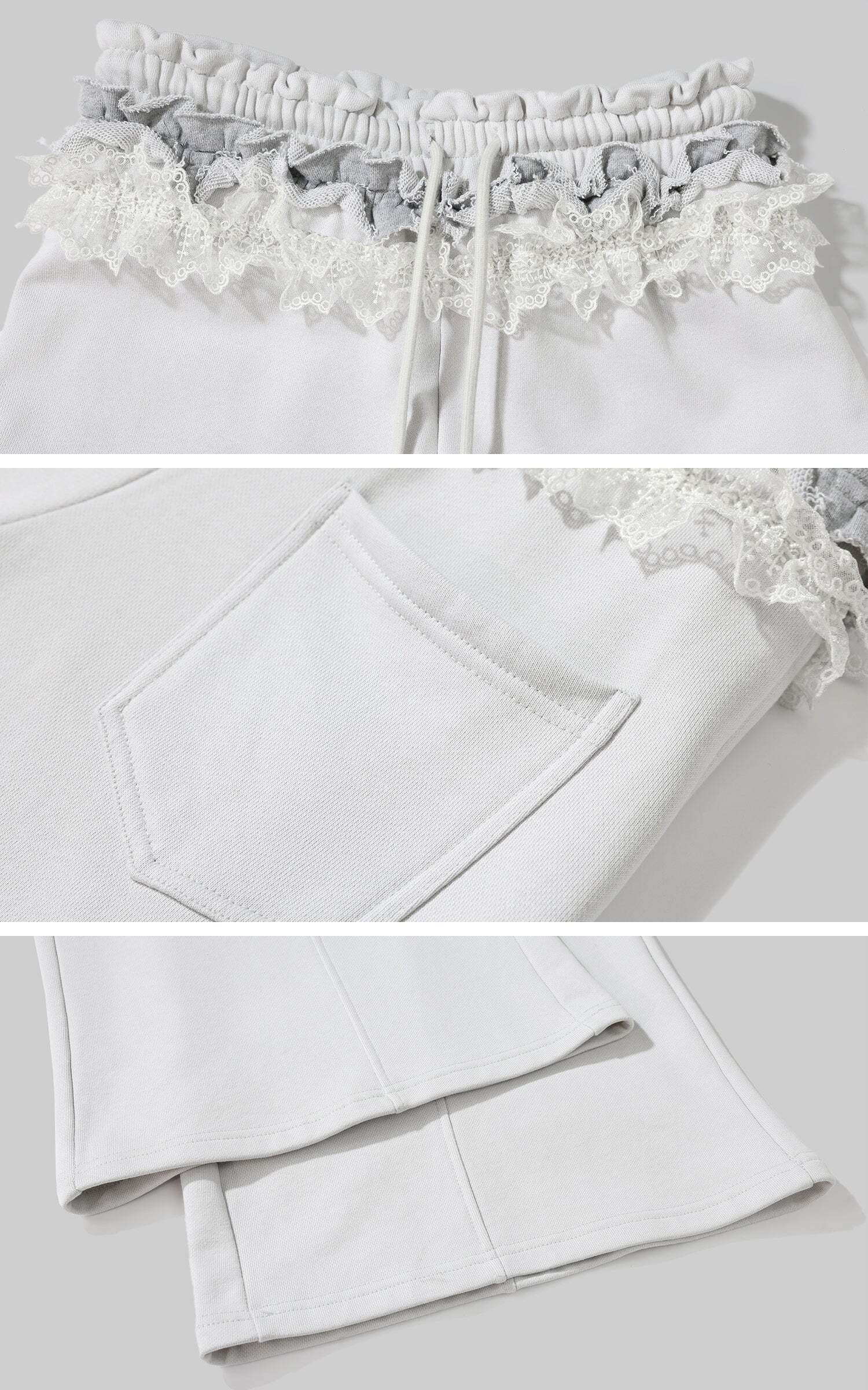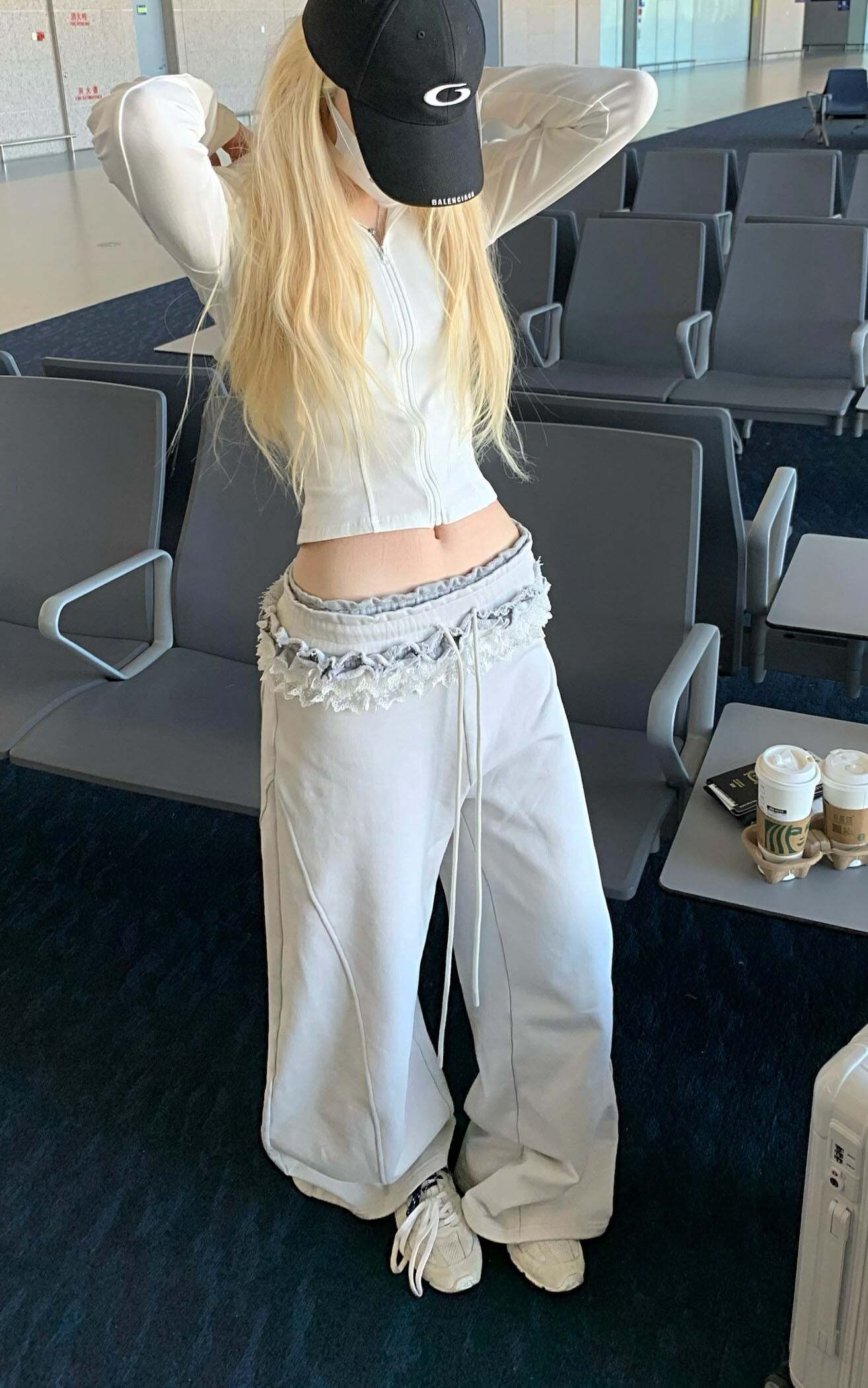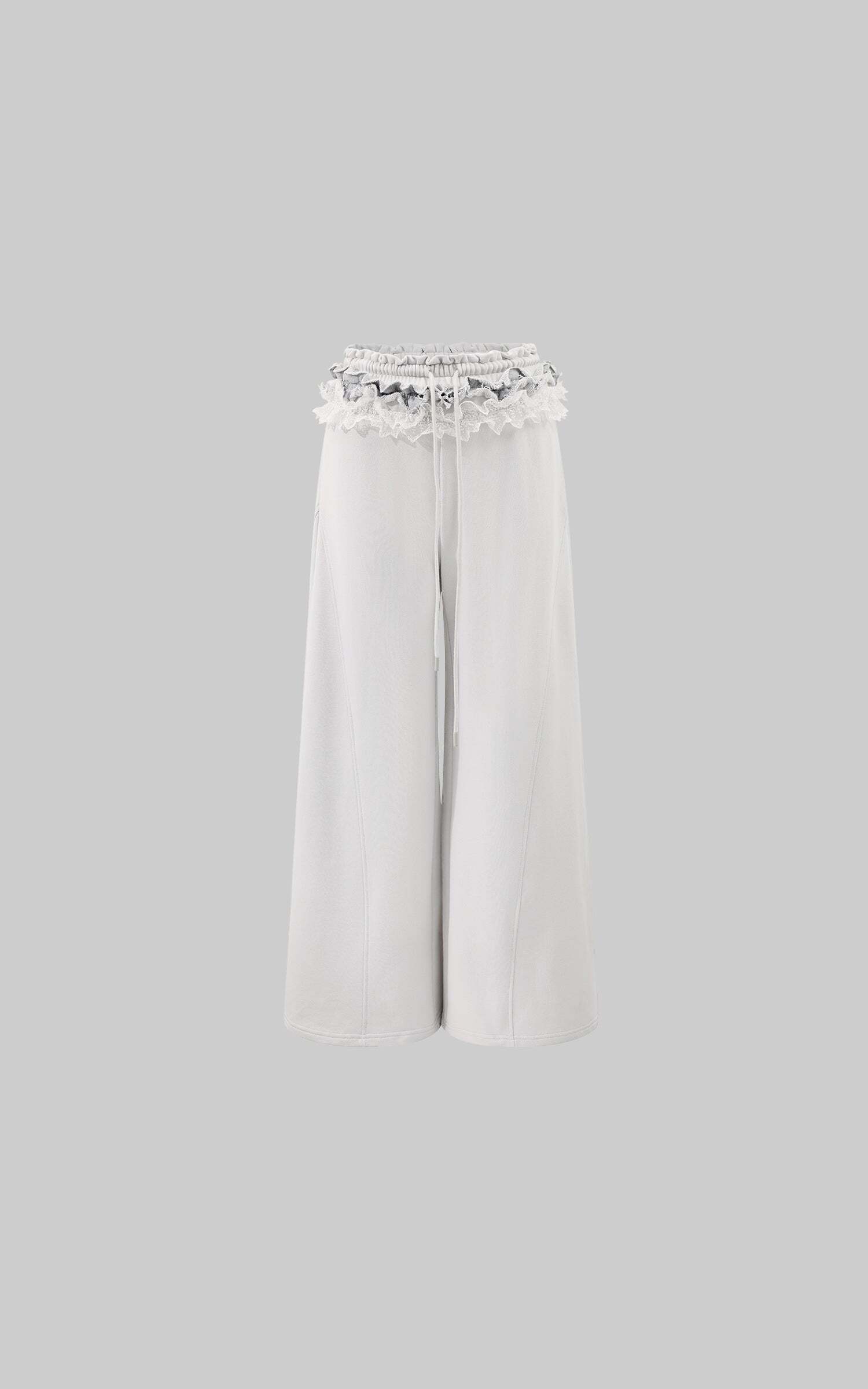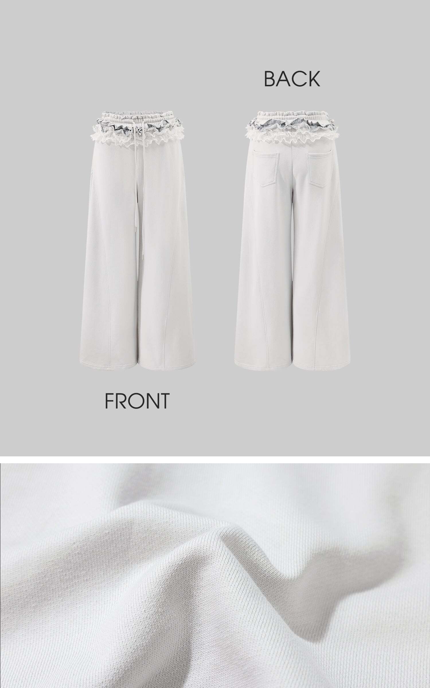 Double Waistband Lace-trimmed Wide-leg Pants – Leather – Leather Pants Outfit Winter