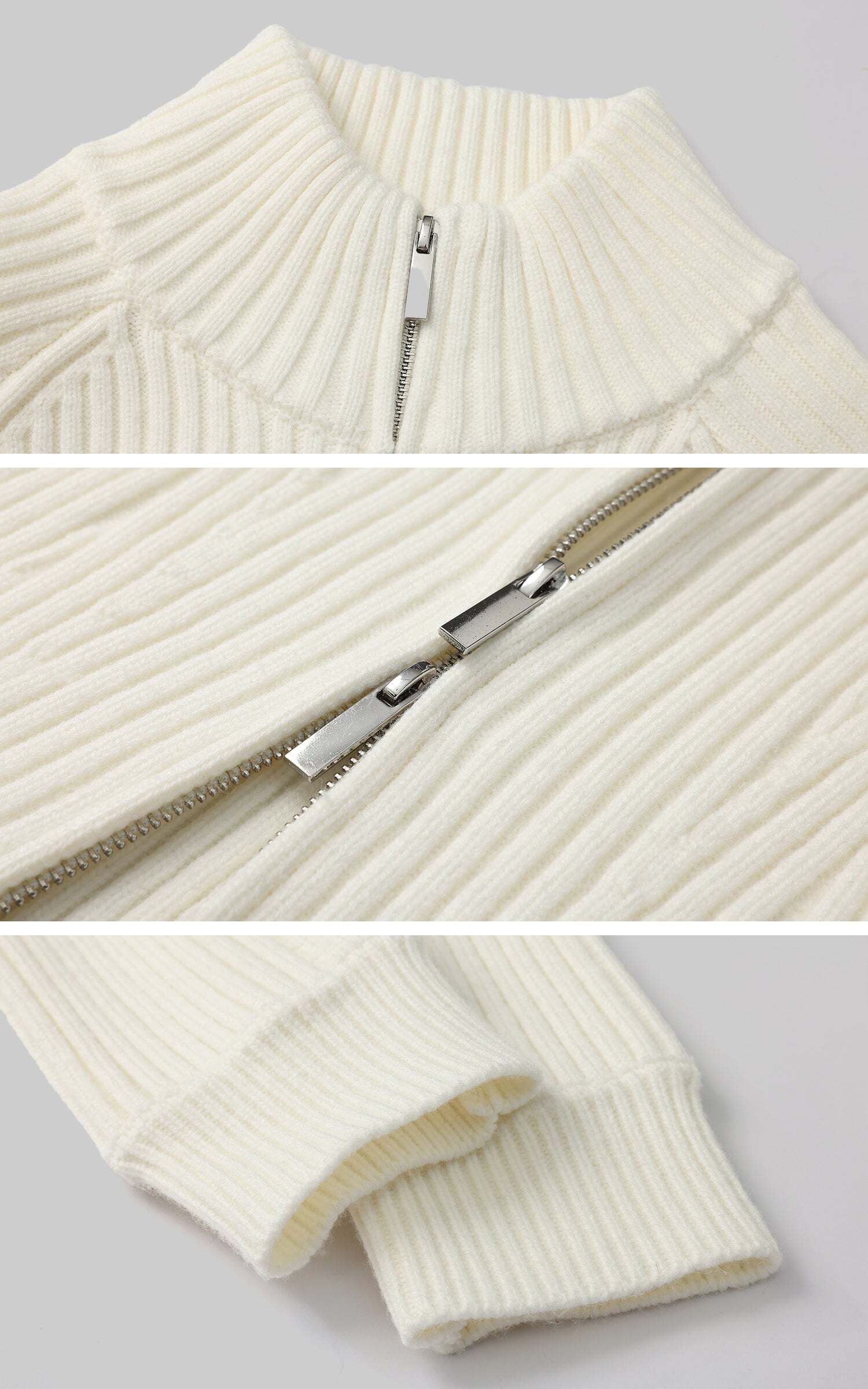 This double-zipper ribbed sweater embodies the perfect blend of minimalism and sophistication. Tailored for a sleek fit, it highlights feminine contours with a dual-zipper feature, offering both elegance and functionality. The adjustable hem allows for versatile styling, whether left open for a relaxed silhouette or zipped for a refined look. Crafted from soft and textured knit fabric, it delivers premium comfort and warmth, making it an essential piece for layering or wearing alone. Perfect for both everyday wear and polished occasions.