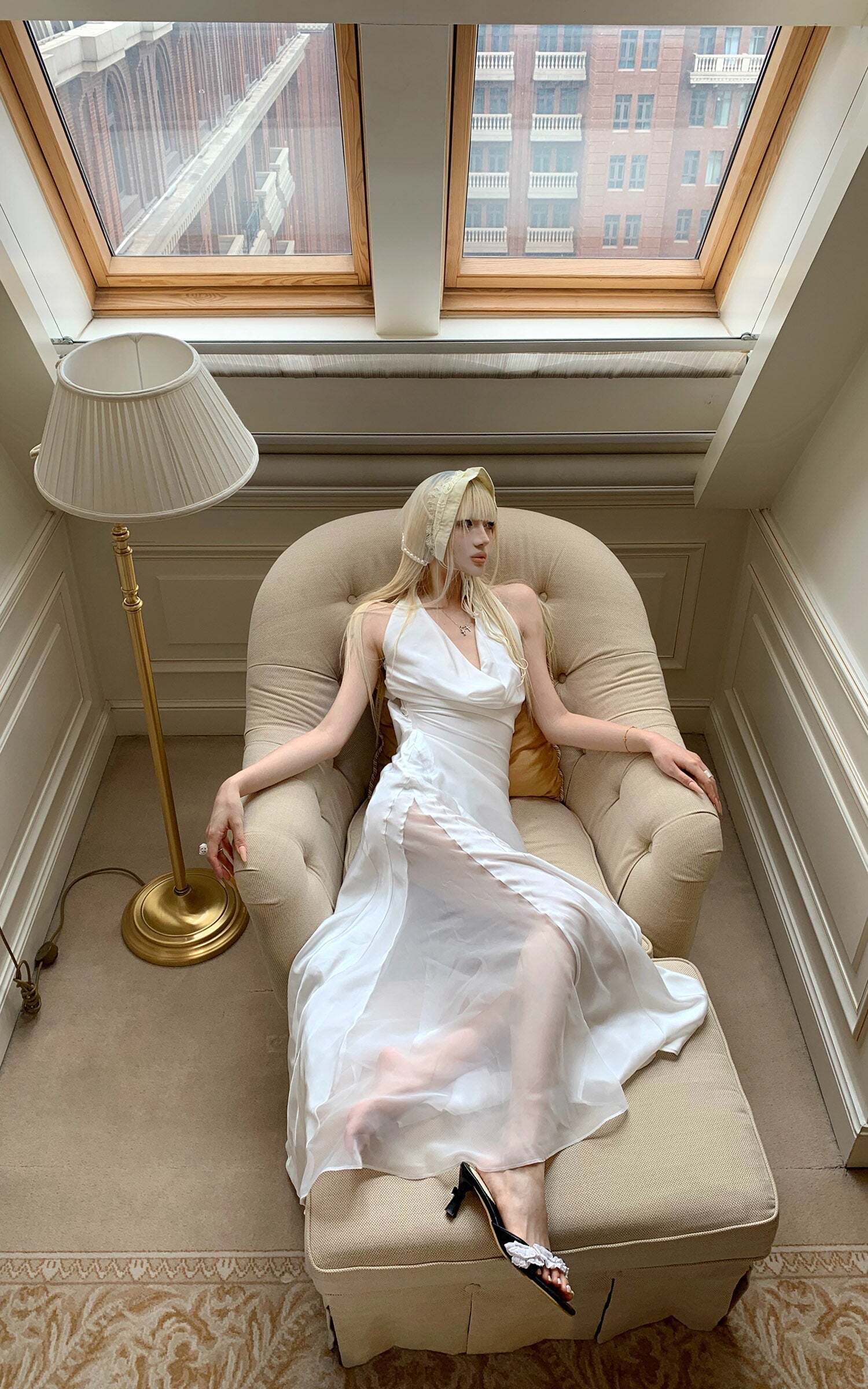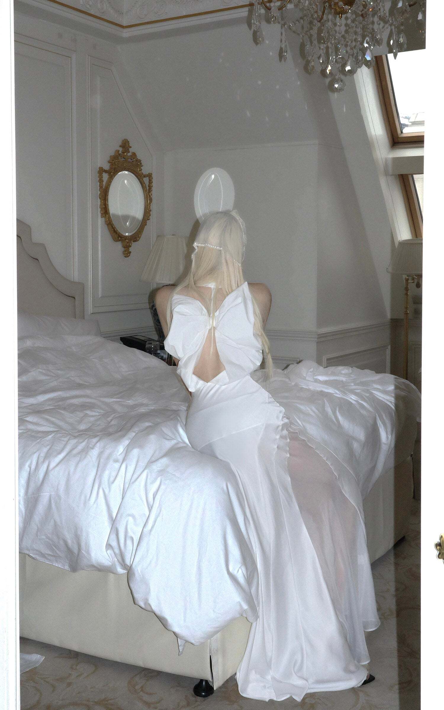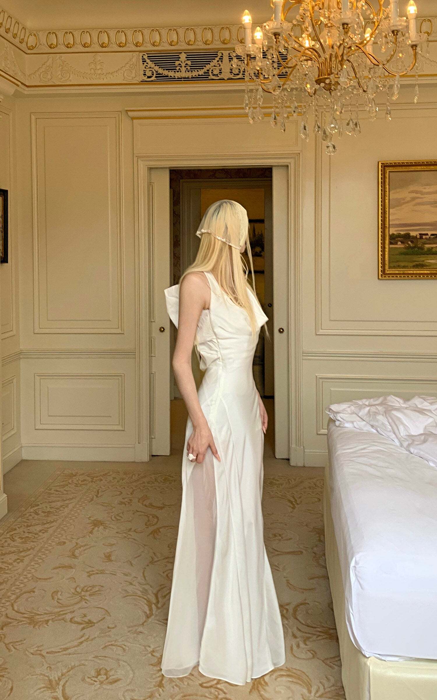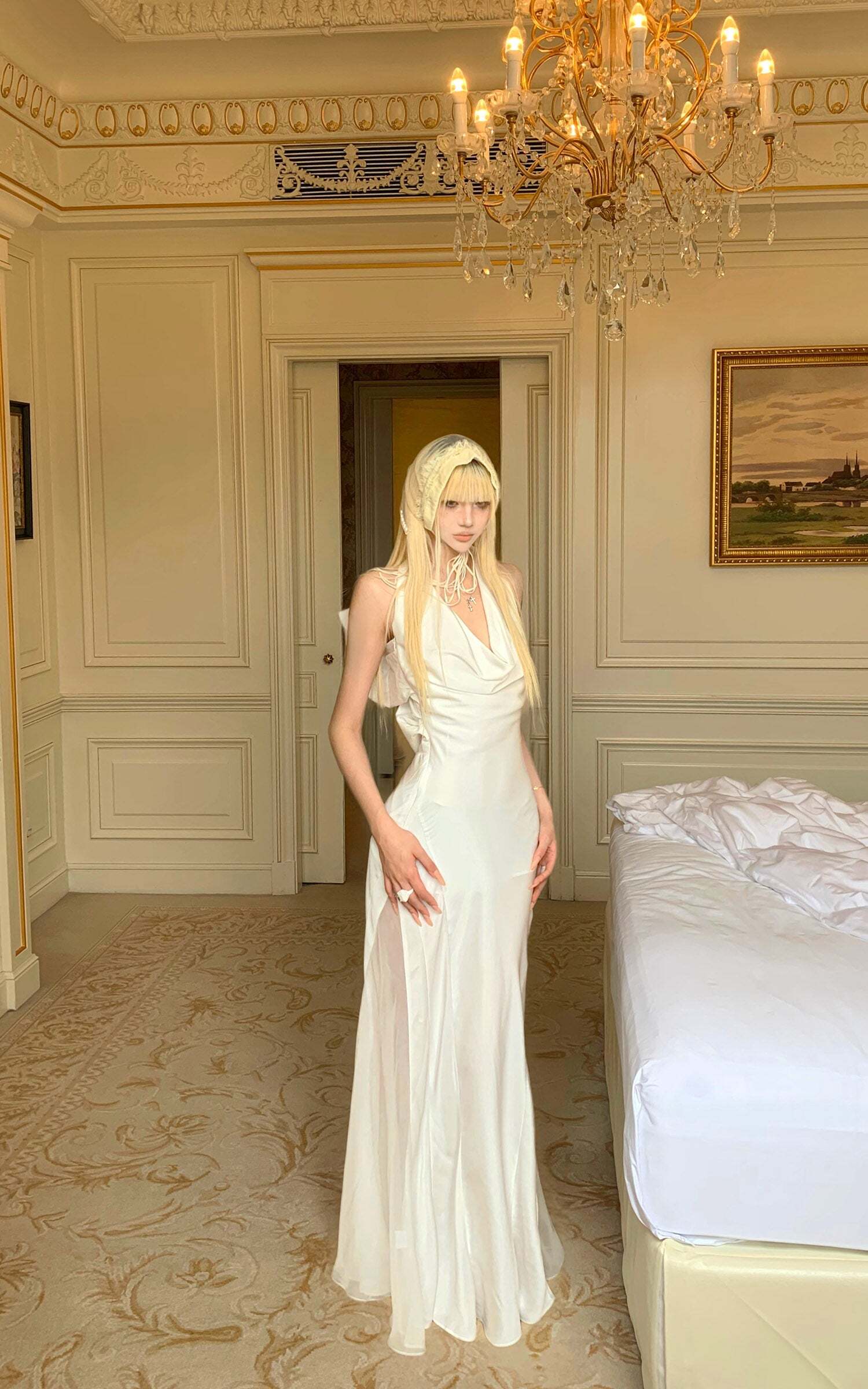 Elegant Draped Halter Backless Graduation Dress with Oversized Bow