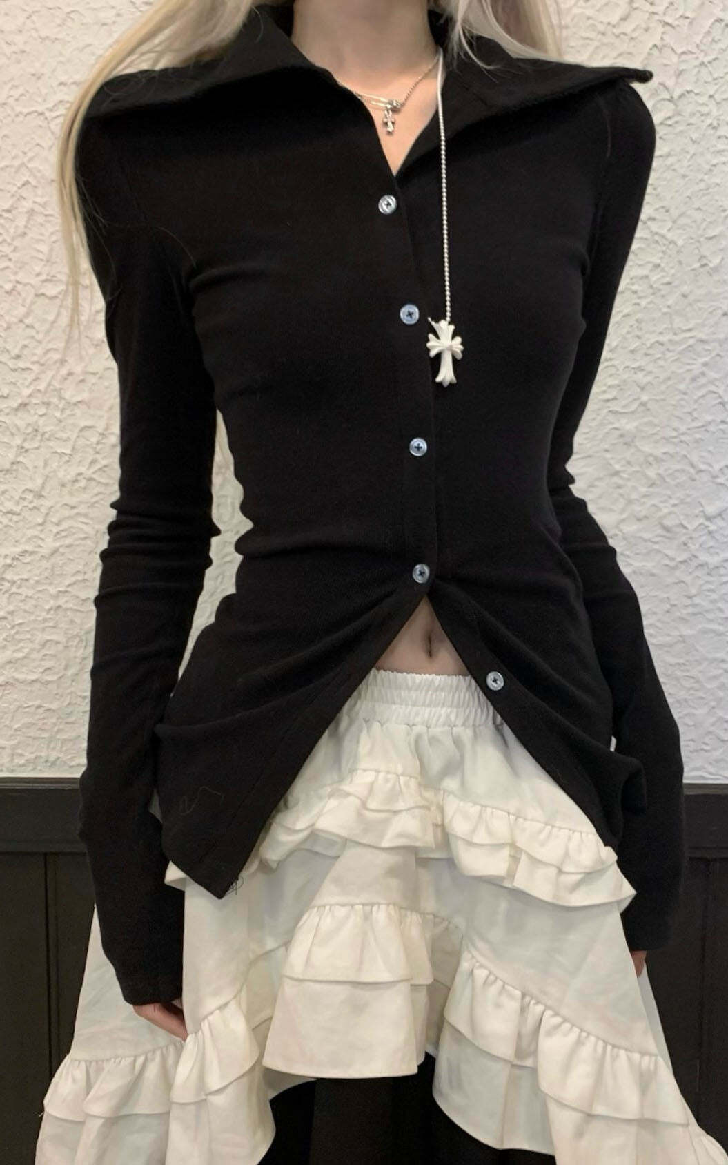 Rase Le Sol Fitted Black Knit Cardigan: Perfect for Your Winter Fits