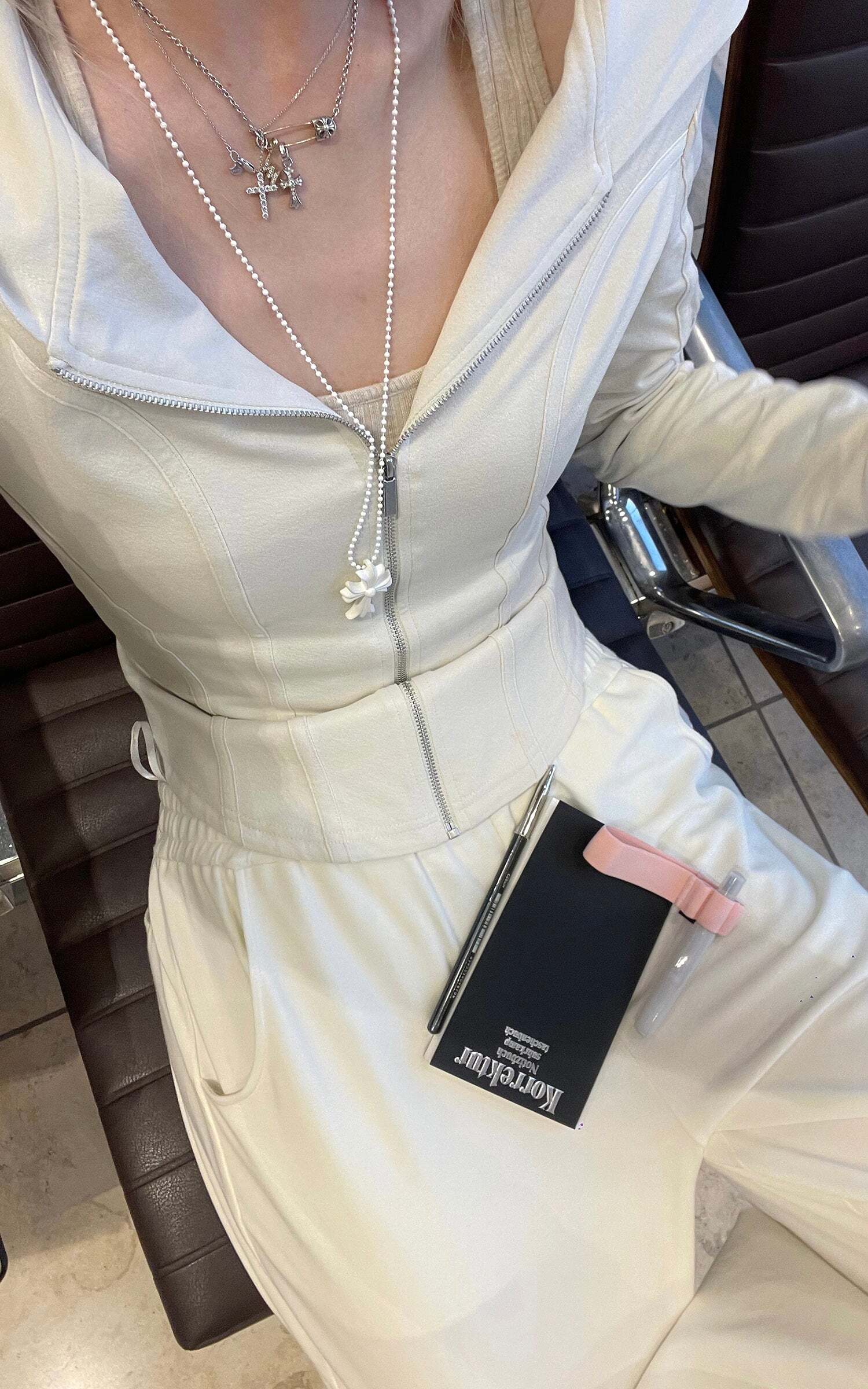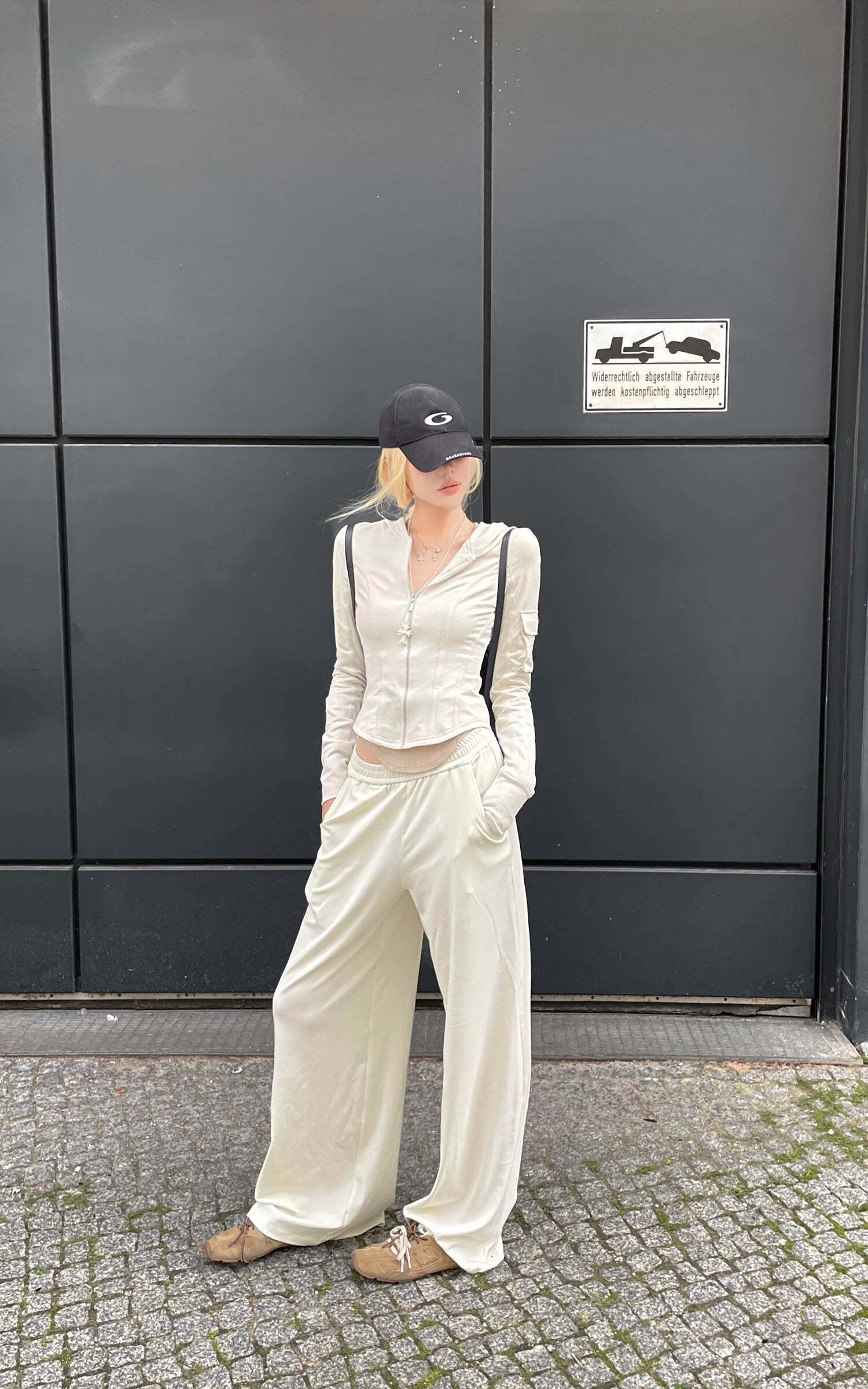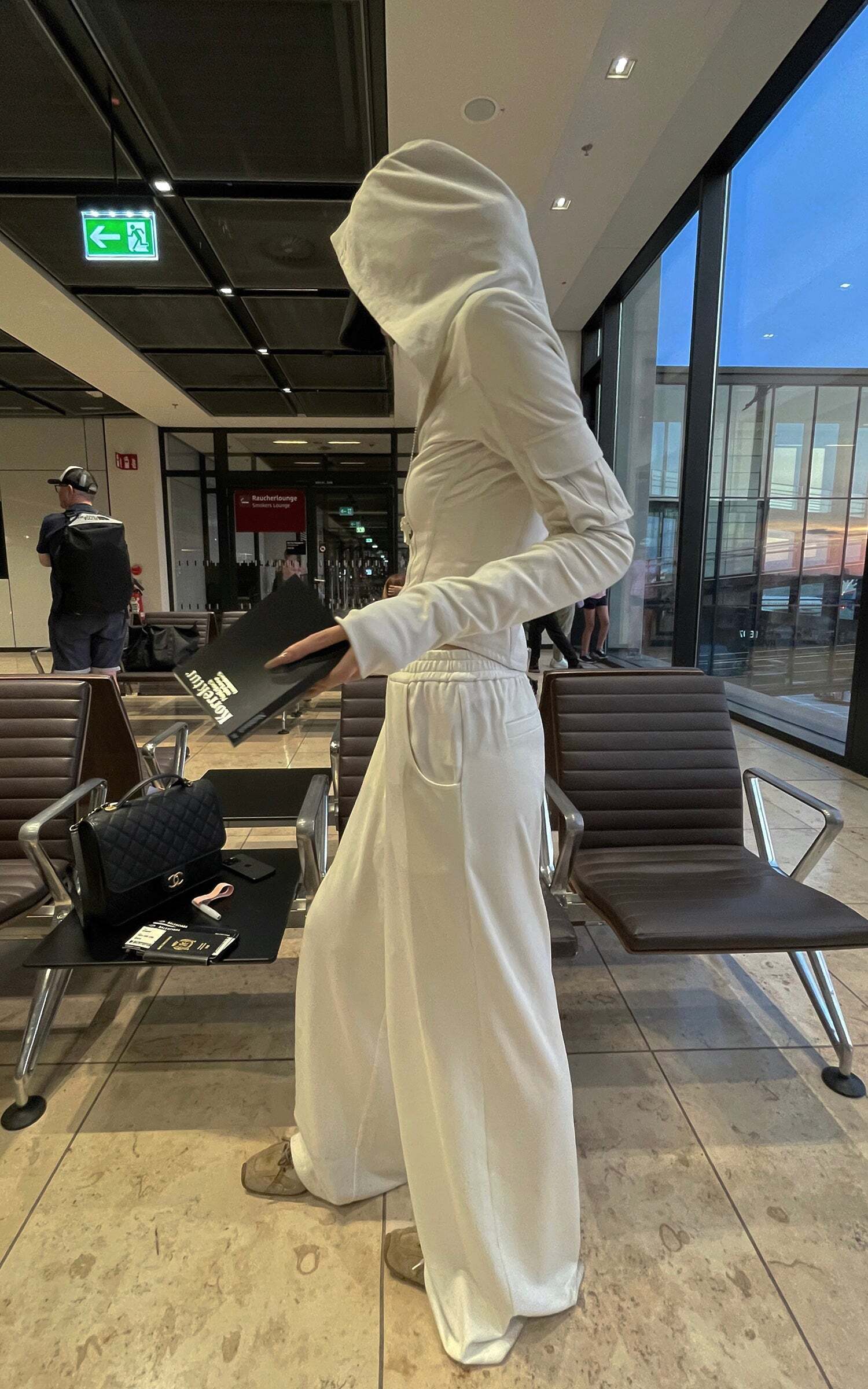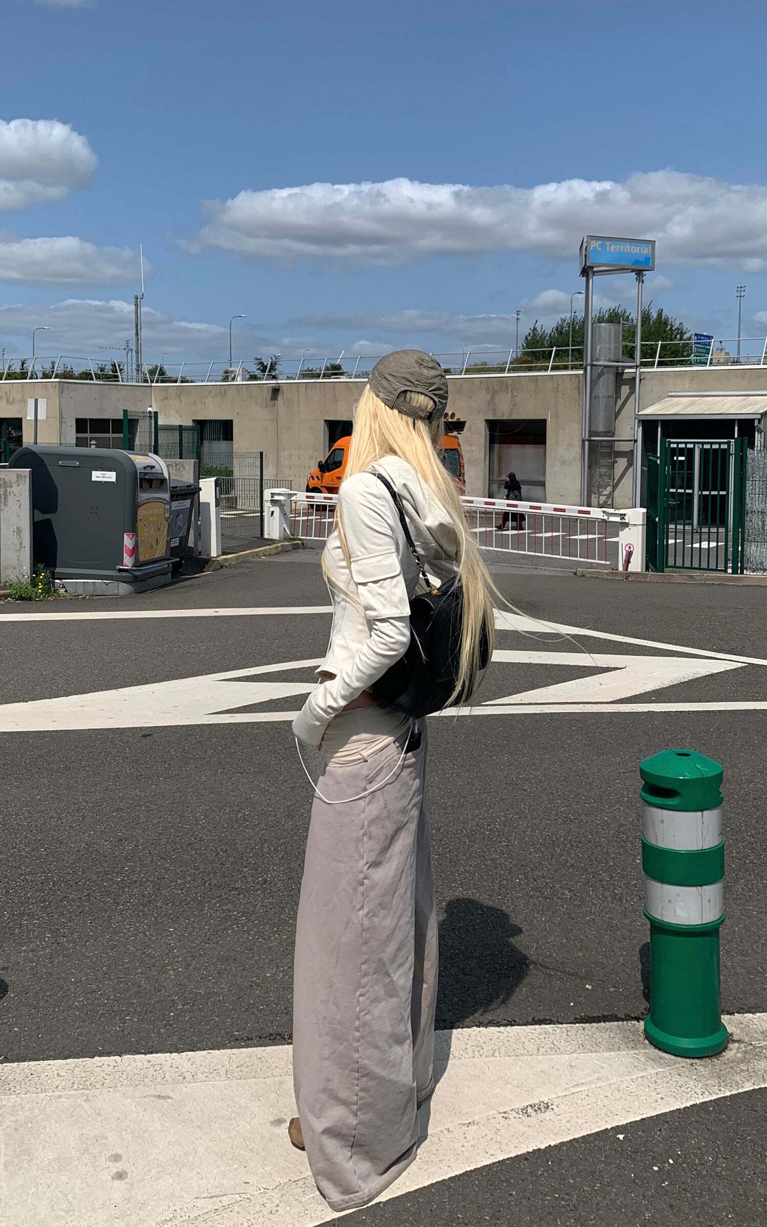 This jacket contours the body with clean, architectural lines, its fitted waist creating a stark yet fluid silhouette. Crafted from a dense yet flexible fabric, it carries a sense of structure, while the metal zipper and sleeve pocket detail echo utility and strength. The hood closes in as a shield from the world, while the open zip breathes freedom and release. A garment for both solitude and movement—equally at home on the road or beneath the night’s silence.