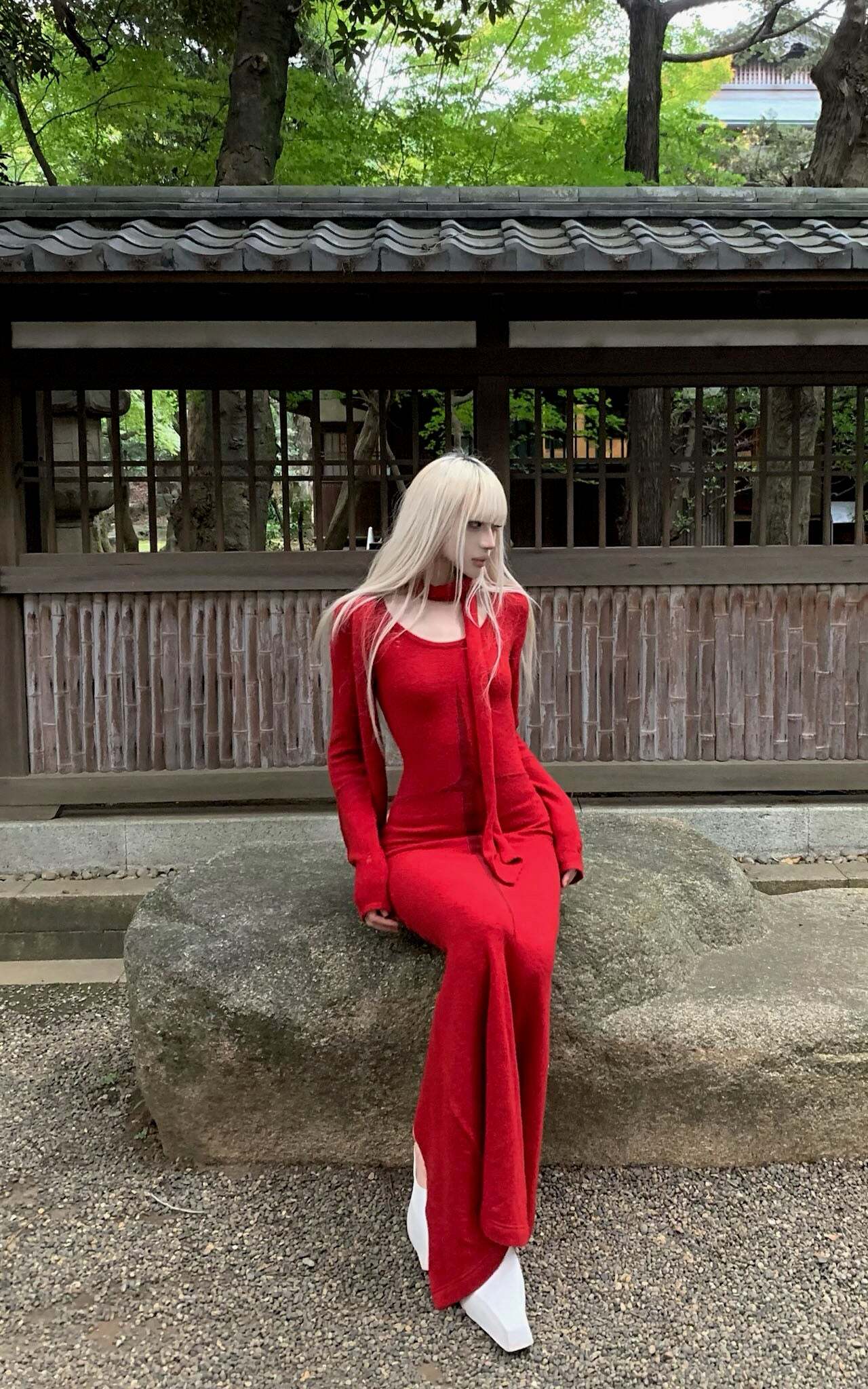 This fitted knit dress effortlessly combines sophistication with simplicity. Designed to contour the body, it highlights the natural curves while maintaining an elegant, streamlined silhouette. The high neckline and sleeveless cut provide a modern edge, while the accompanying scarf offers an extra touch of refinement. Perfect for any occasion, this dress can be styled to suit both casual and formal settings, adding timeless appeal to your wardrobe.