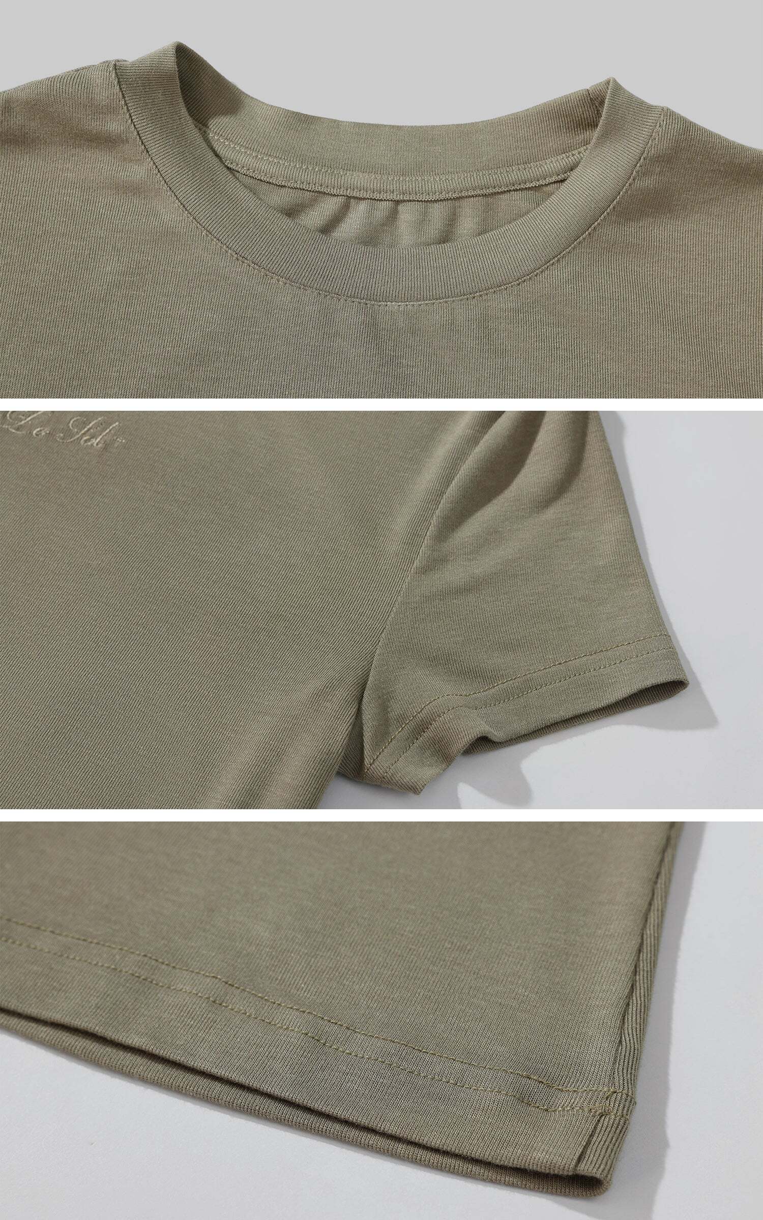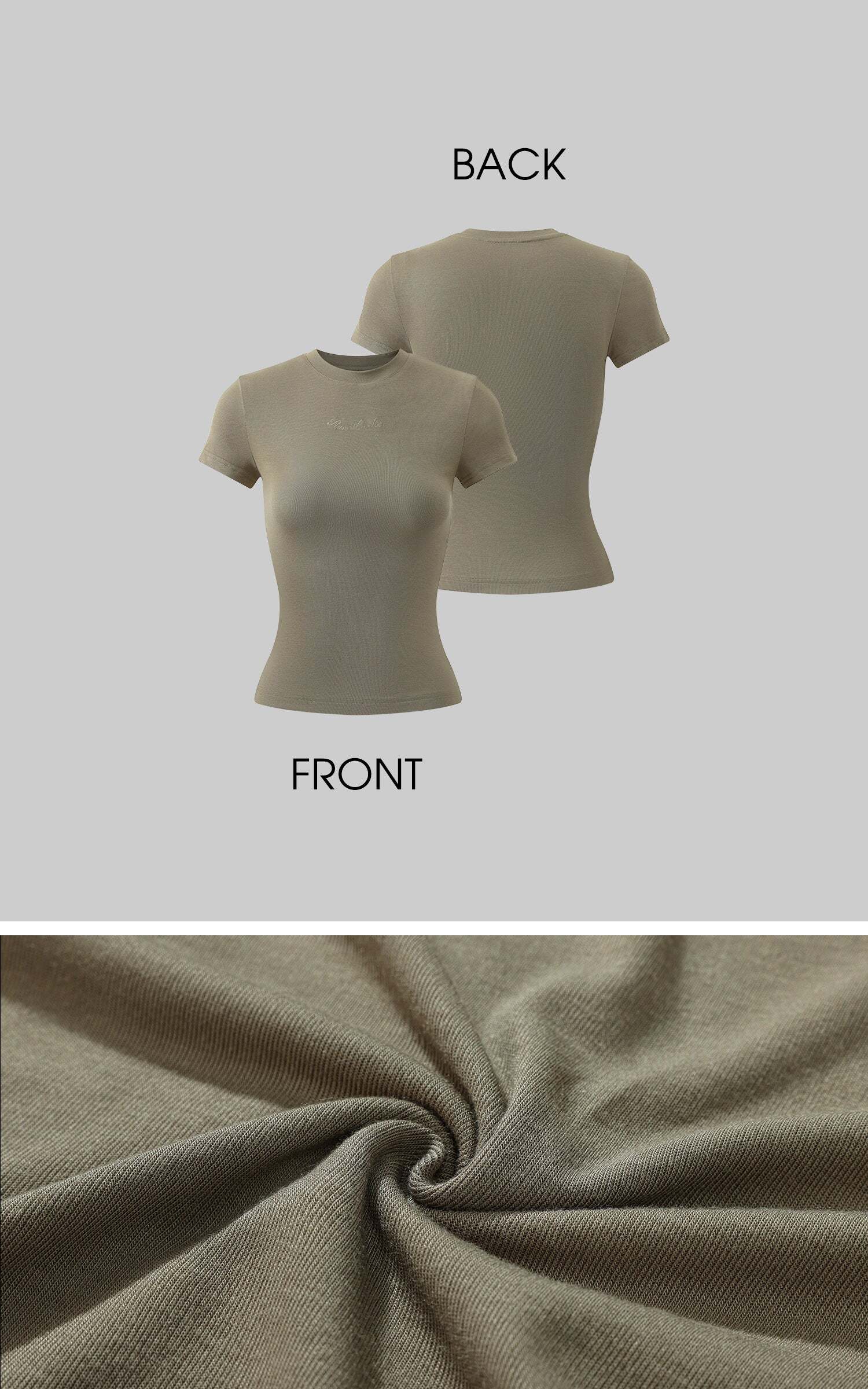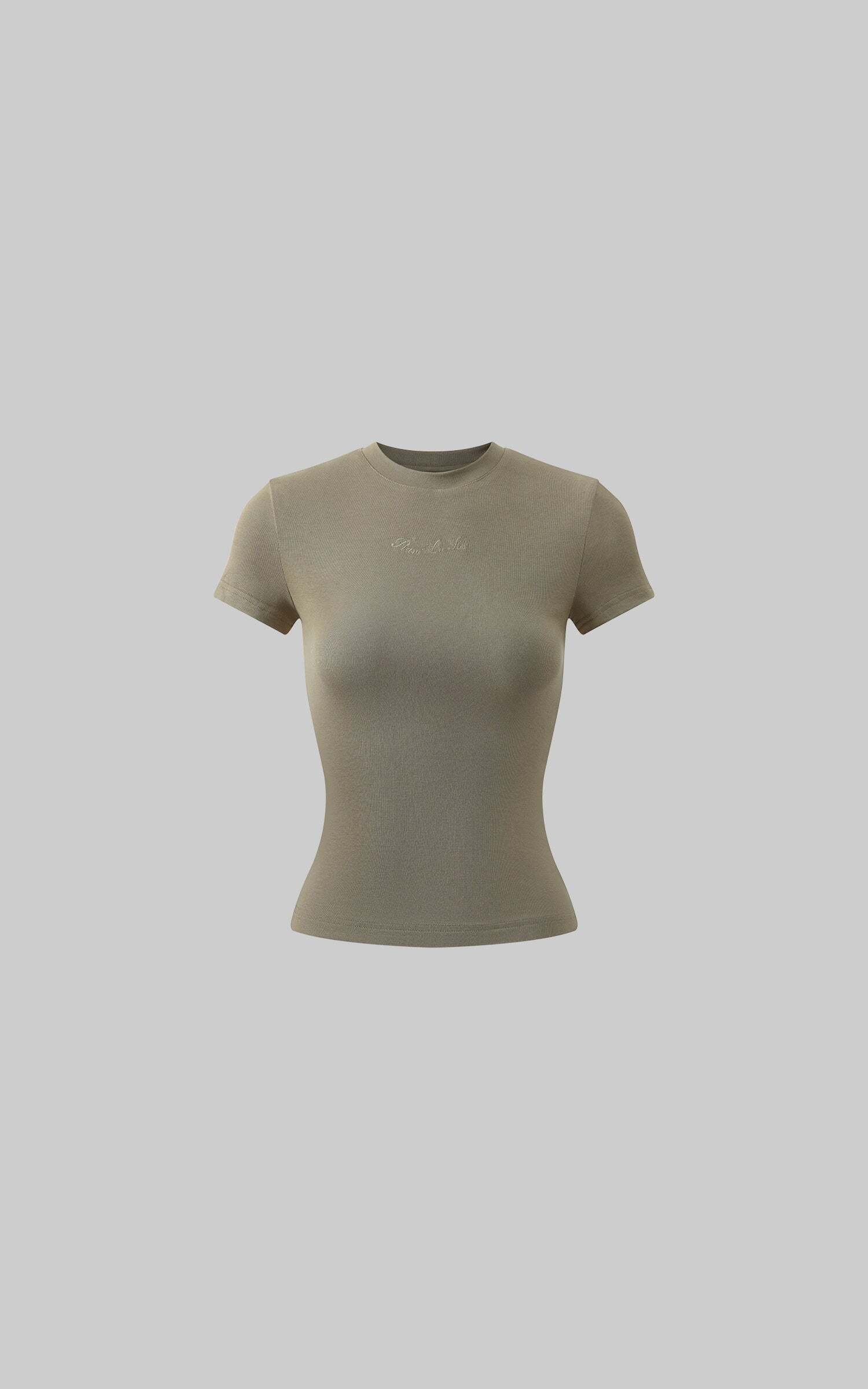 A short sleeve tee that channels silent strength. Crafted from fine, resilient ribbed fabric, it clings lightly to the form, tracing the purest lines of the body. A muted embroidery rests at the chest, like a vow whispered under breath. The clean cut of the crew neck and sleeves offers unrestrained ease. The subtly cinched hem allows it to stand alone or serve as a foundational layer. Worn when the occasion demands a sharp, composed presence.