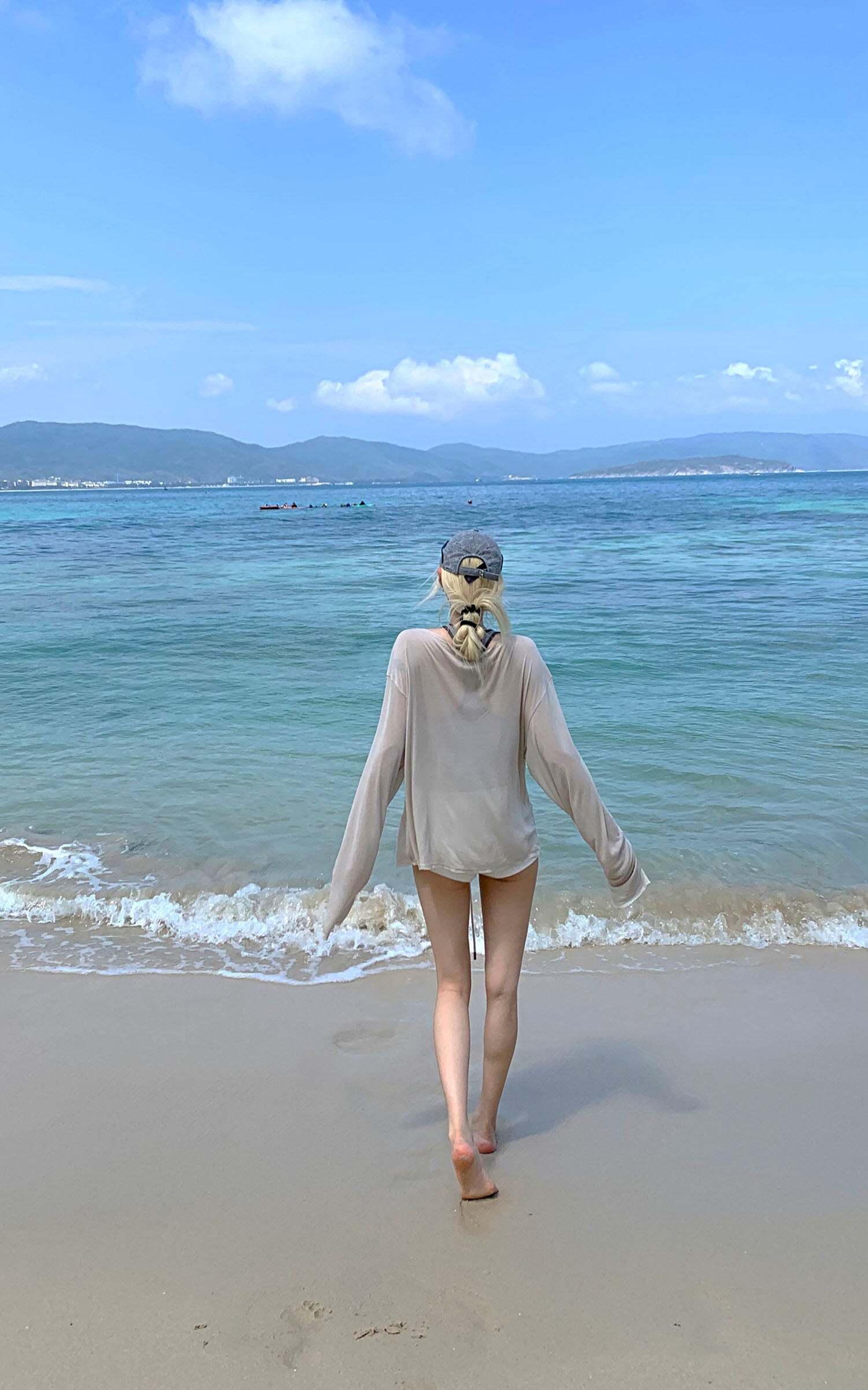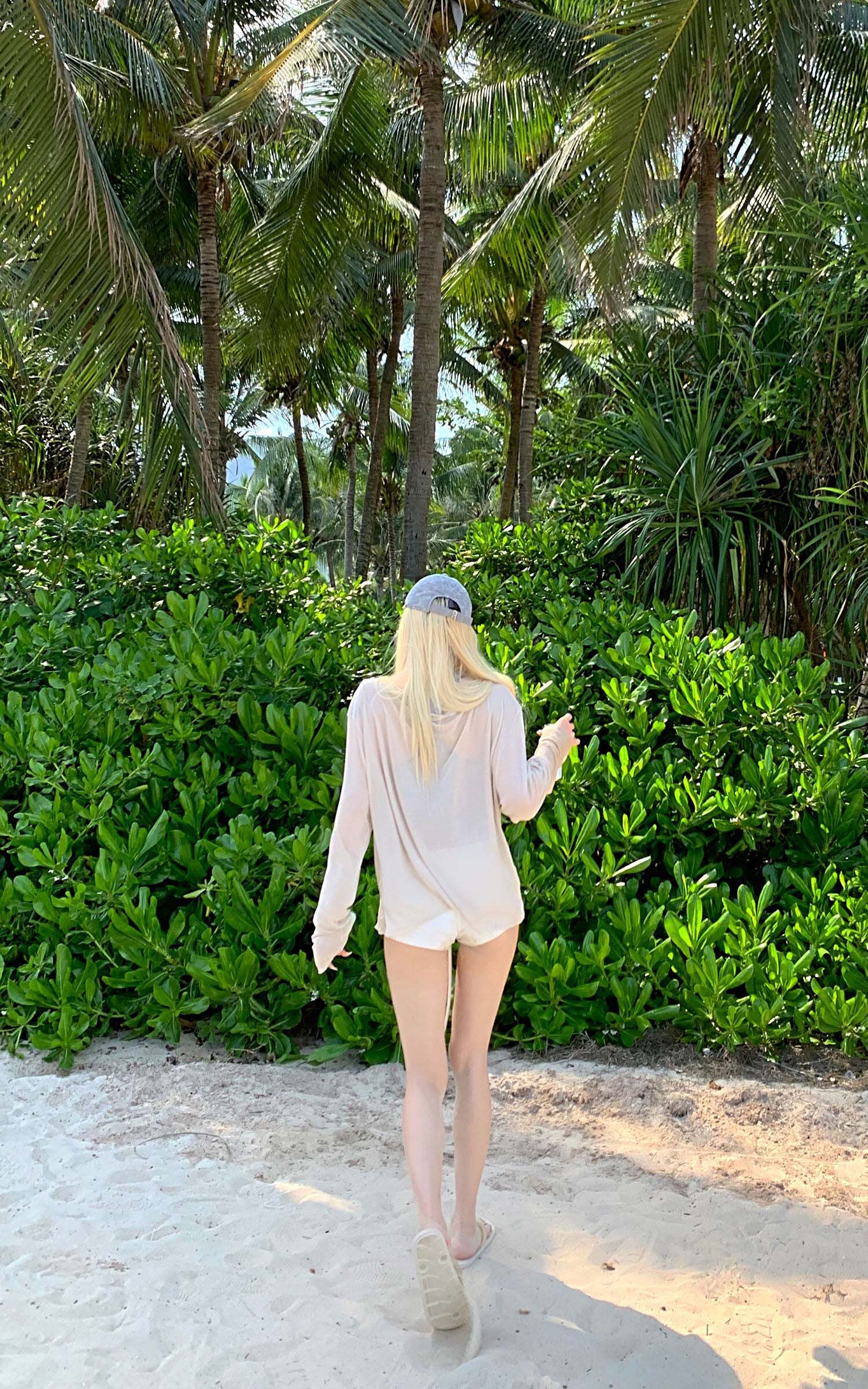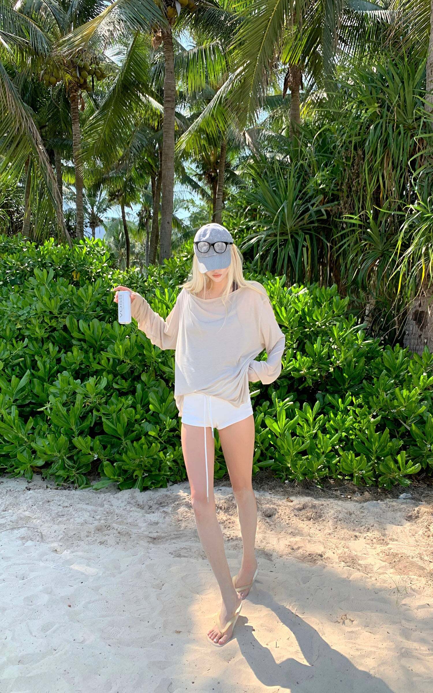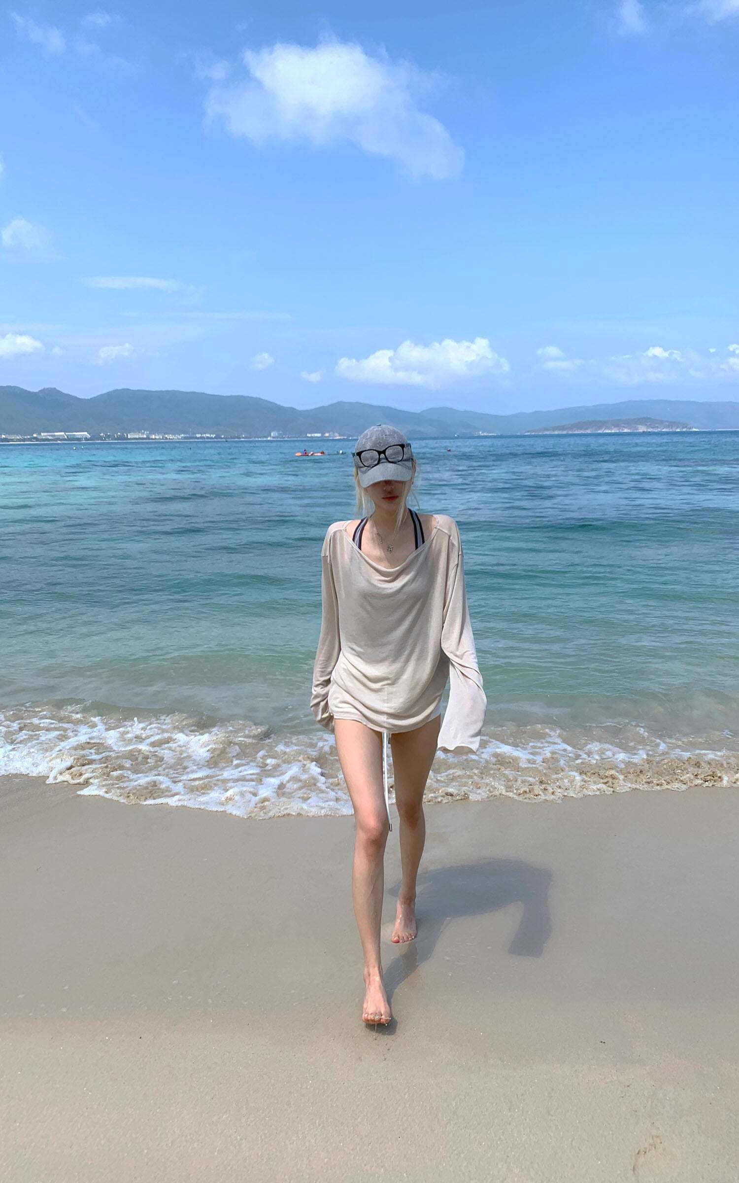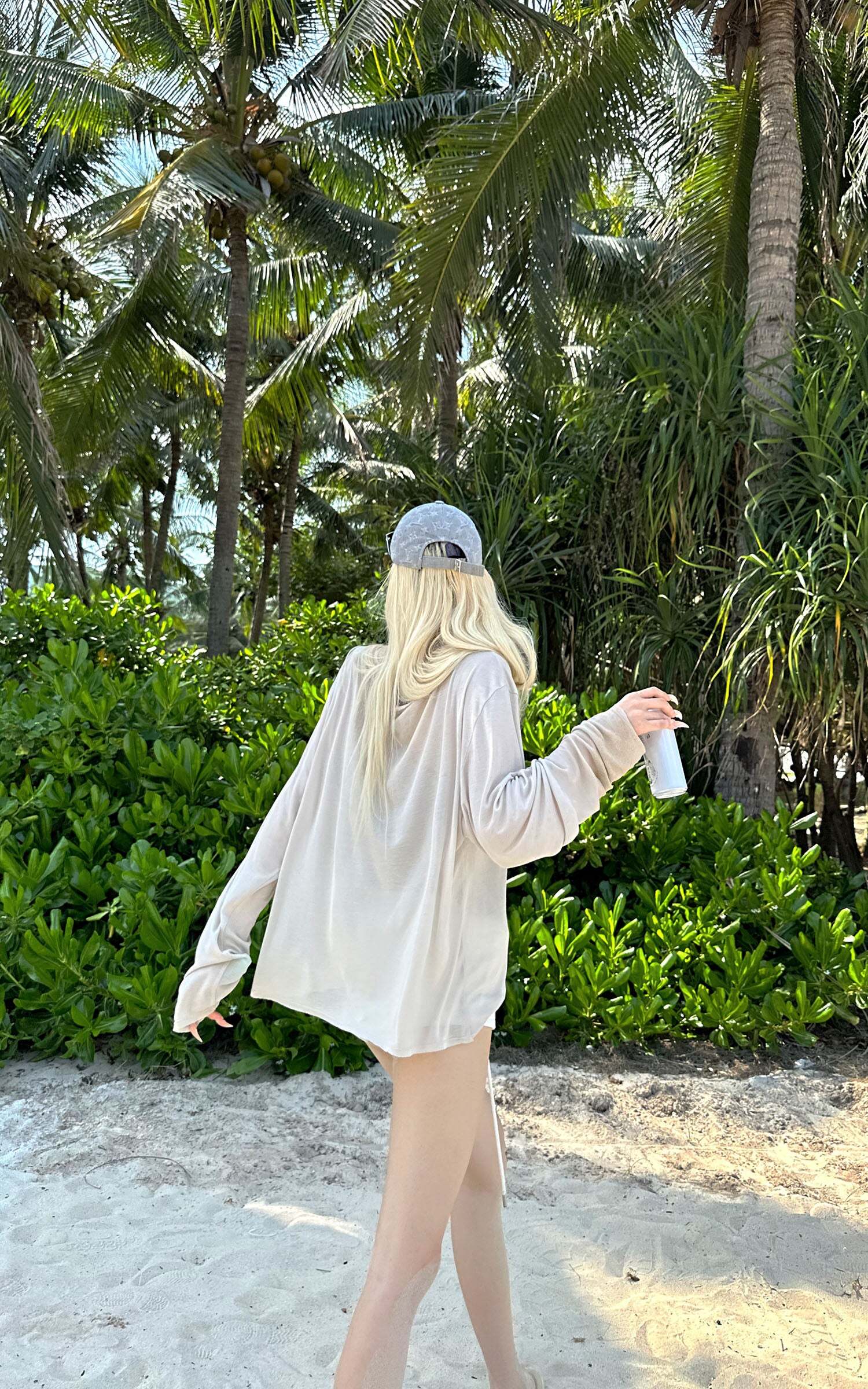 This loose-knit top reads like a quiet poem of softness and surrender. The semi-sheer off-white fabric clings to the body with featherlight grace, shifting gently with every breath—like a murmur just below the surface. Dropped shoulders and extended sleeves imbue the silhouette with deliberate dissonance, evoking a sense of delicate imbalance. Raw-edge finishing underscores its untouched, natural state—a quiet rebellion in texture. The material is supple and skin-friendly, ideal for layering or wearing alone to explore the interplay of form and light, purity and desire.