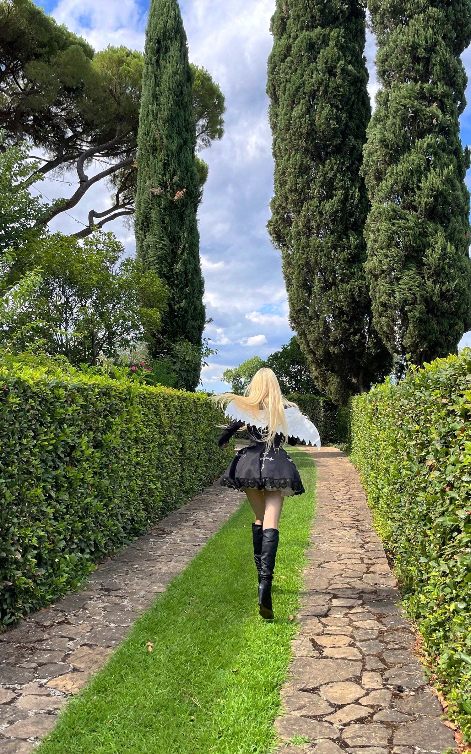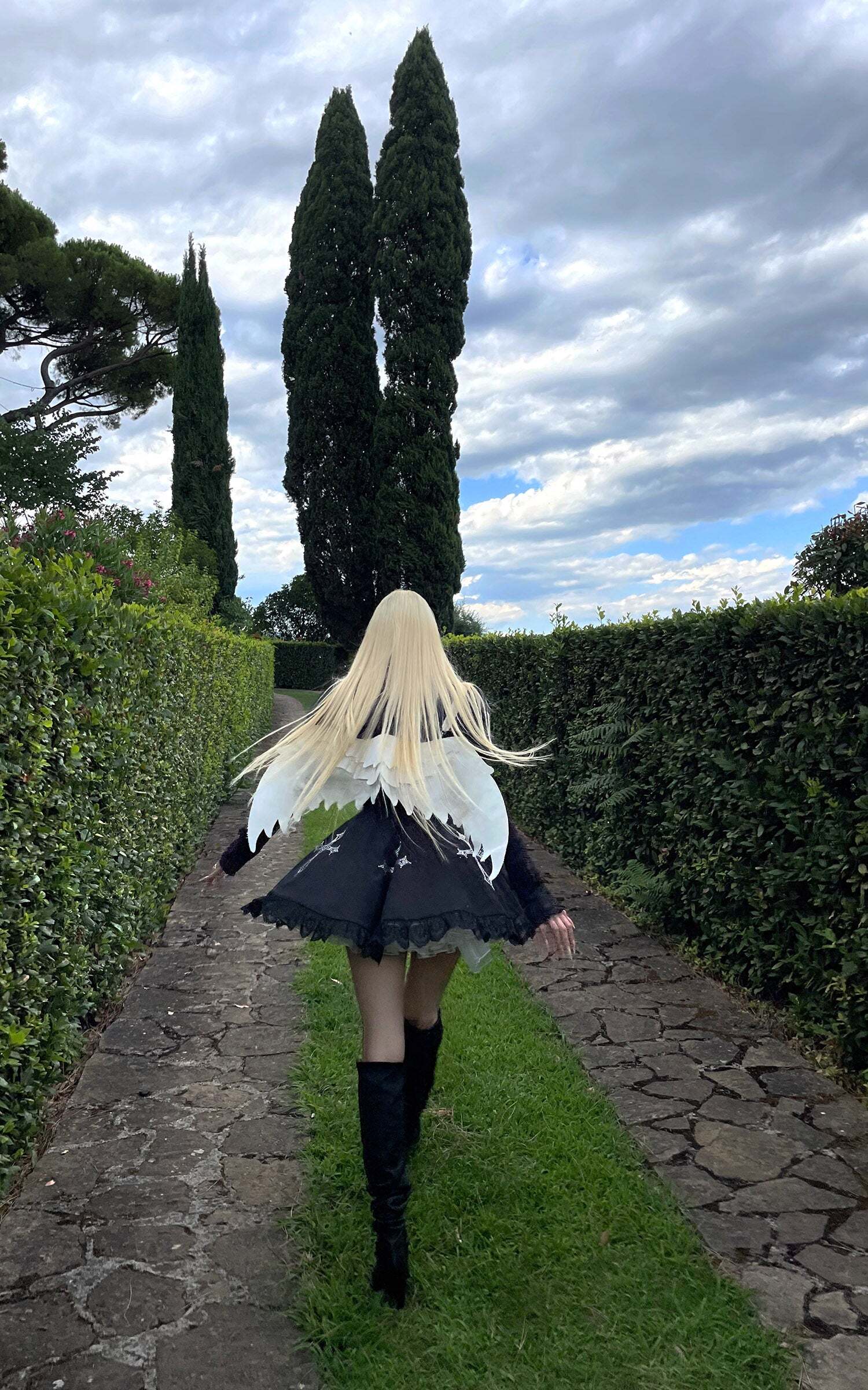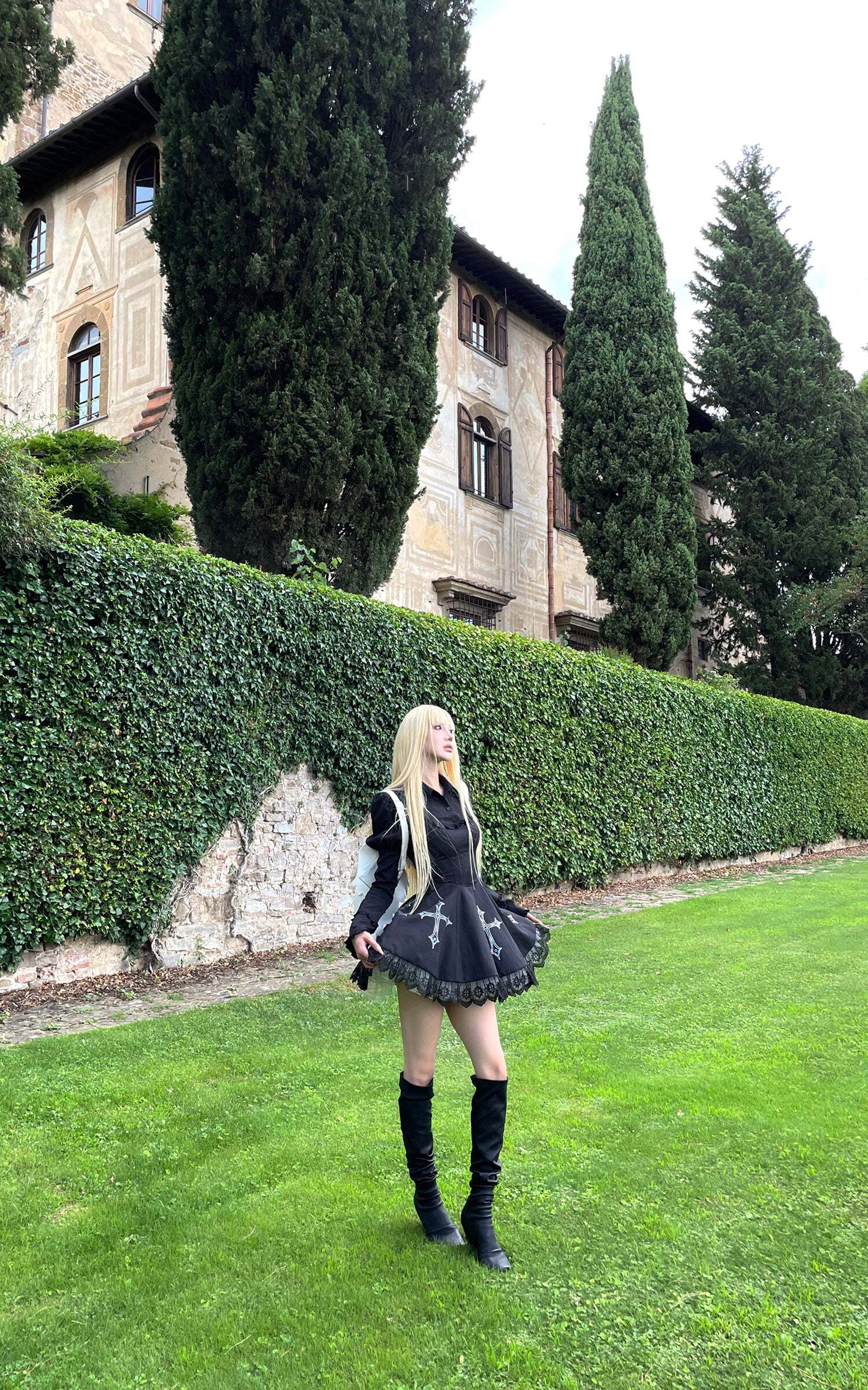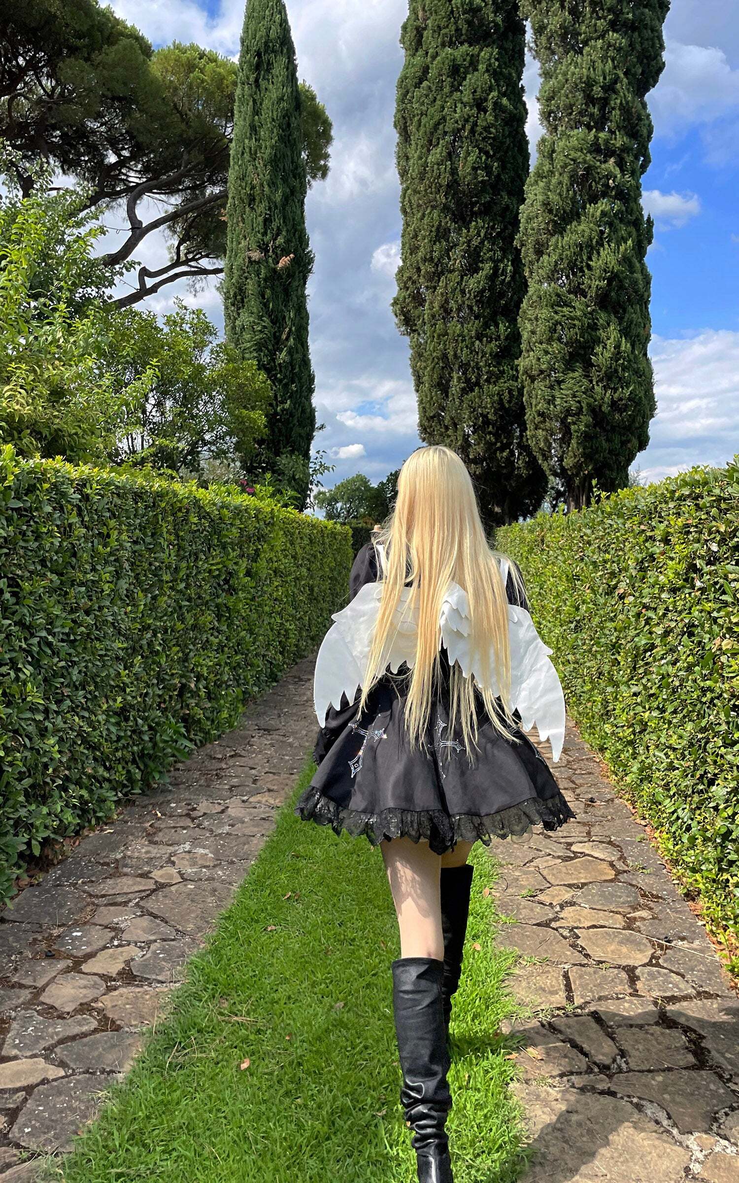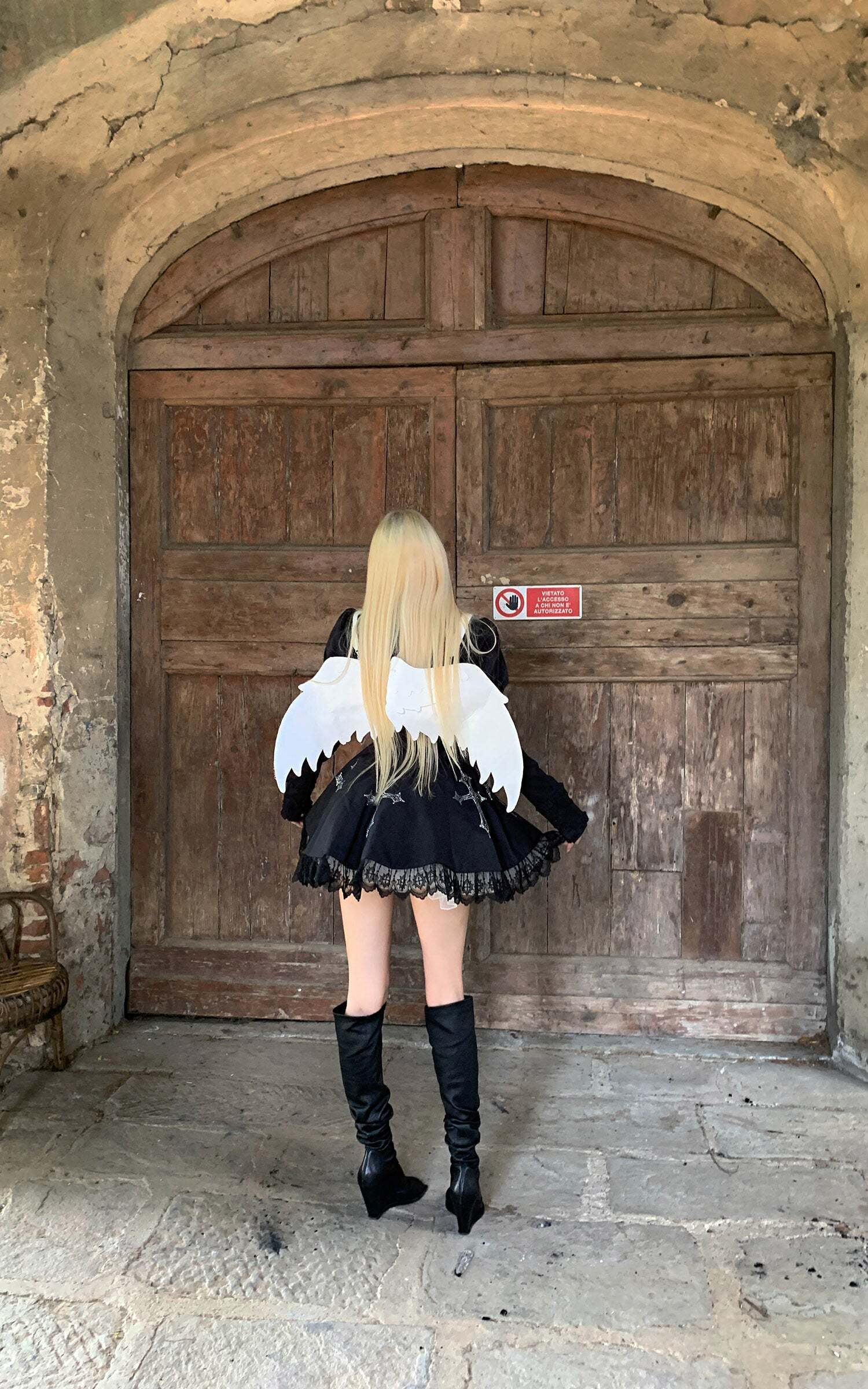 Gothic Dress with Cross Embroidery and Lace Hem – Vampire – Vampire Costume Aesthetic