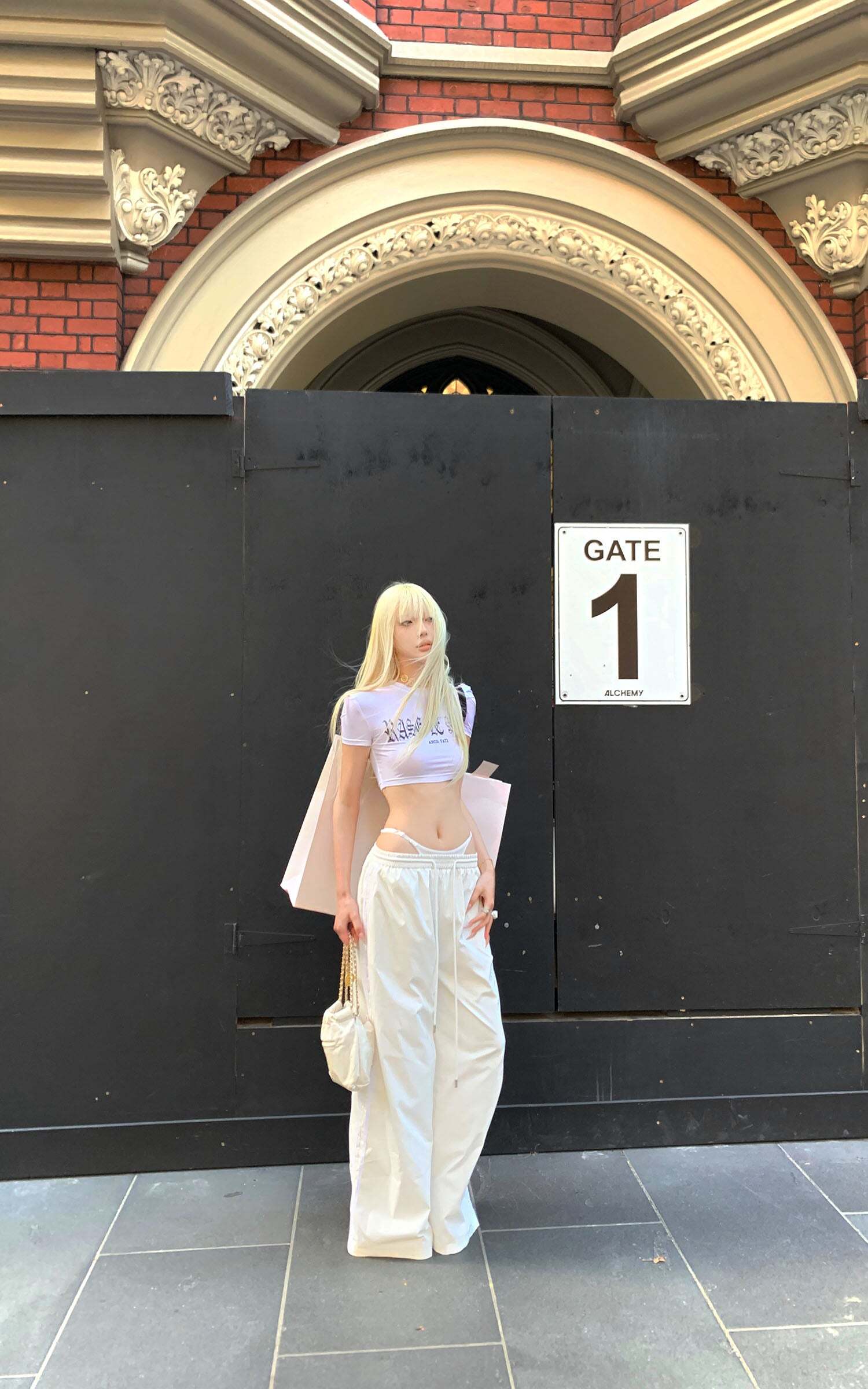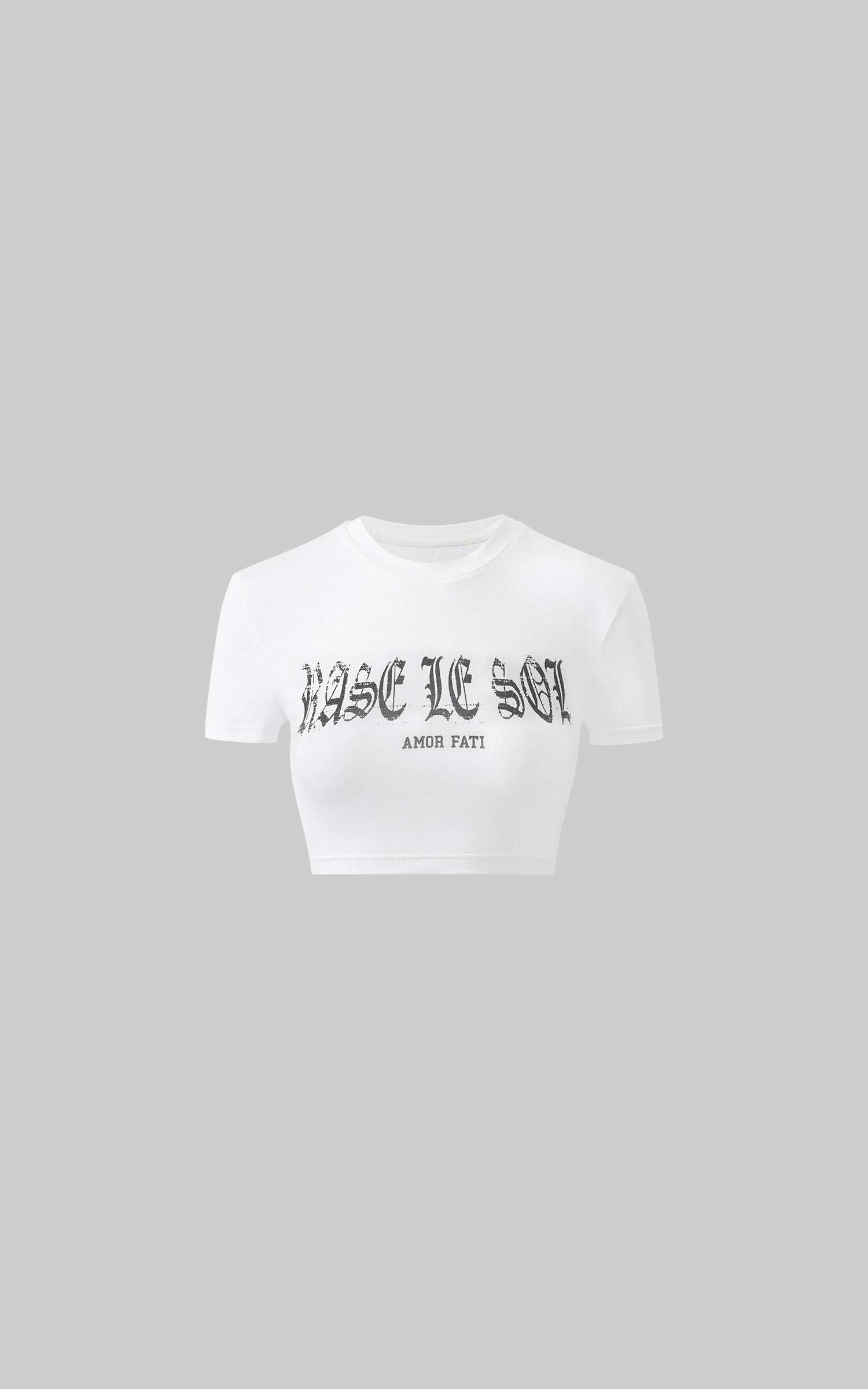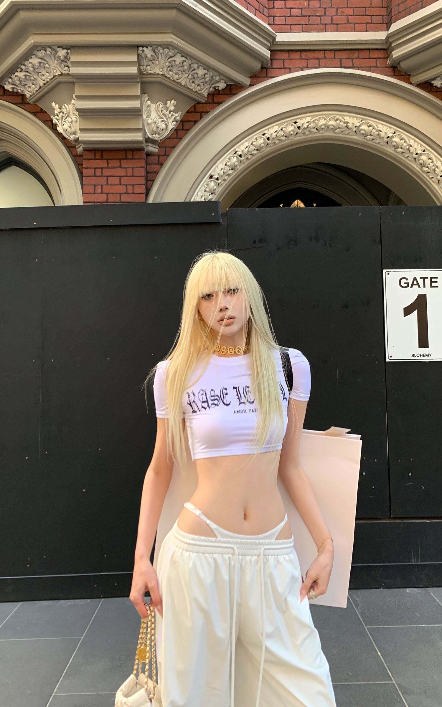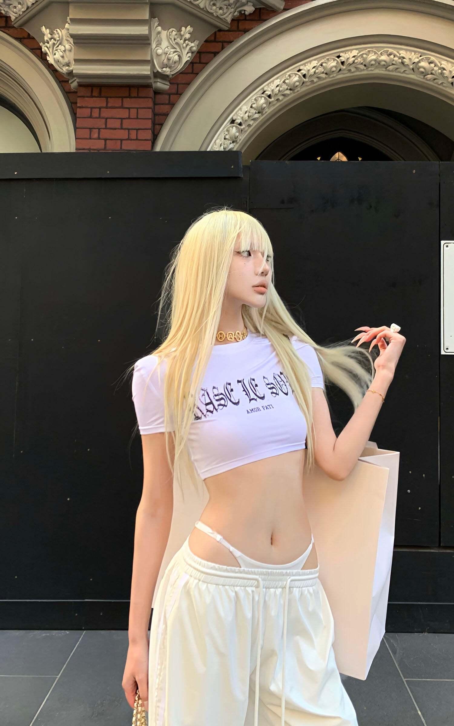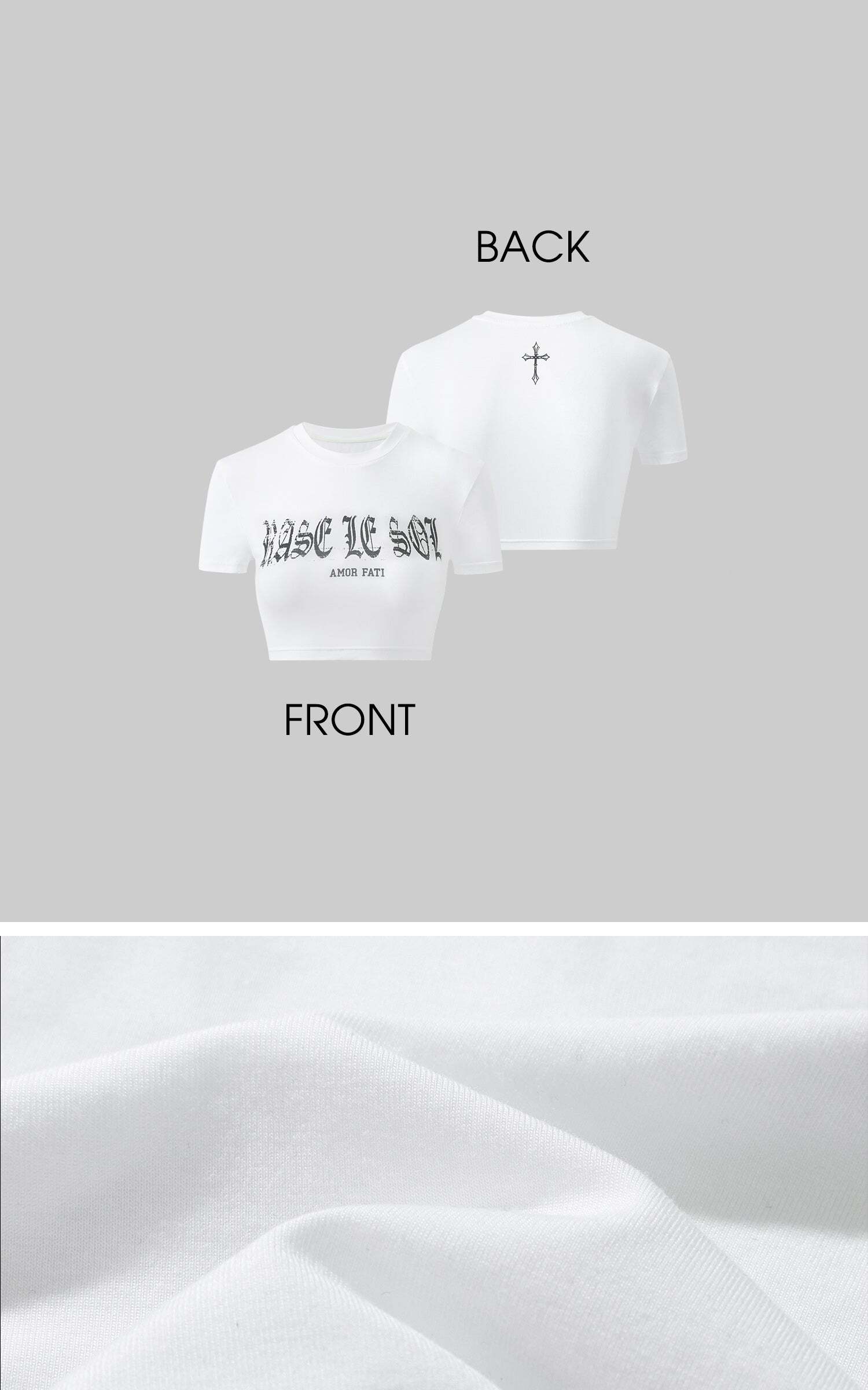 Gothic Print Cropped White Tee: Perfect for Your White Corset Halloween Costume