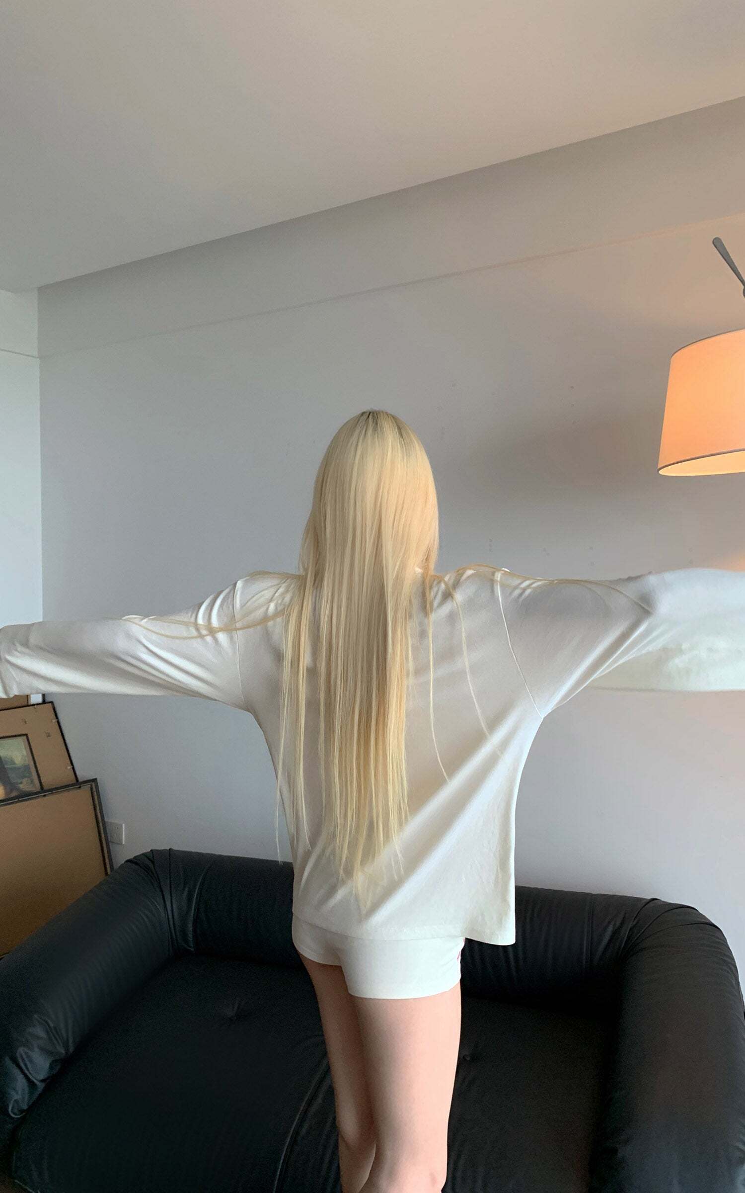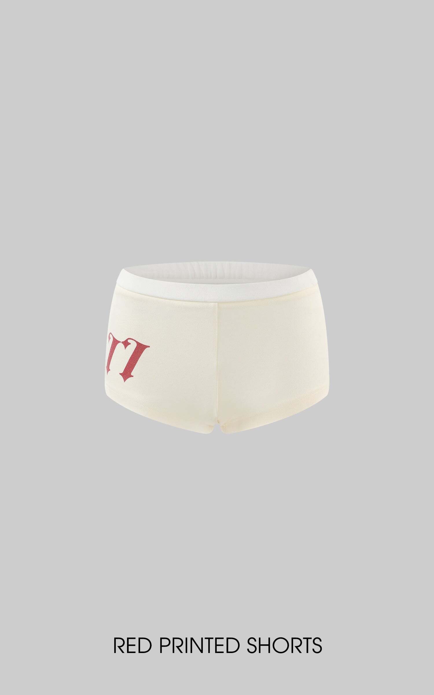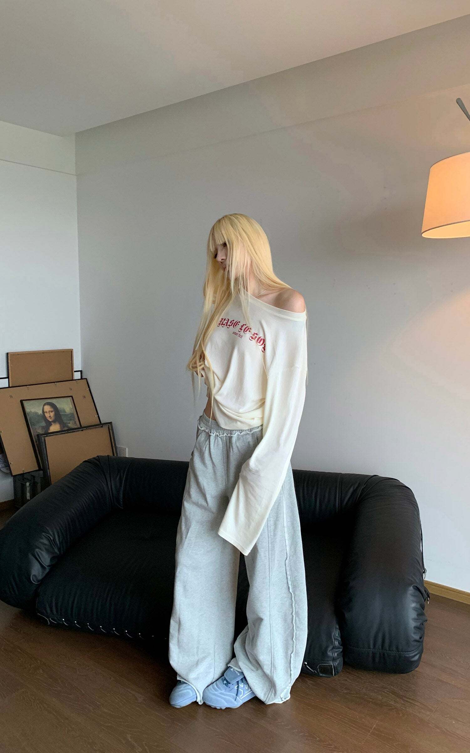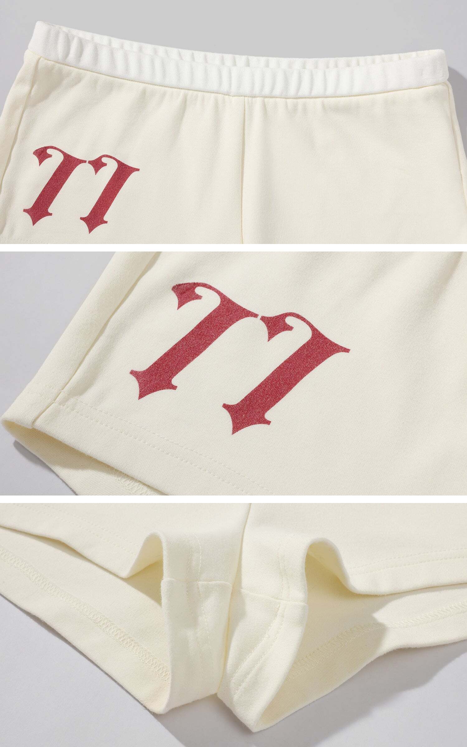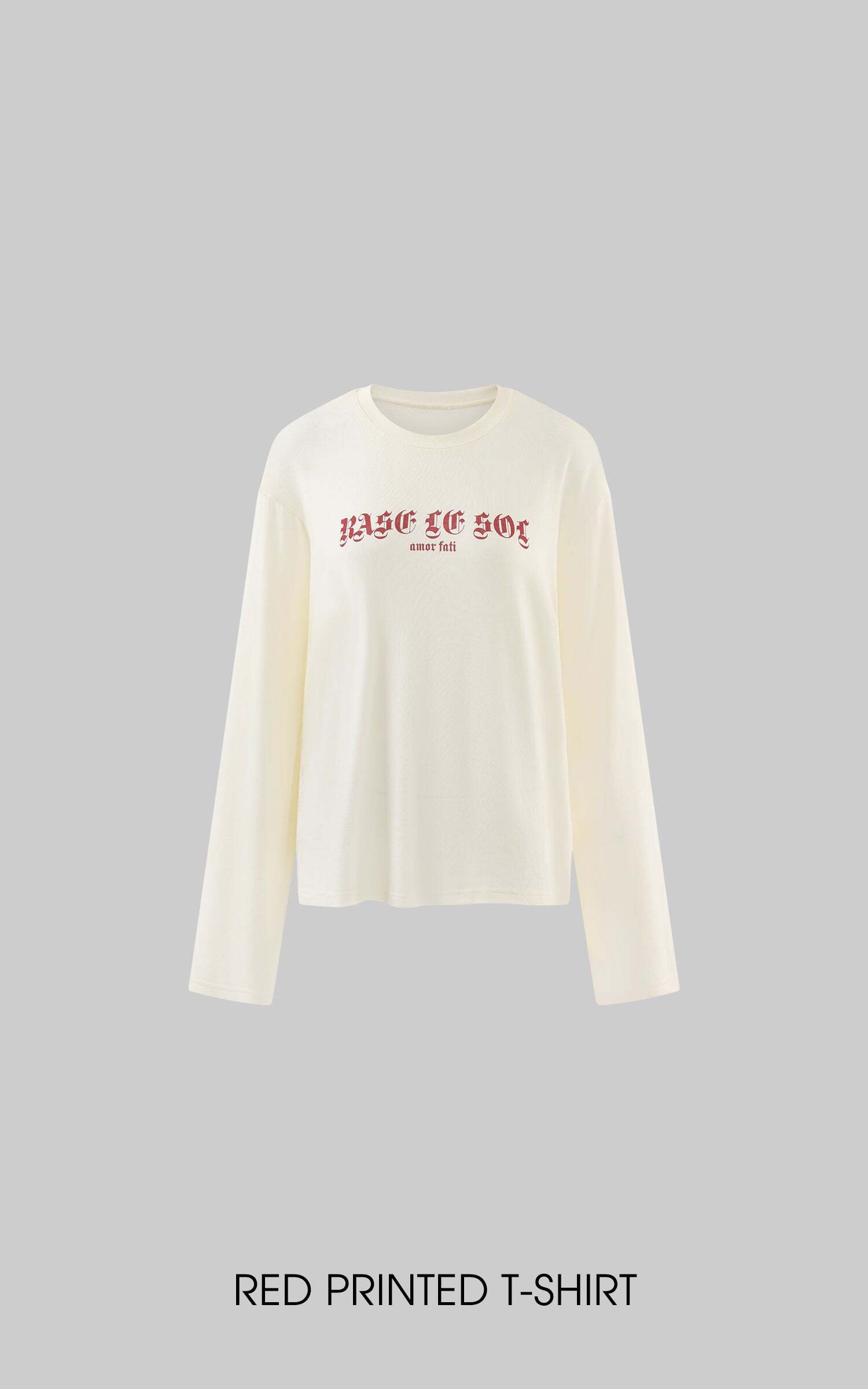 A soft long-sleeve tee with a loose silhouette and bold gothic lettering across the chest adds a hint of darkness to a relaxed mood. Paired with high-stretch knit shorts that contour the leg with subtle sensuality. The low-saturation tones and understated design evoke a quiet, solitary confidence. Wear as a set or separate for a layered, composed expression.
