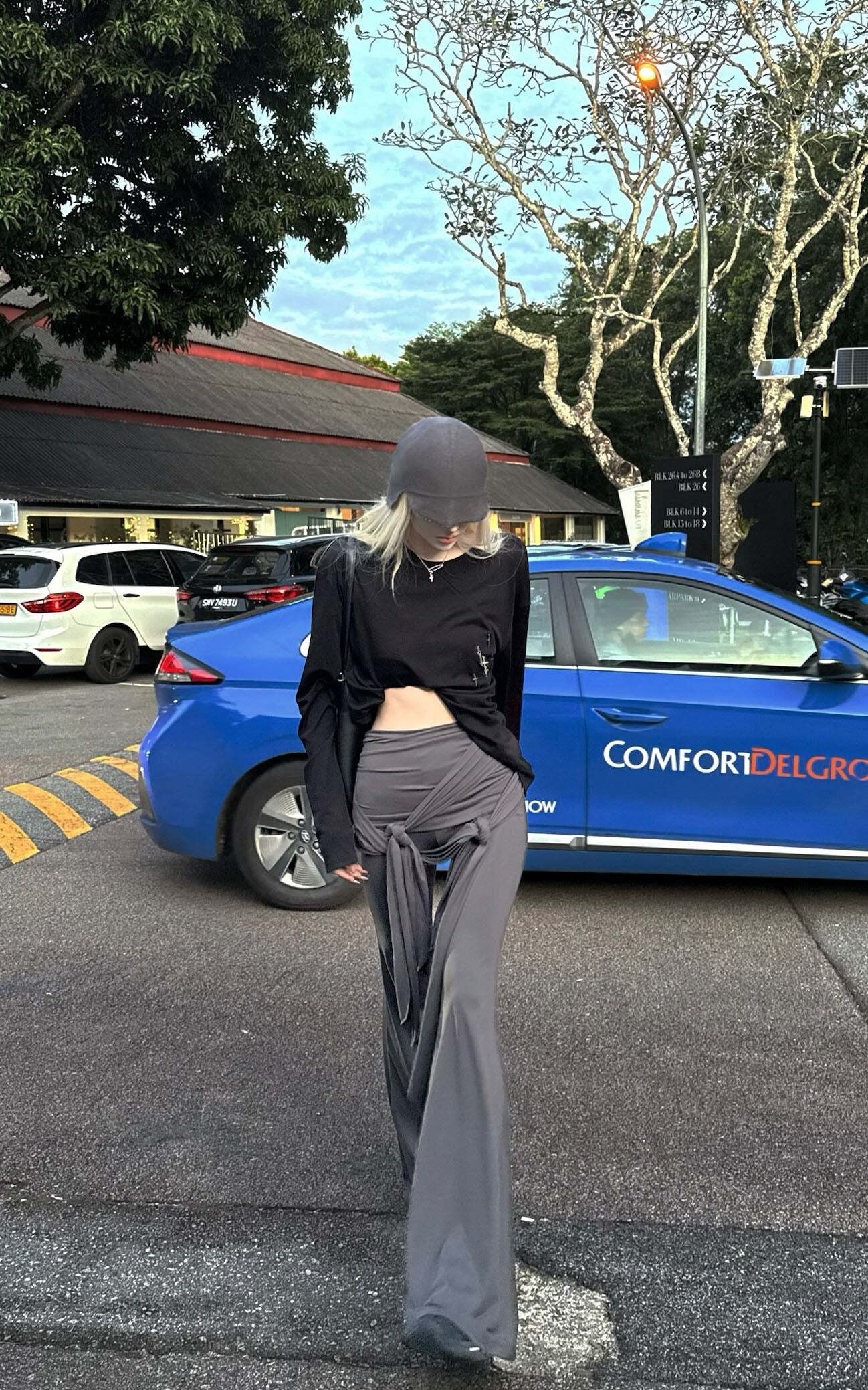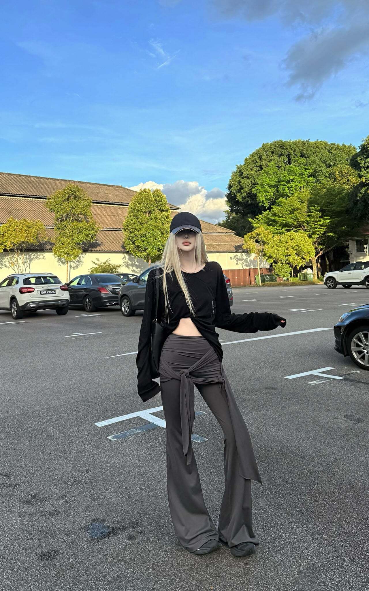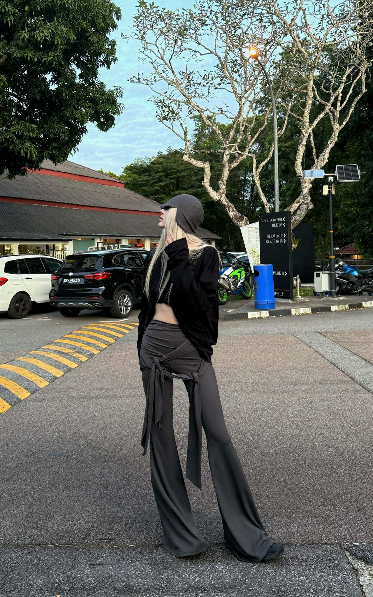 Gray Knot Detail High-waisted Flared Pants: Chic Outfit Inspo for Your Wardrobe