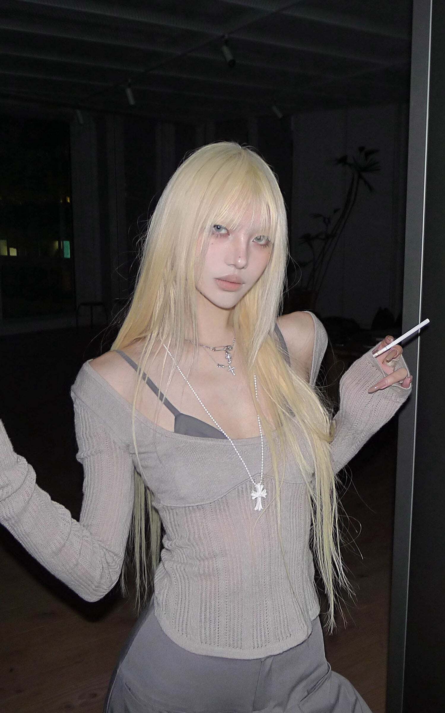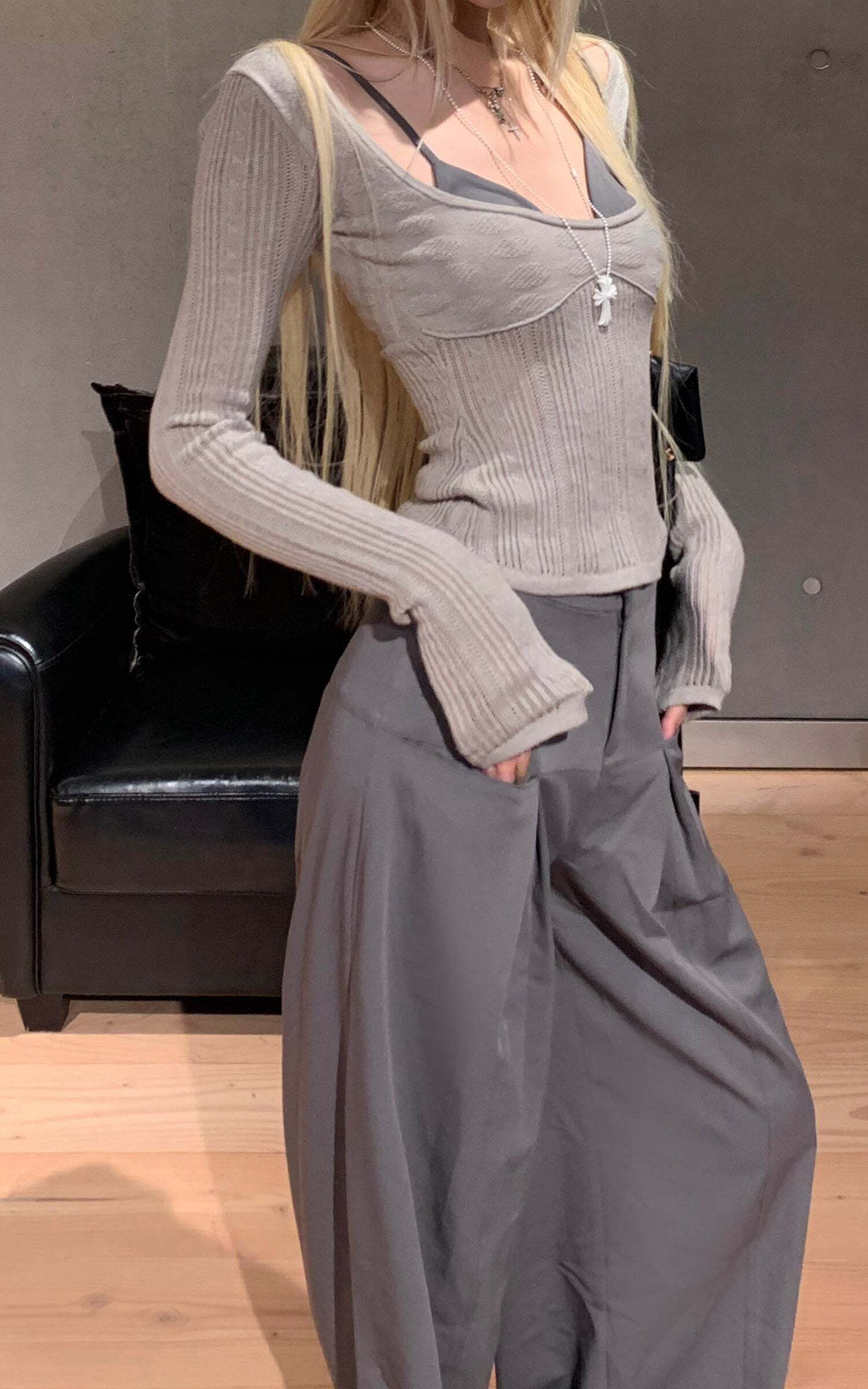 Grey Knit Sheer Long Sleeve Top with Minimalist Bra Layered Set High-quality product featuring outfit inspo, winter outfit, apres ski style and more. Modern design that fits the latest trends. Premium materials ensure durability and comfort. Order now for special offers! Product designed with attention to every detail. Suitable for all occasions and personal styles.