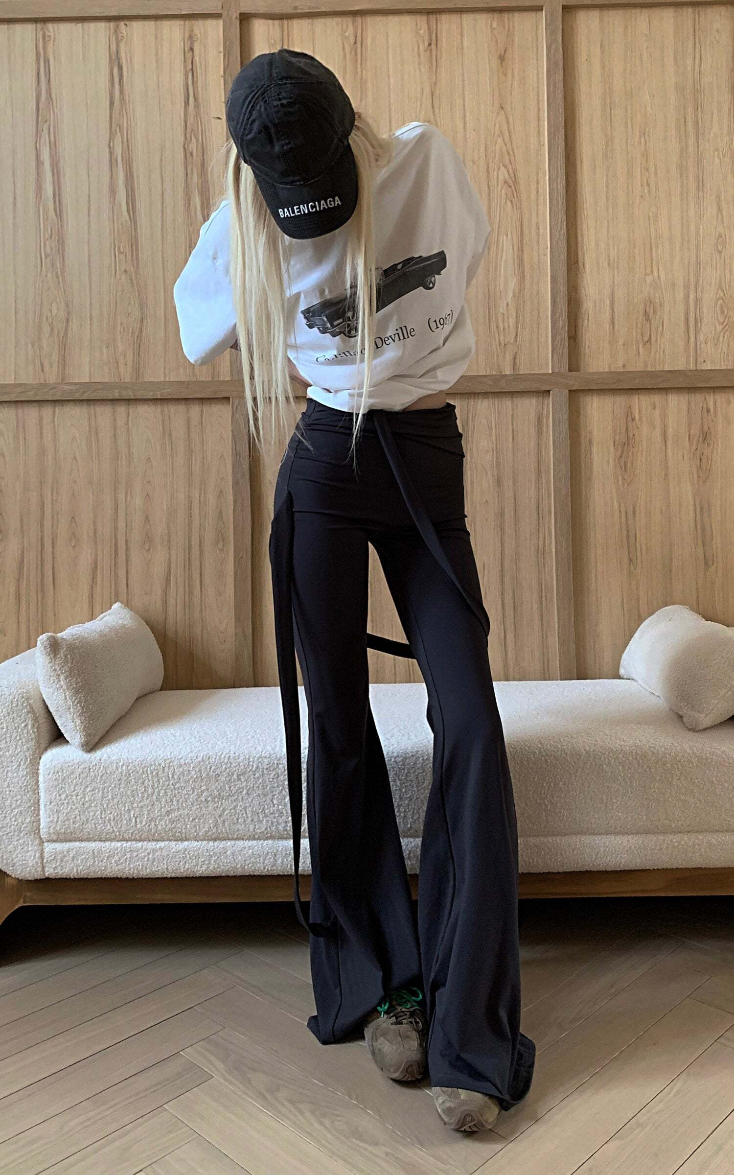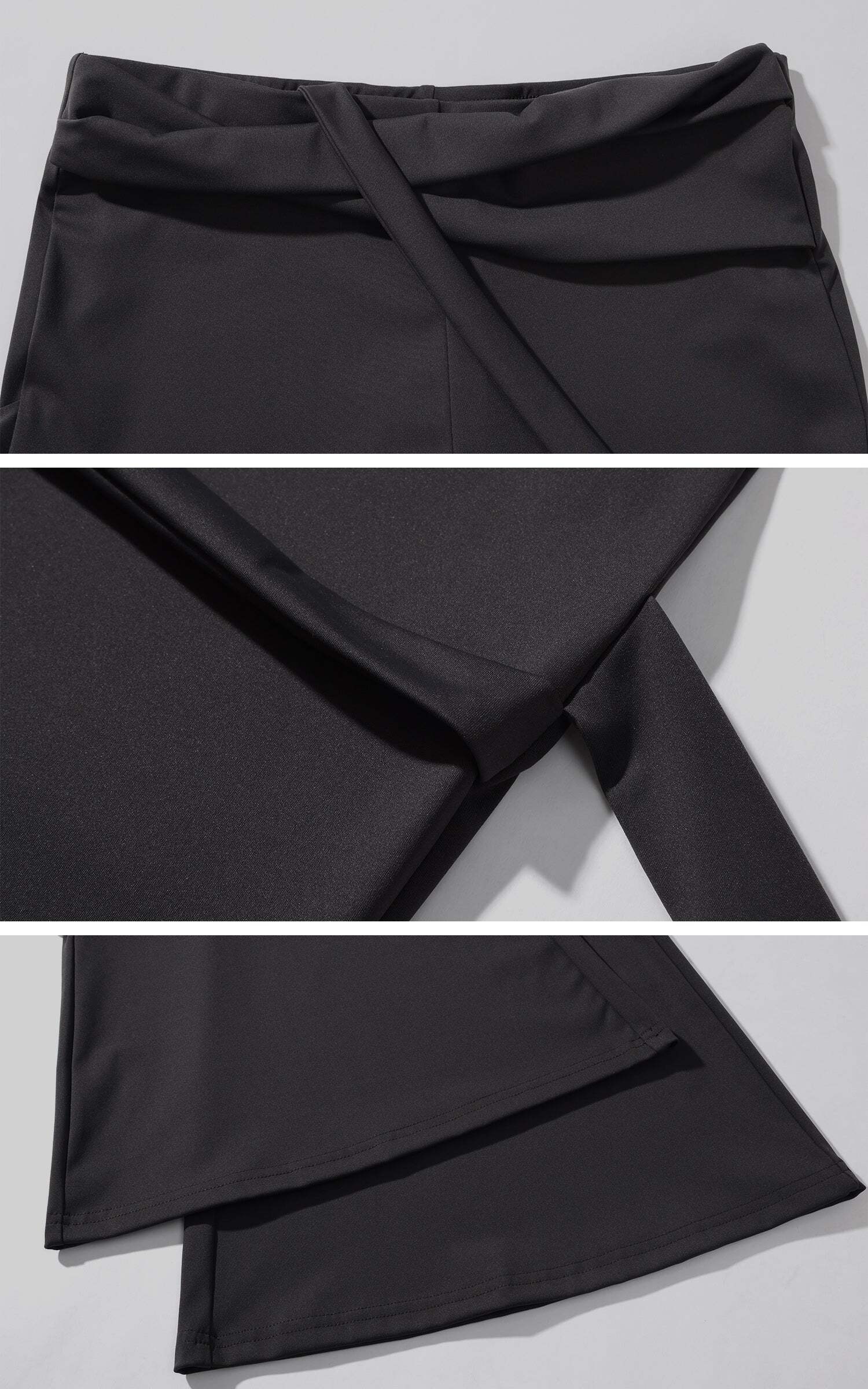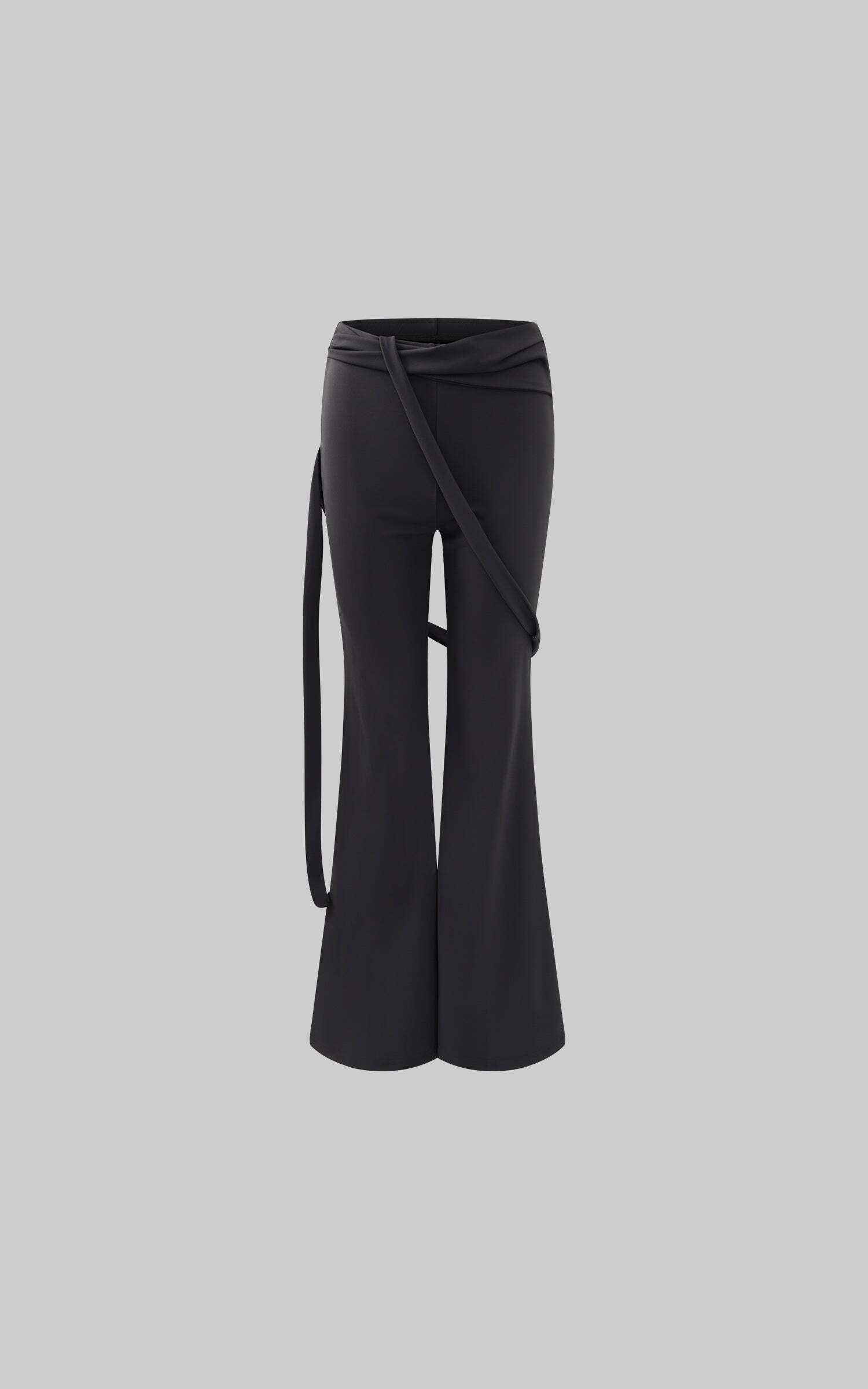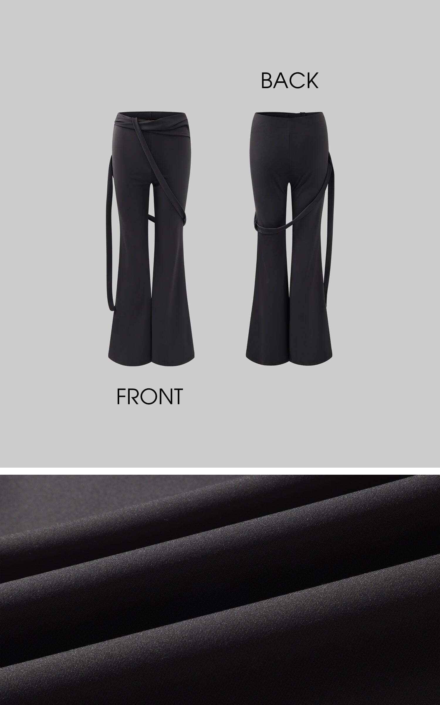High-waisted Stretch Flared Pants with Asymmetric Wrap Tie Detail – Outfit Inspo