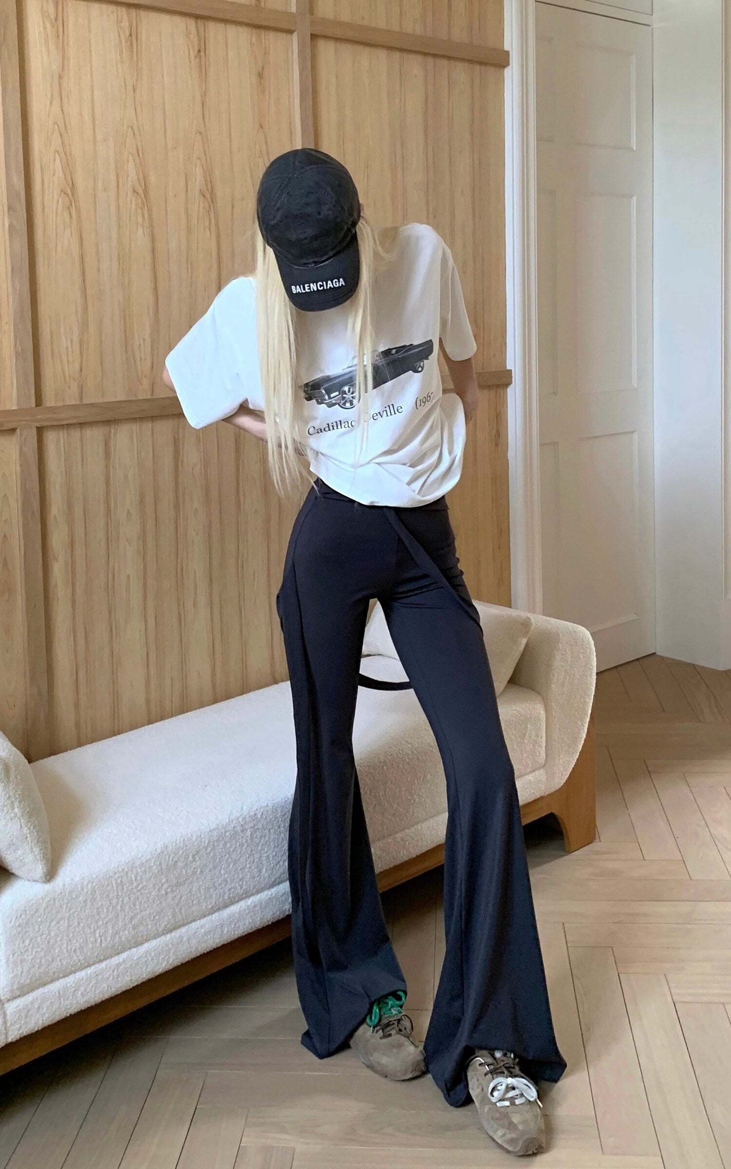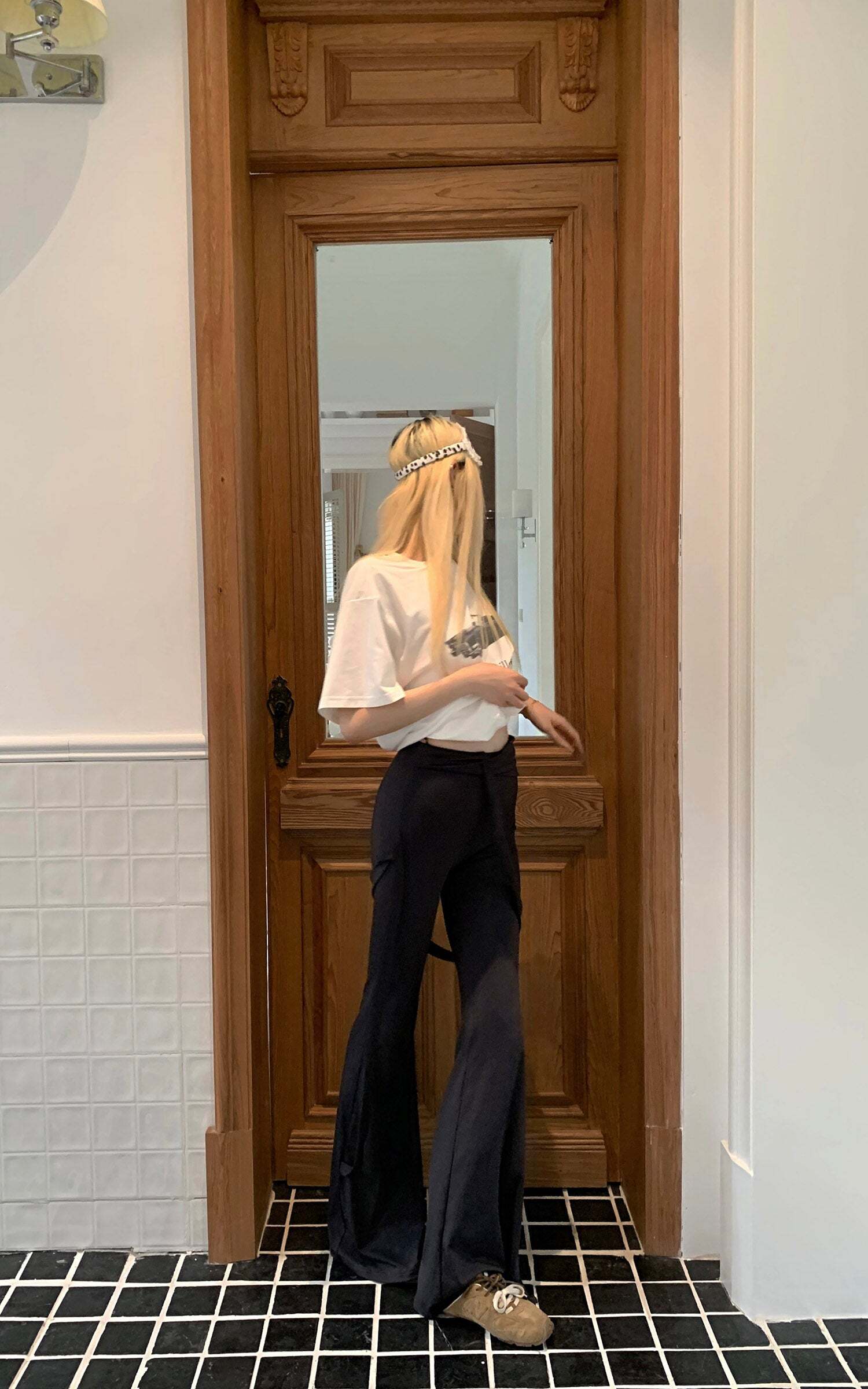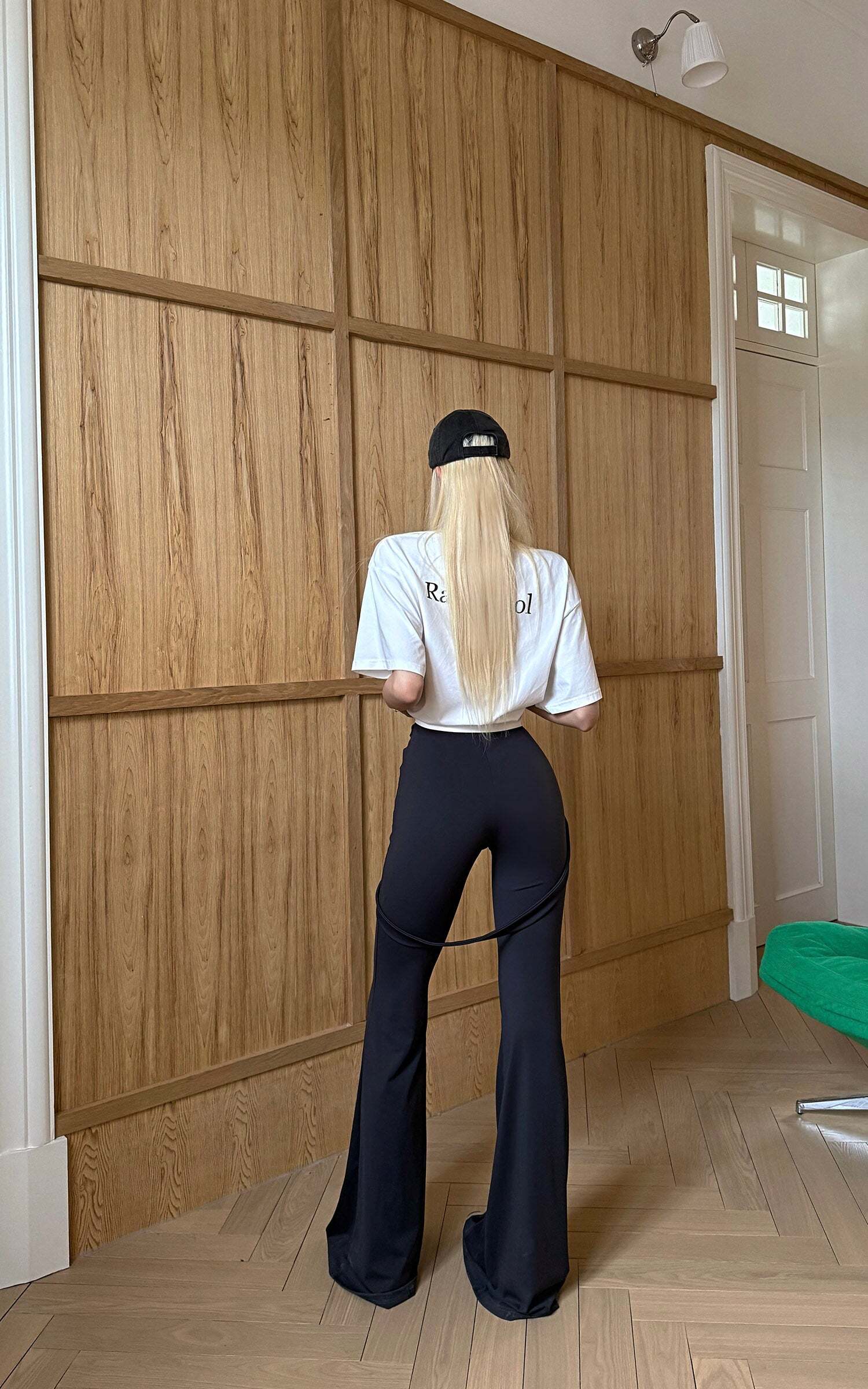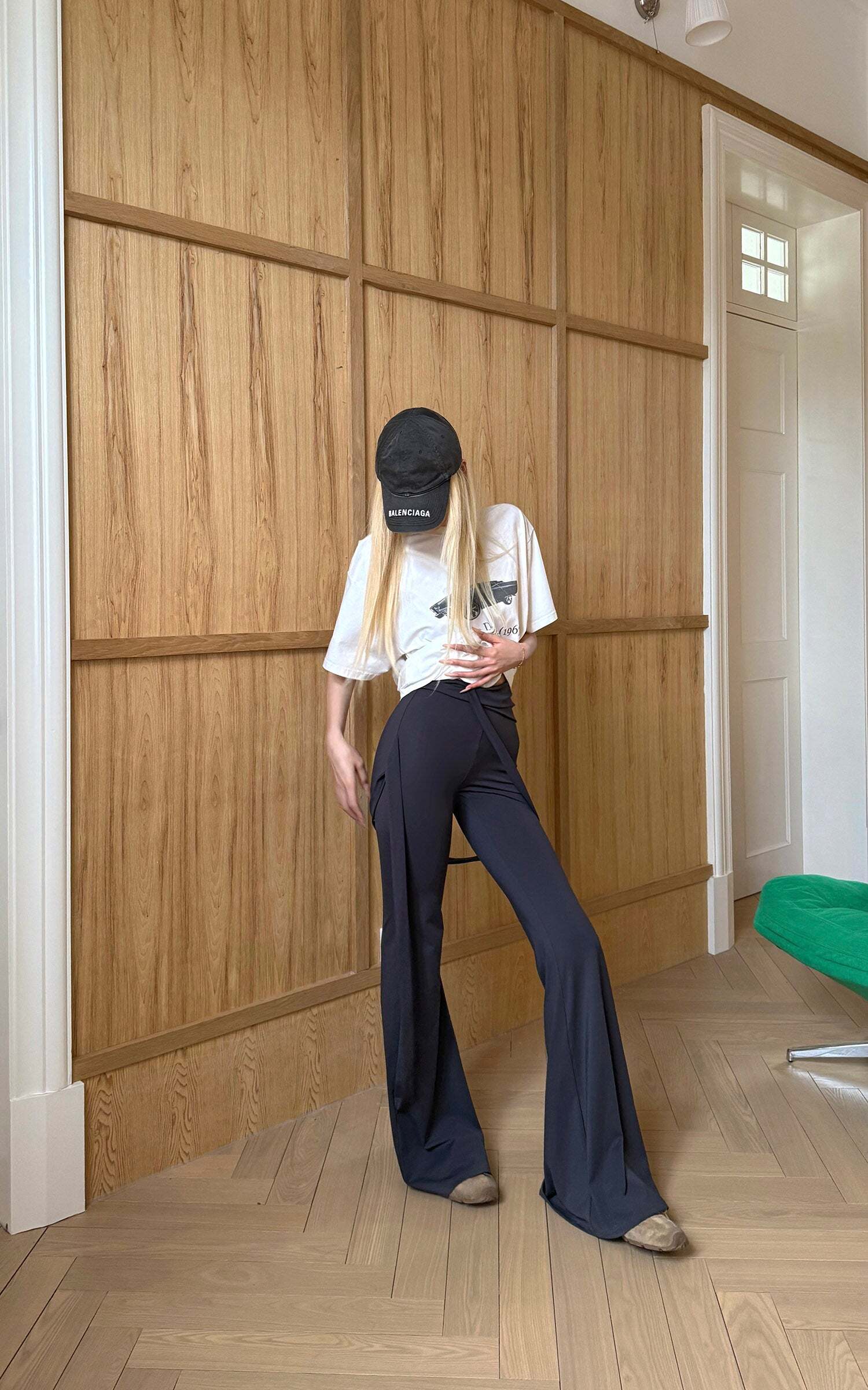 High-waisted Stretch Flared Pants with Asymmetric Wrap Tie Detail – Outfit Inspo