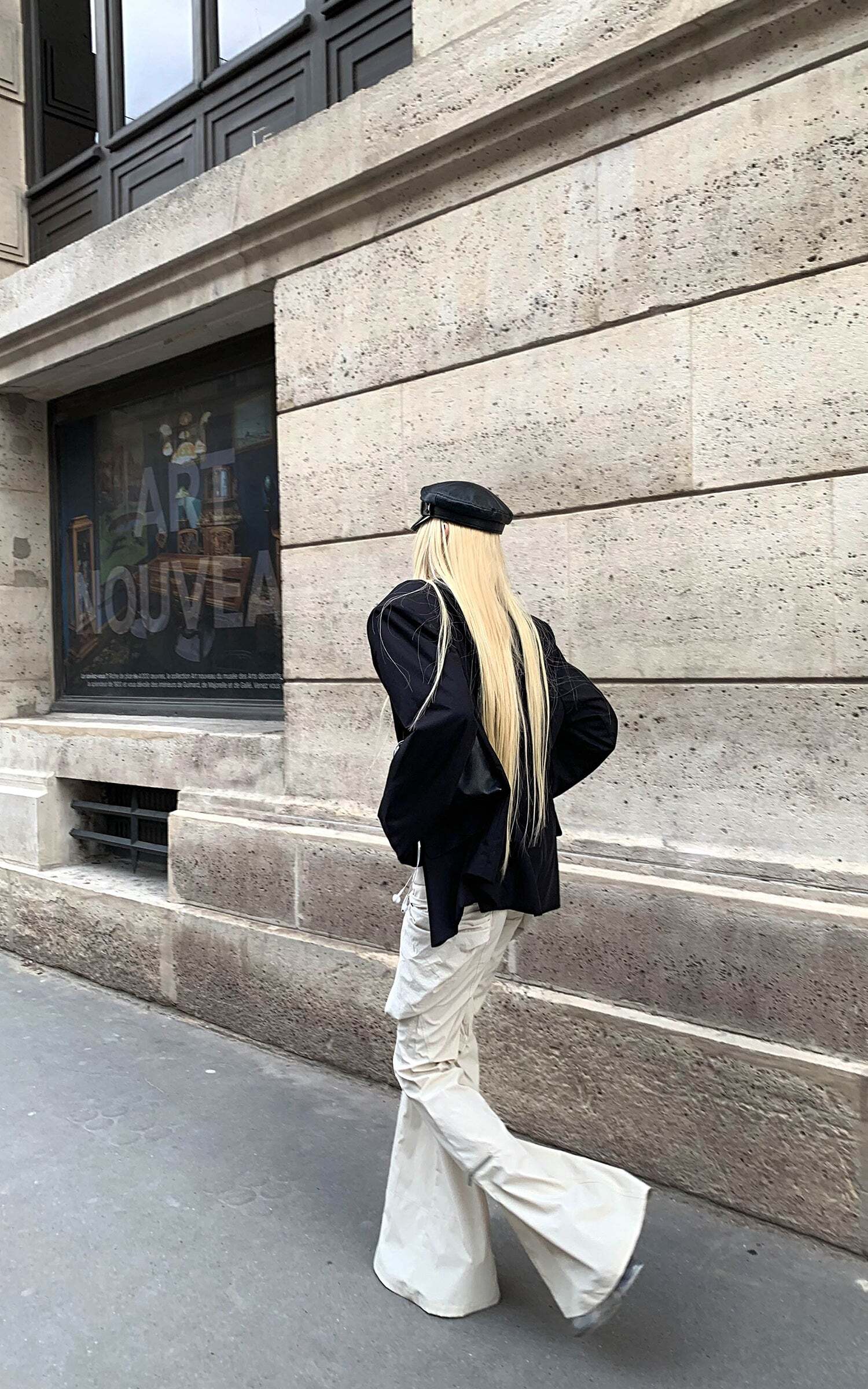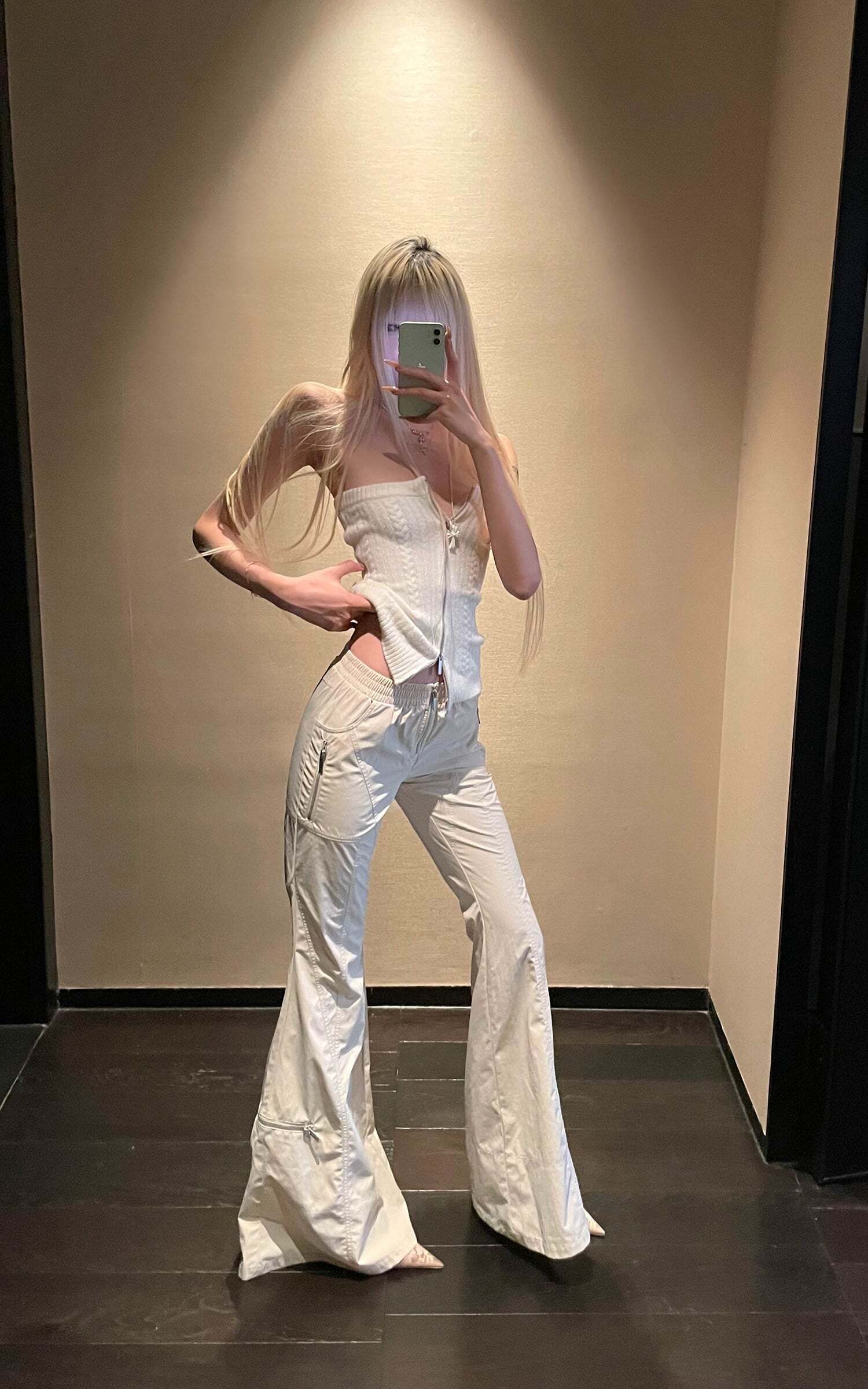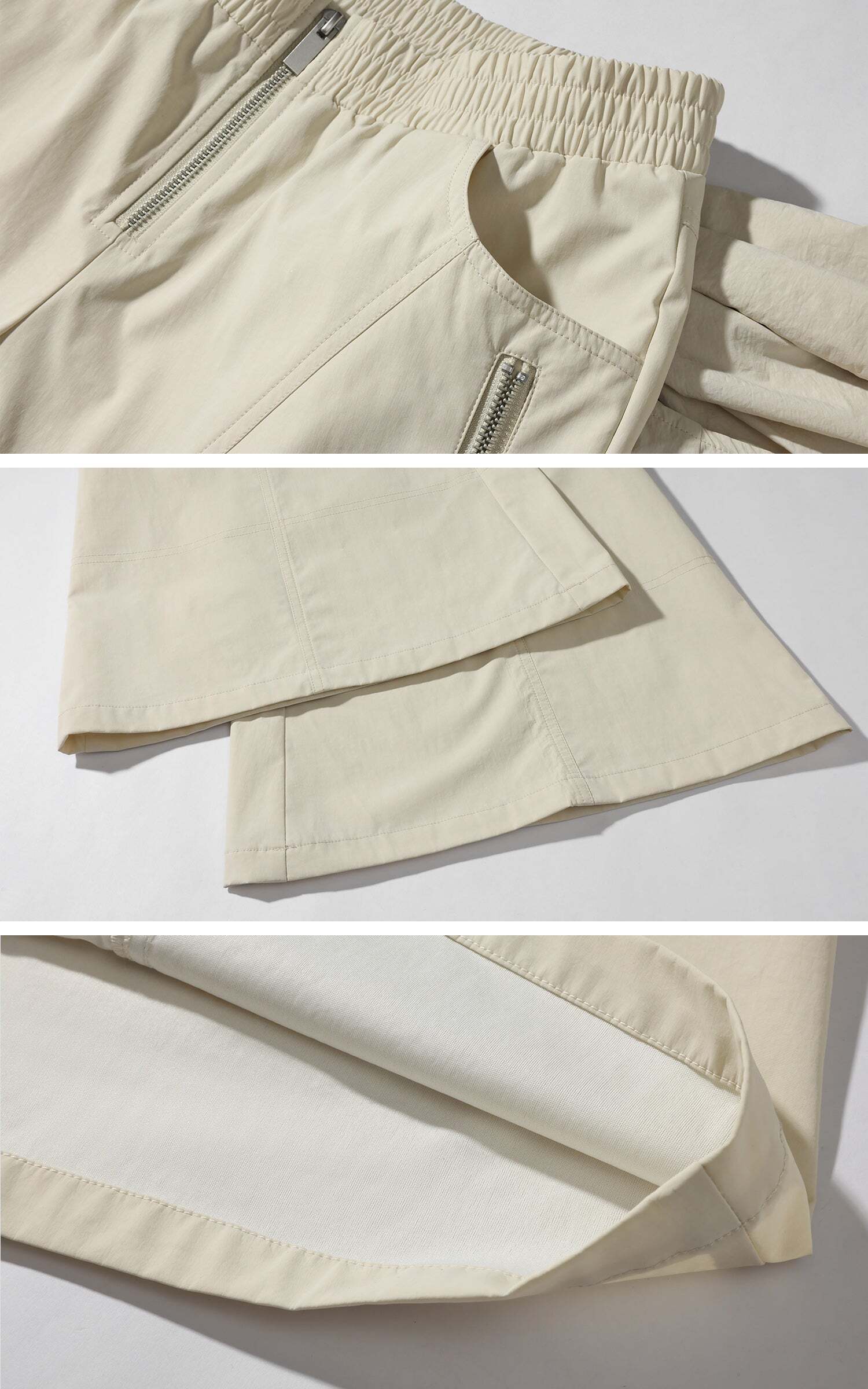 These casual pants embody a deconstructed spirit, layering tension and fluidity in their form. A knotted detail at the waist recalls the gesture of a jacket tied loosely, disrupting the silhouette with asymmetrical drama. The relaxed fit extends into a flared hem, accentuated by zipper details and gathered textures that heighten dimensionality and movement. Crafted from lightweight yet durable fabric, they shift seamlessly from everyday wear to a striking presence under nightfall.