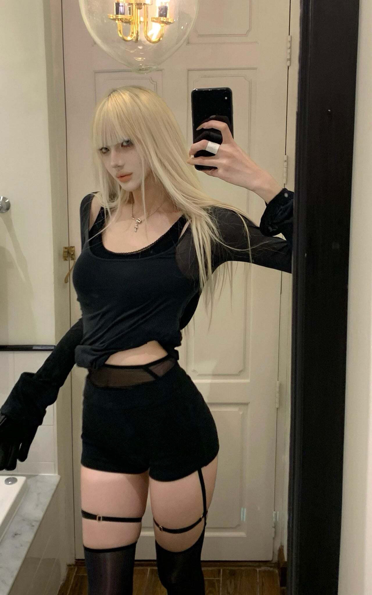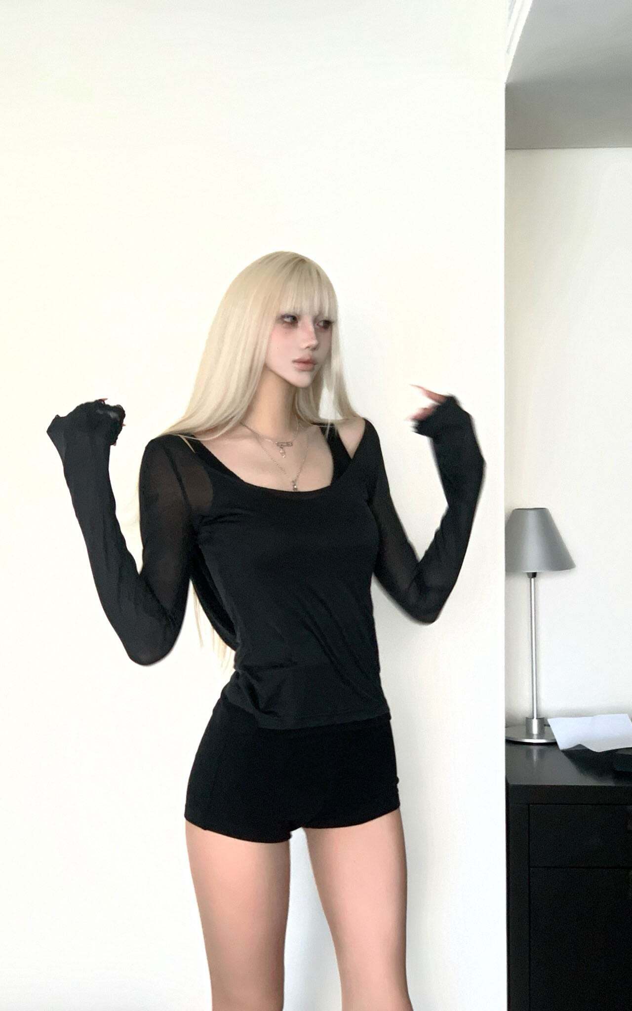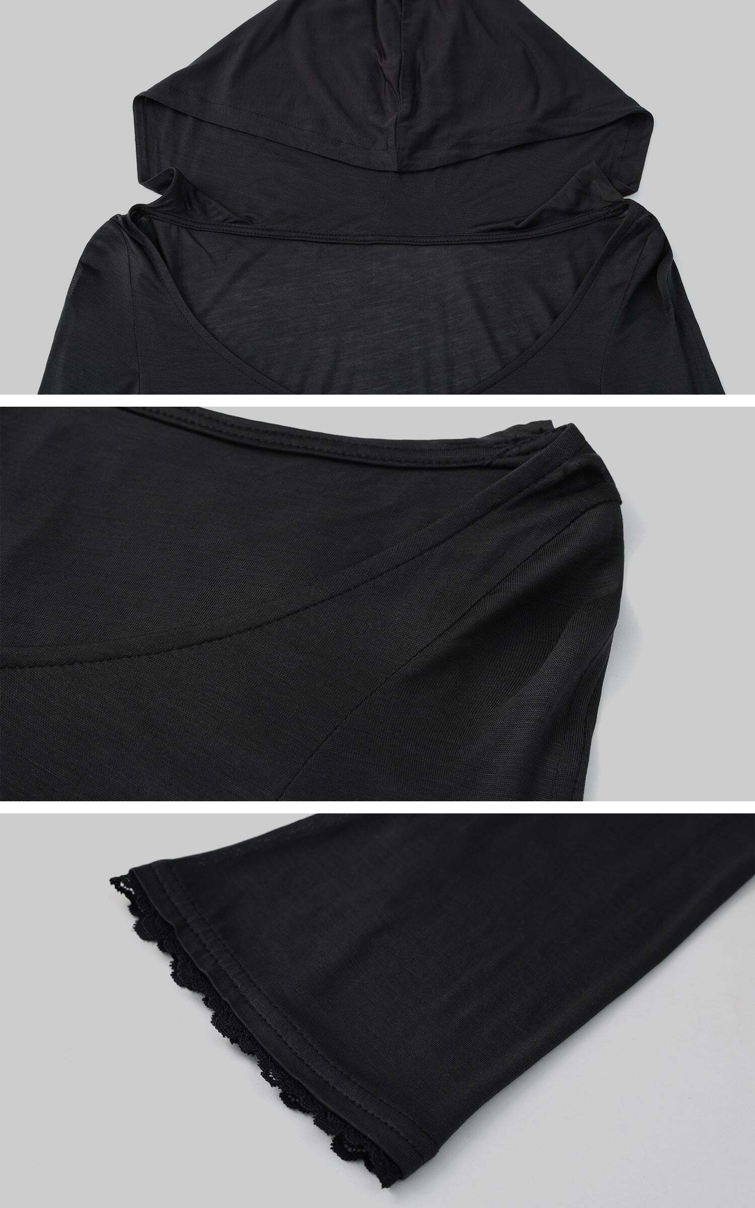 This intimate yet bold set blends streetwear comfort with delicate femininity. The cropped hoodie with lace-trimmed sleeves adds an elegant touch, while the figure-hugging tank beneath offers a hint of sensuality. The high-waisted shorts with soft, elasticized waistbands complete the look, delivering both style and ease. Perfect for lounging at home or layering for an edgy day-out look. The fine mesh and lace details bring a contrasting texture, creating a look that’s both soft and daring.