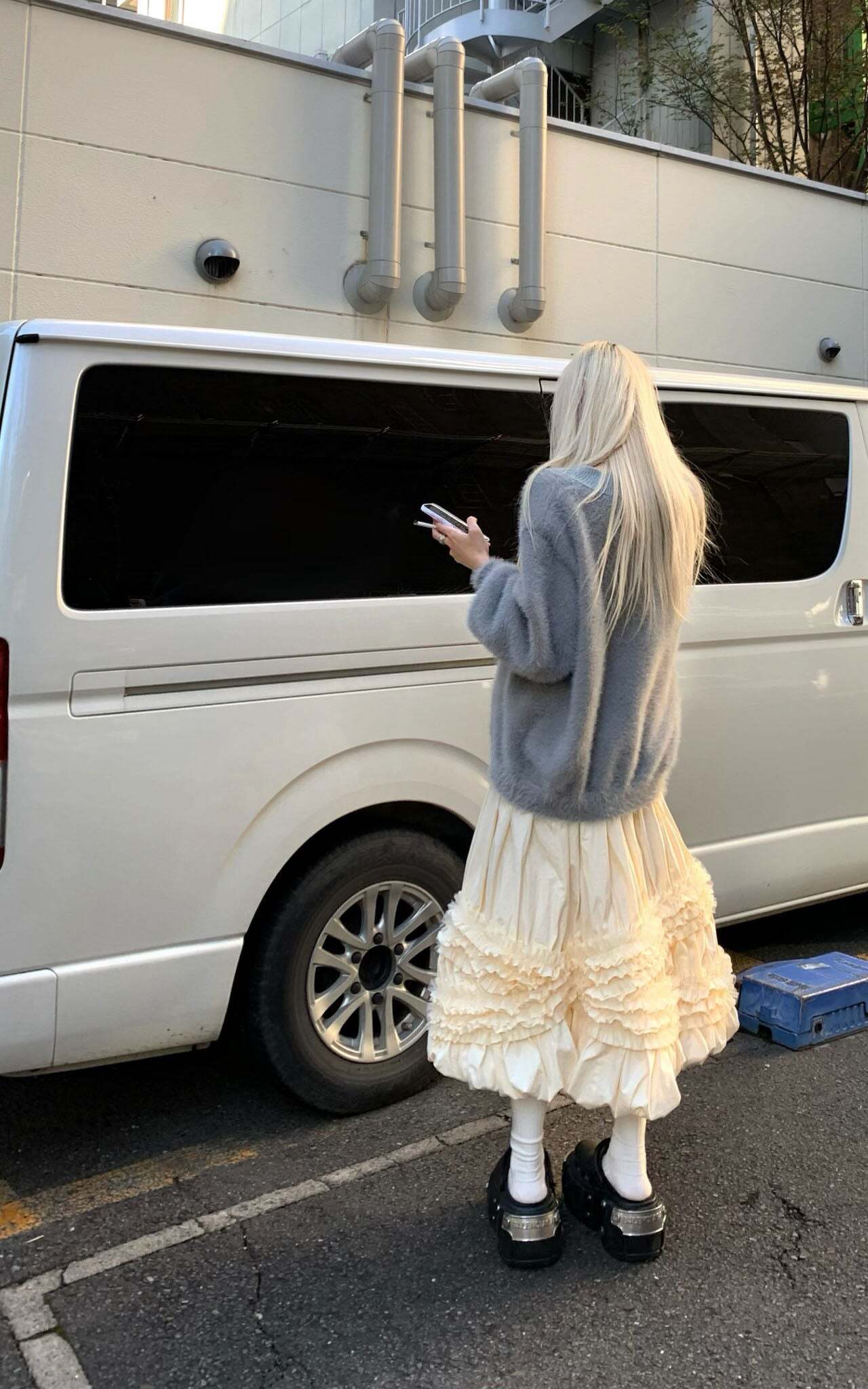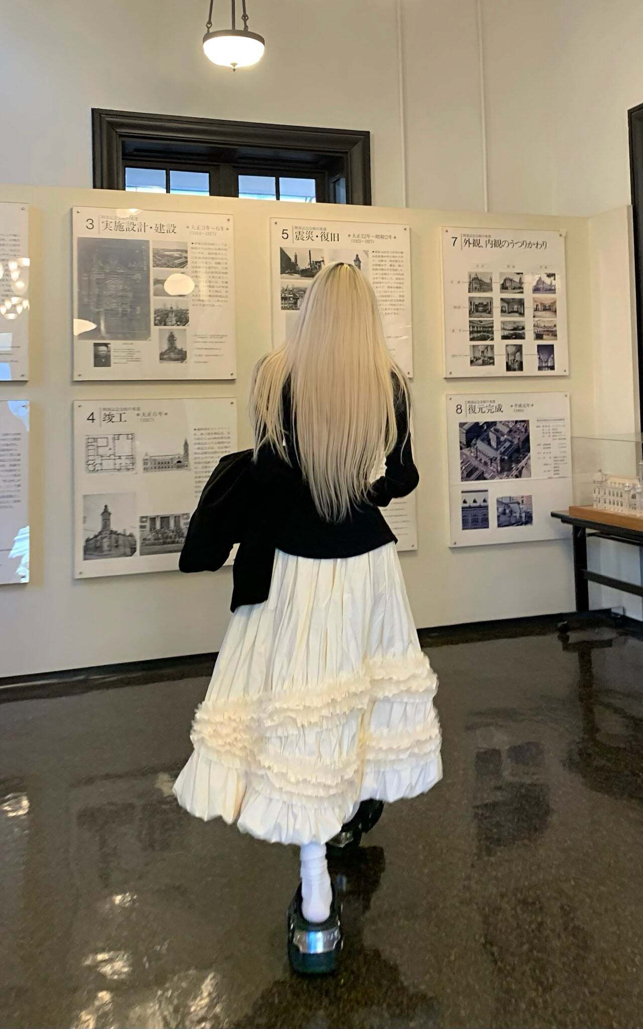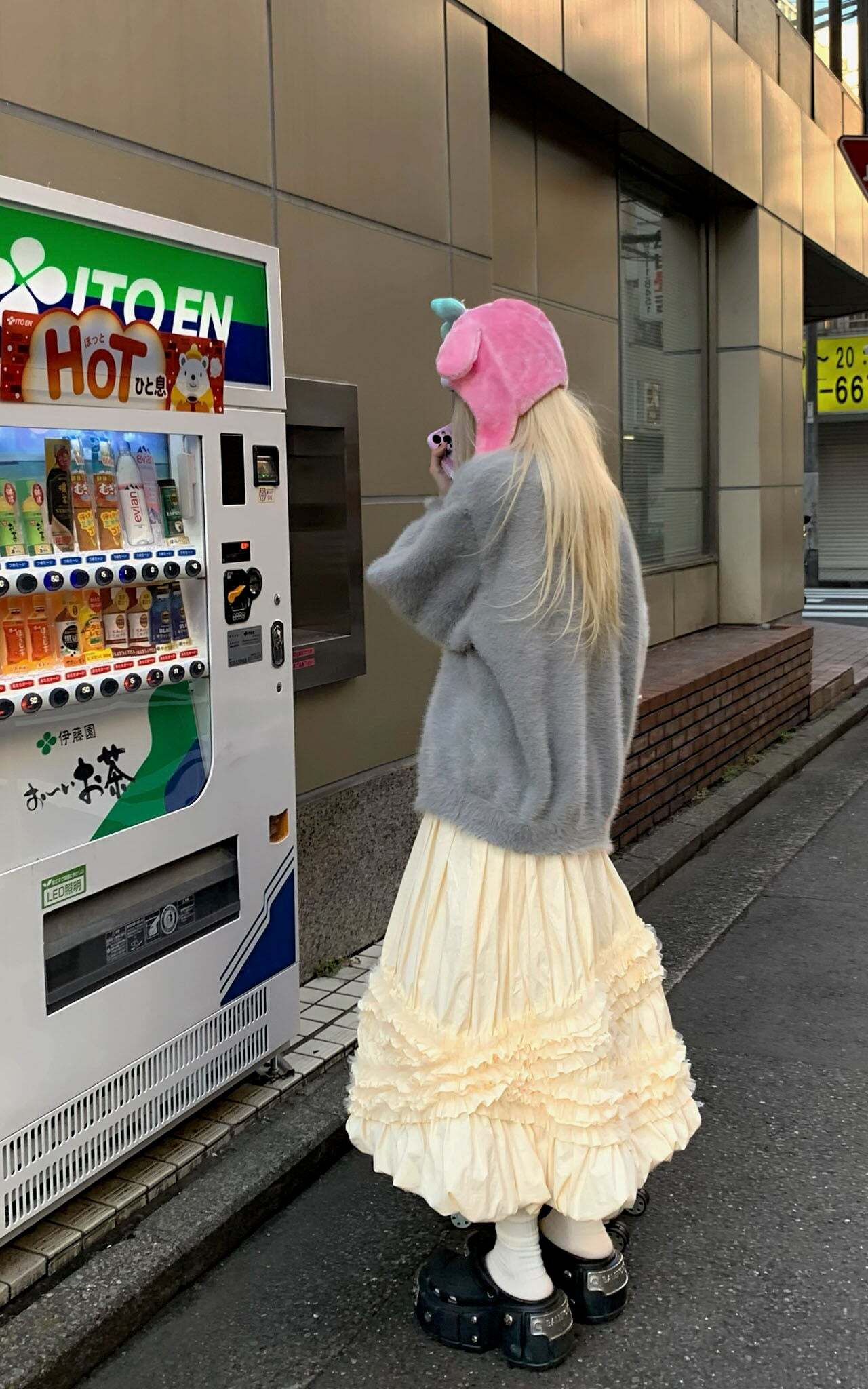 A statement piece that redefines femininity with an edge. Featuring intricate tiered lace details and a voluminous silhouette, this puff midi skirt combines playful structure with delicate craftsmanship. Elasticated at the waist for a customizable fit, it’s designed to flow effortlessly with your movements. Pair it with chunky boots for a juxtaposed aesthetic or with sleek heels for a dreamy, elevated look.
