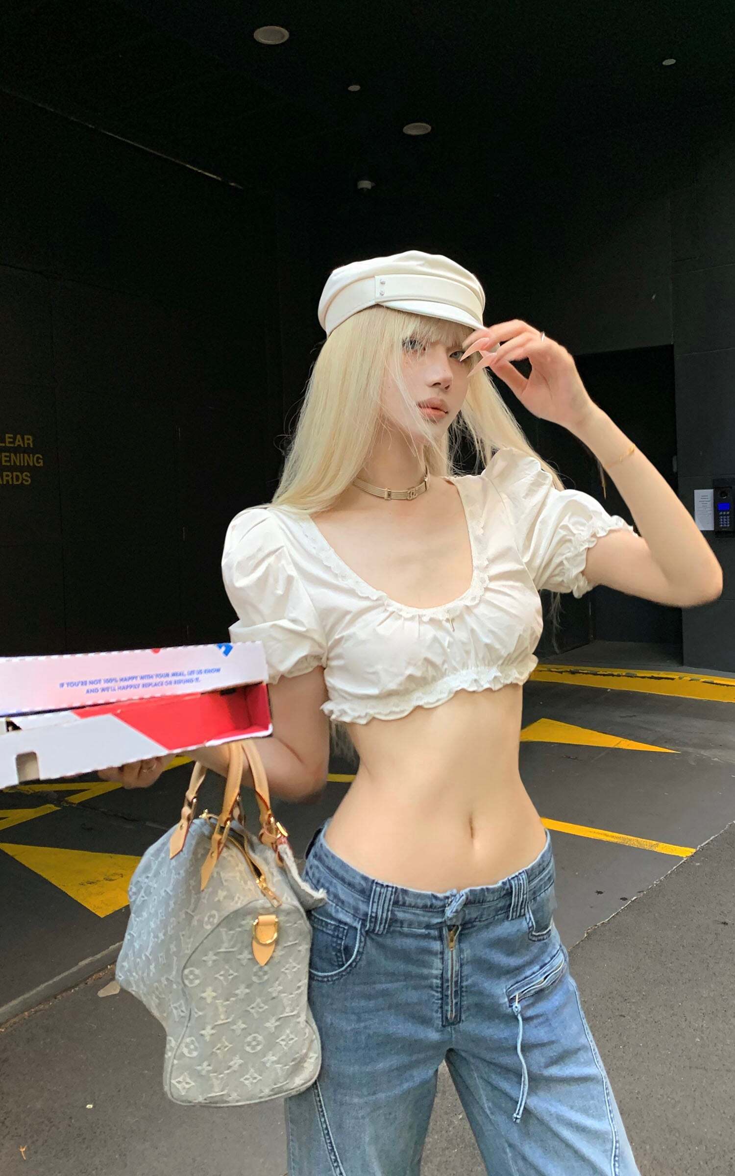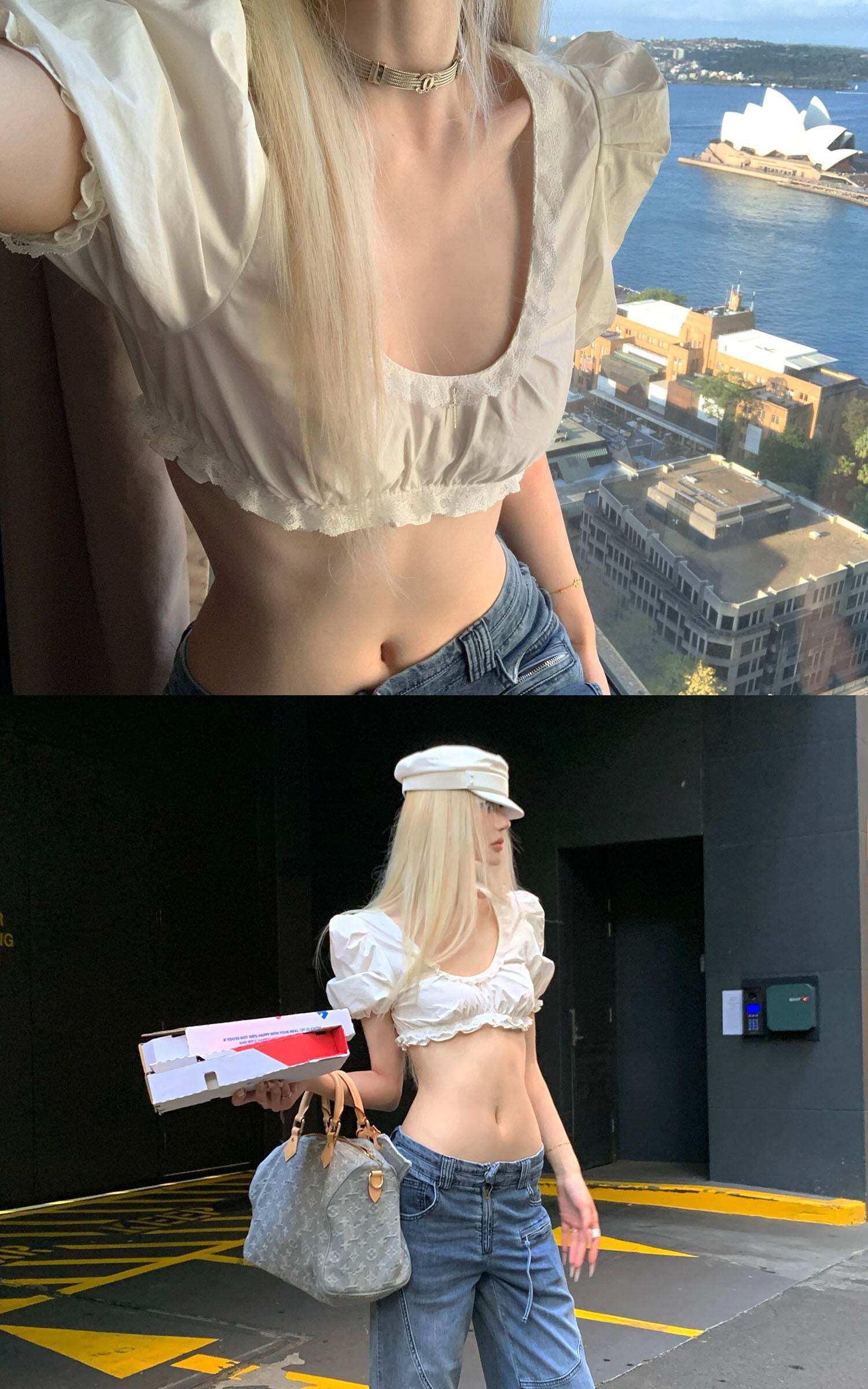 Lace-Trimmed Puff Sleeve Crop Top High-quality product featuring vacation outfits, outfit inspo, dream clothes and more. Modern design that fits the latest trends. Premium materials ensure durability and comfort. Order now for special offers! Product designed with attention to every detail. Suitable for all occasions and personal styles.