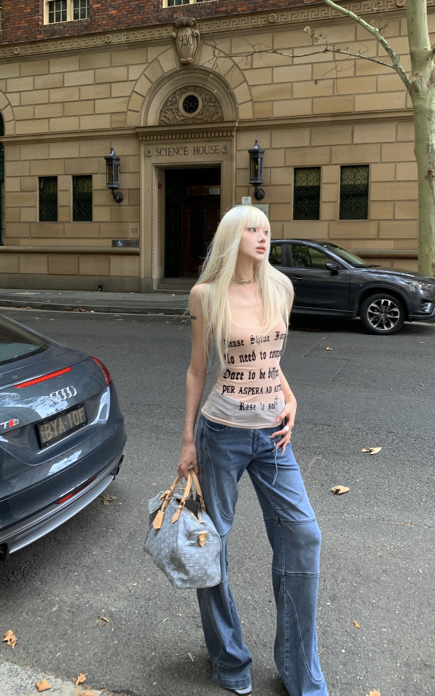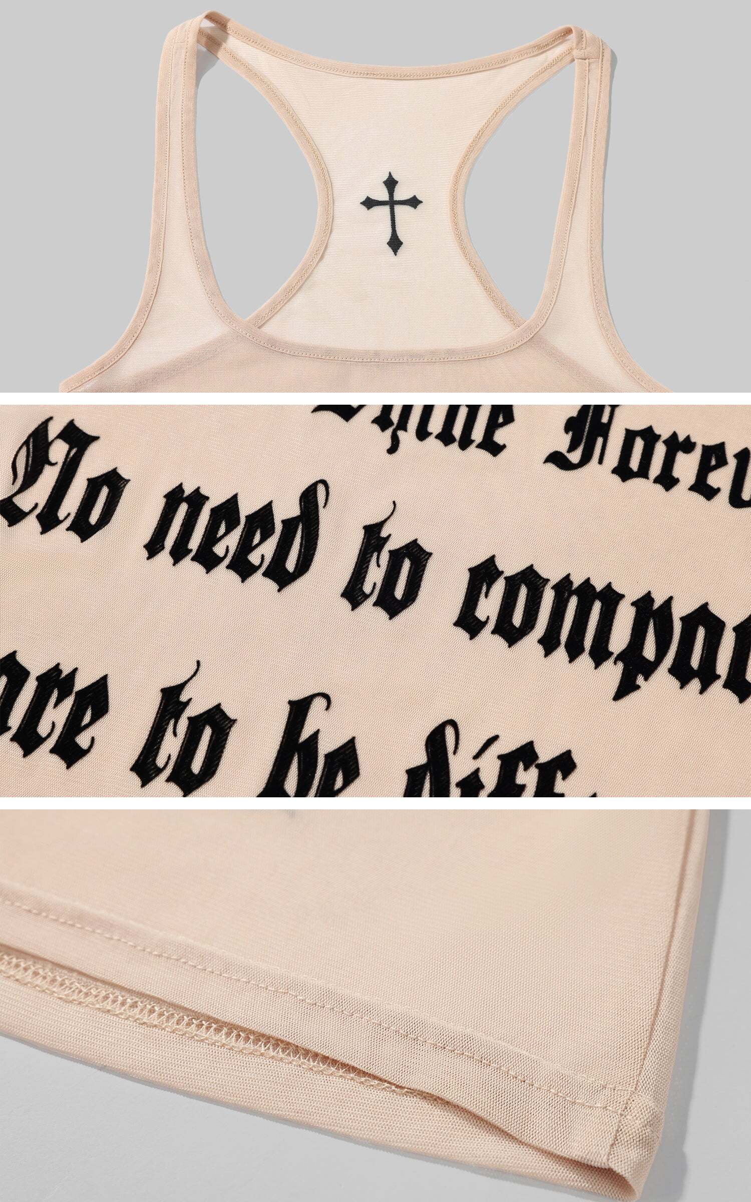 Lettering Mesh Tank Top & Bandeau Innerwear Set High-quality product featuring vacation outfits, summer fits, outfit ideas and more. Modern design that fits the latest trends. Premium materials ensure durability and comfort. Order now for special offers! Product designed with attention to every detail. Suitable for all occasions and personal styles.