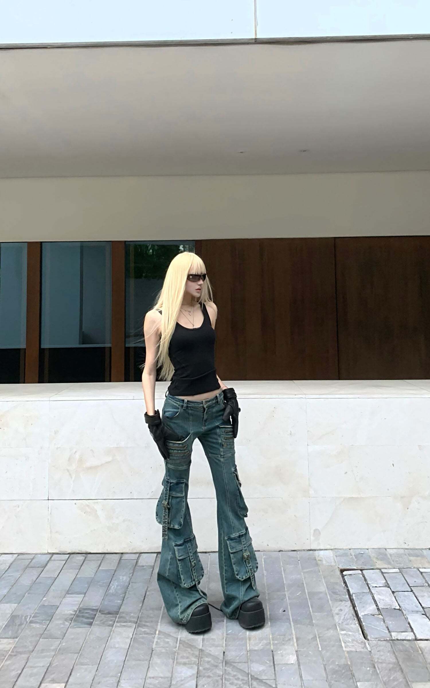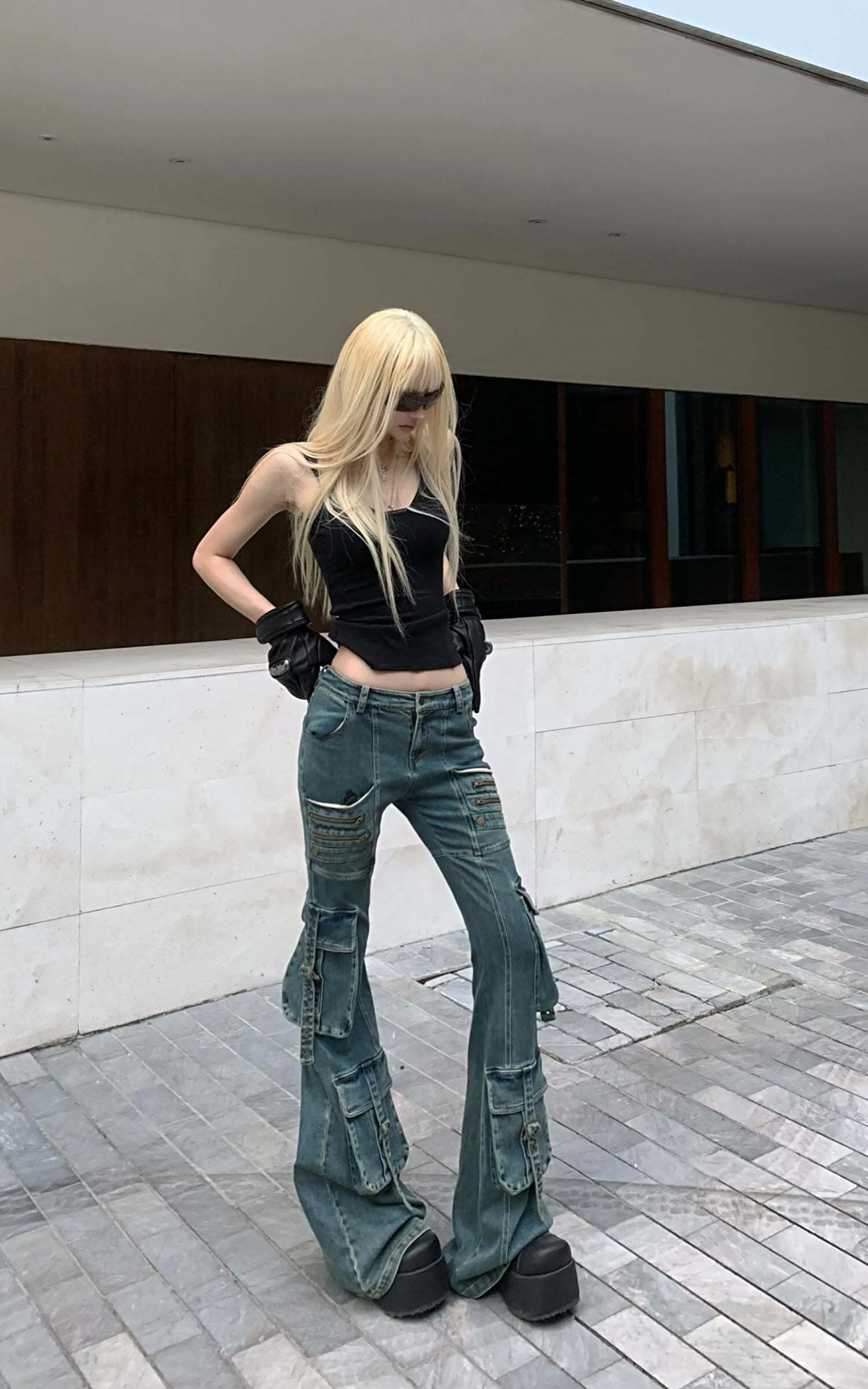 Multi-Pocket Distressed Flared Jeans High-quality product featuring black jeans outfit fall, vacation outfits, summer fits and more. Modern design that fits the latest trends. Premium materials ensure durability and comfort. Order now for special offers! Product designed with attention to every detail. Suitable for all occasions and personal styles.