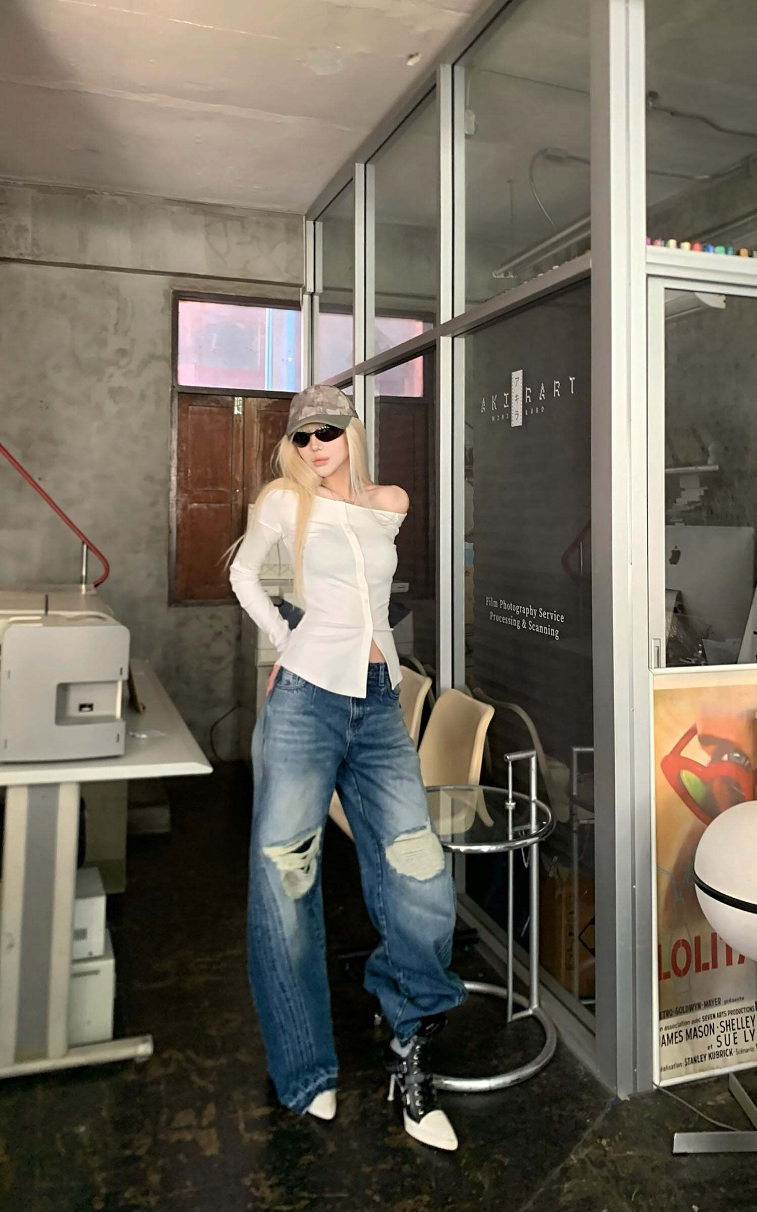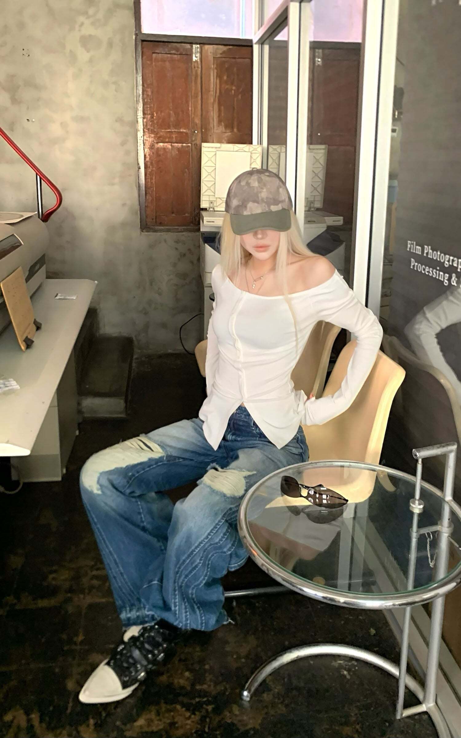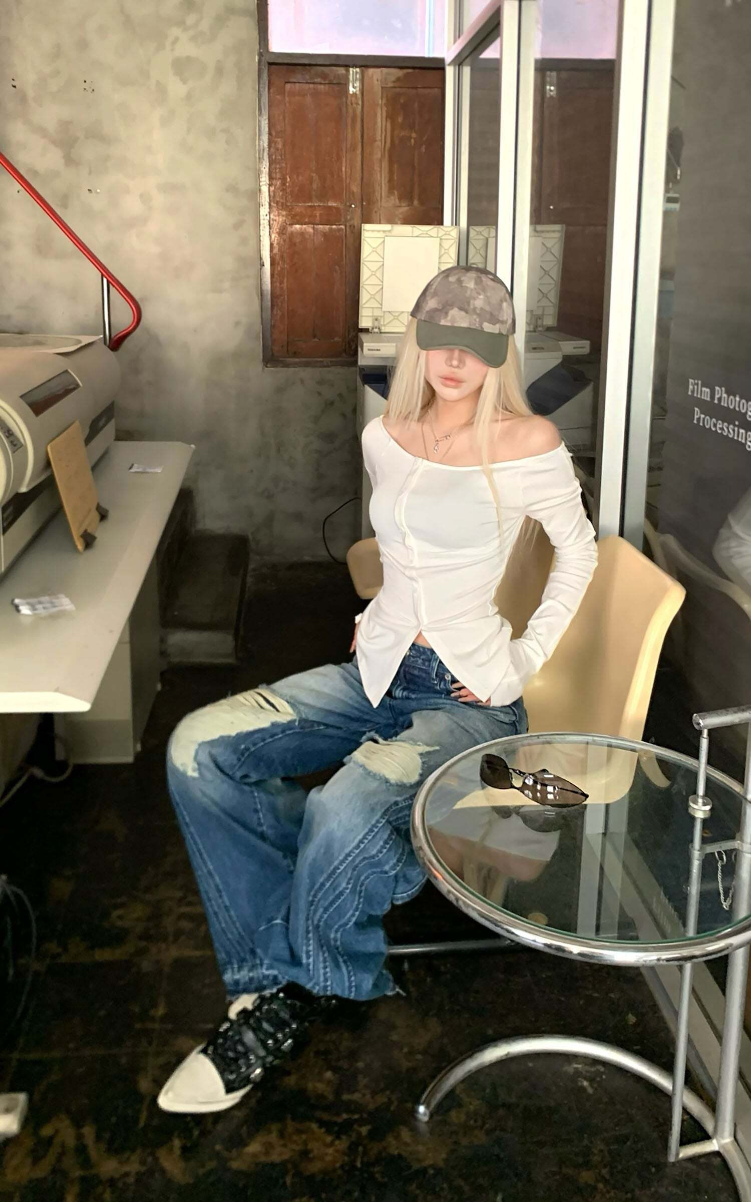 Off-Shoulder Buttoned Tee High-quality product featuring outfit inspo, summer fits, 90s fashion and more. Modern design that fits the latest trends. Premium materials ensure durability and comfort. Order now for special offers! Product designed with attention to every detail. Suitable for all occasions and personal styles.